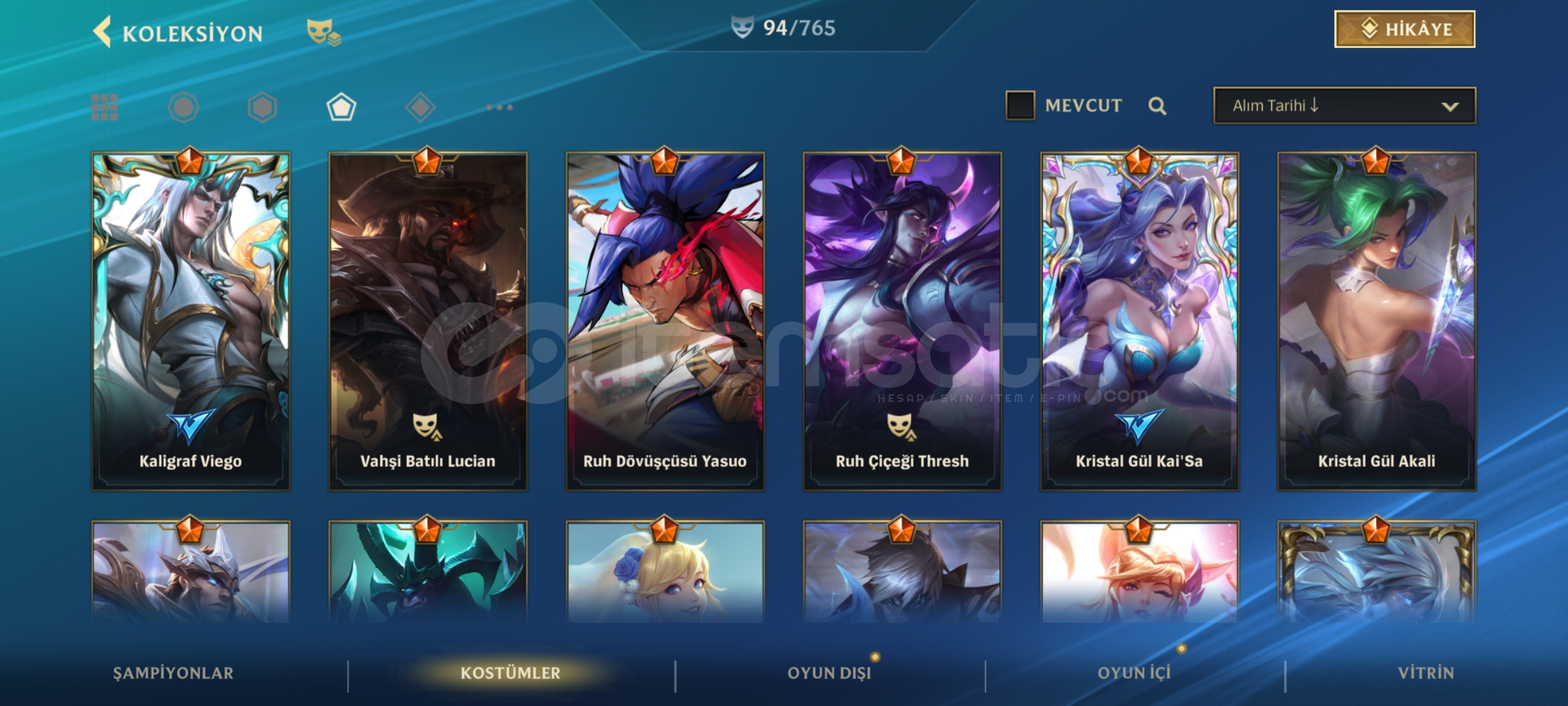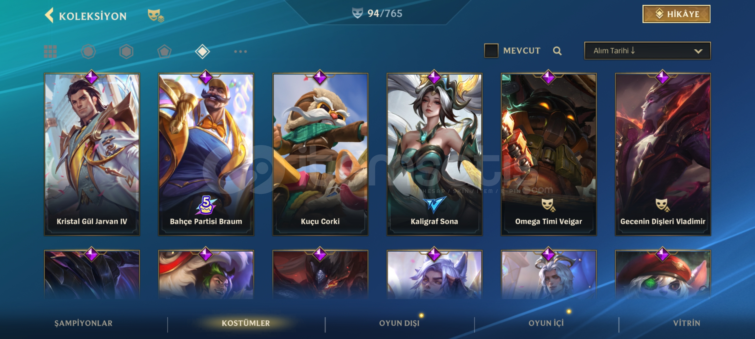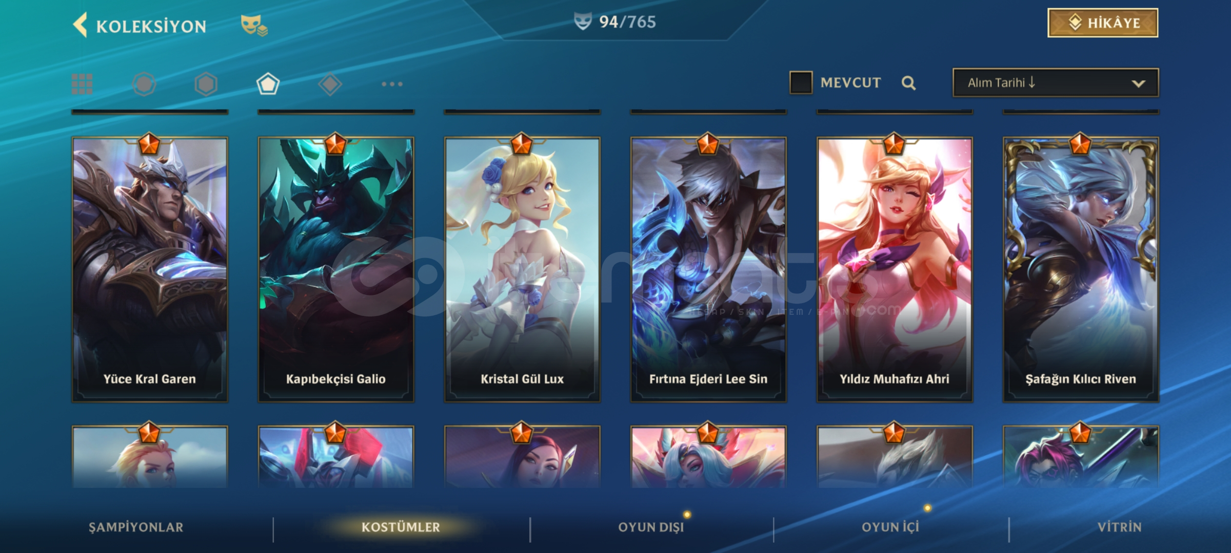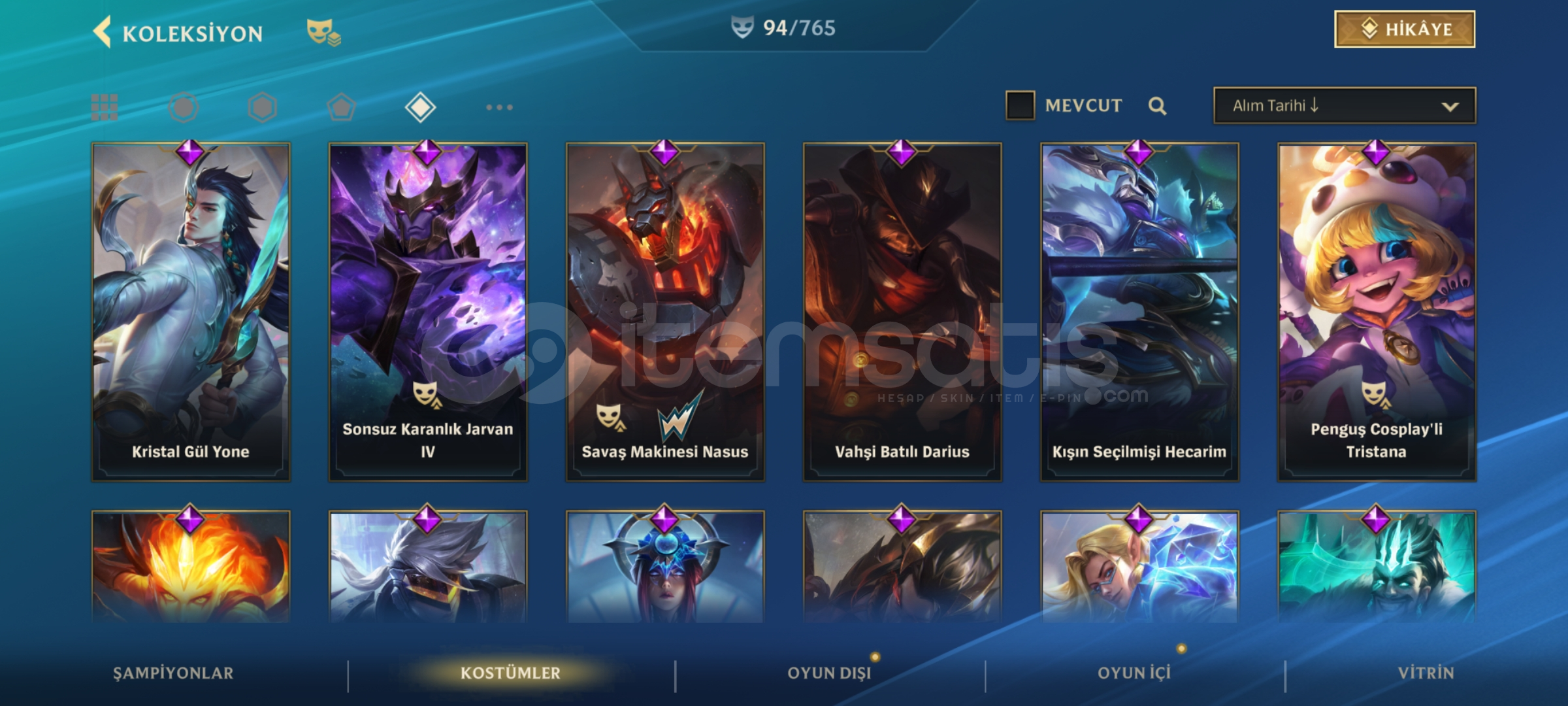hesapta olan öğeler x77 karakterx71 damga görmüş(şampiyonluk)x94 tane kostüm x20K mavi özxKristal gül seti neredeyse tamamlanmıştırxGüzel mini profiller Son olarak ise hesap aldığınızda pişman etmez maili degişir çok para yatırdım azcık pazarlık payı vardır alana şimdiden hayırlı olsun(: