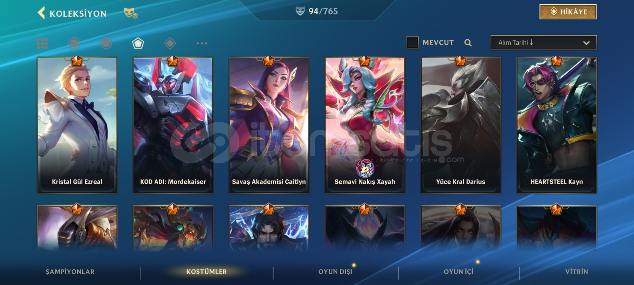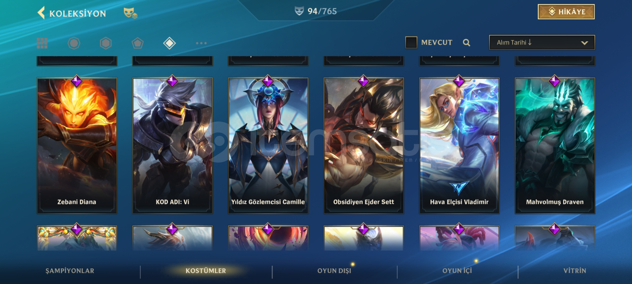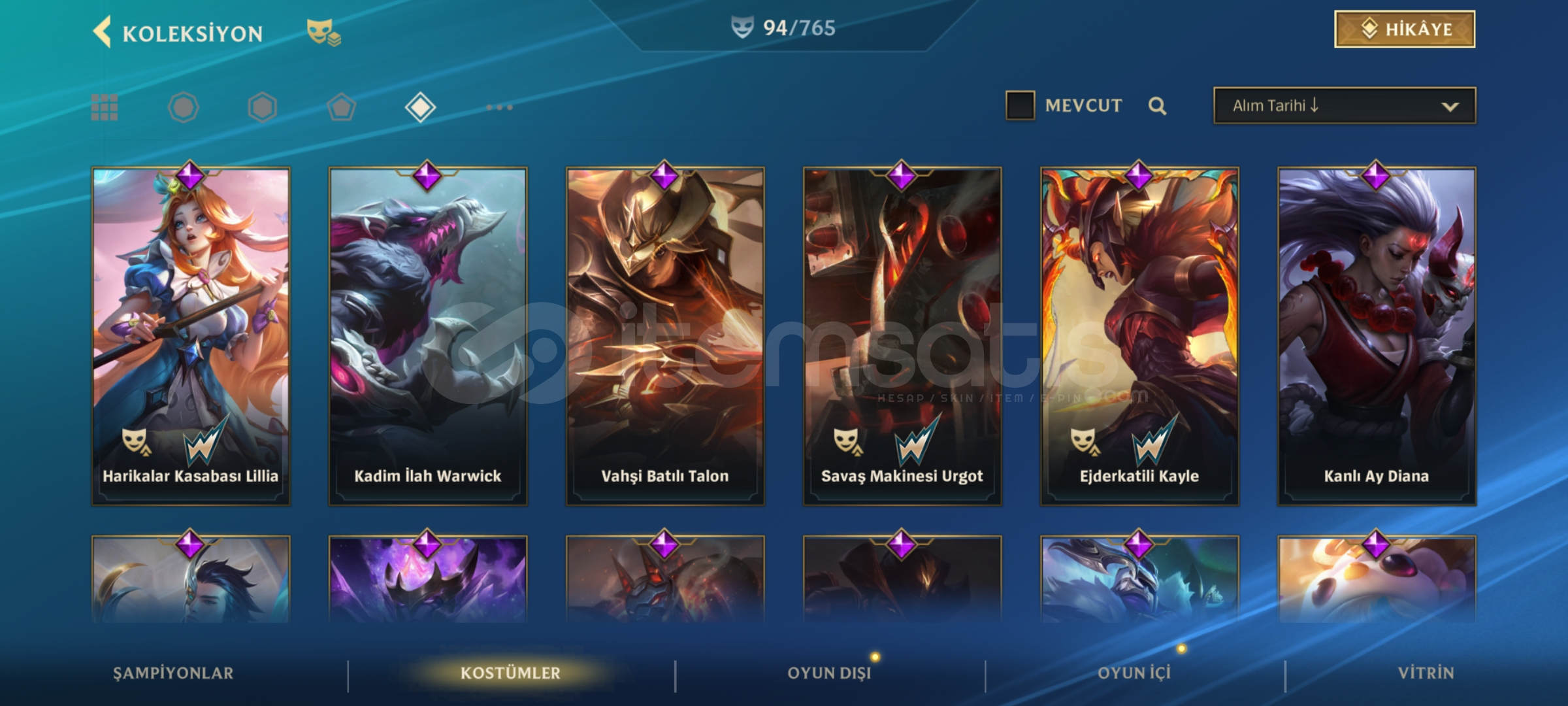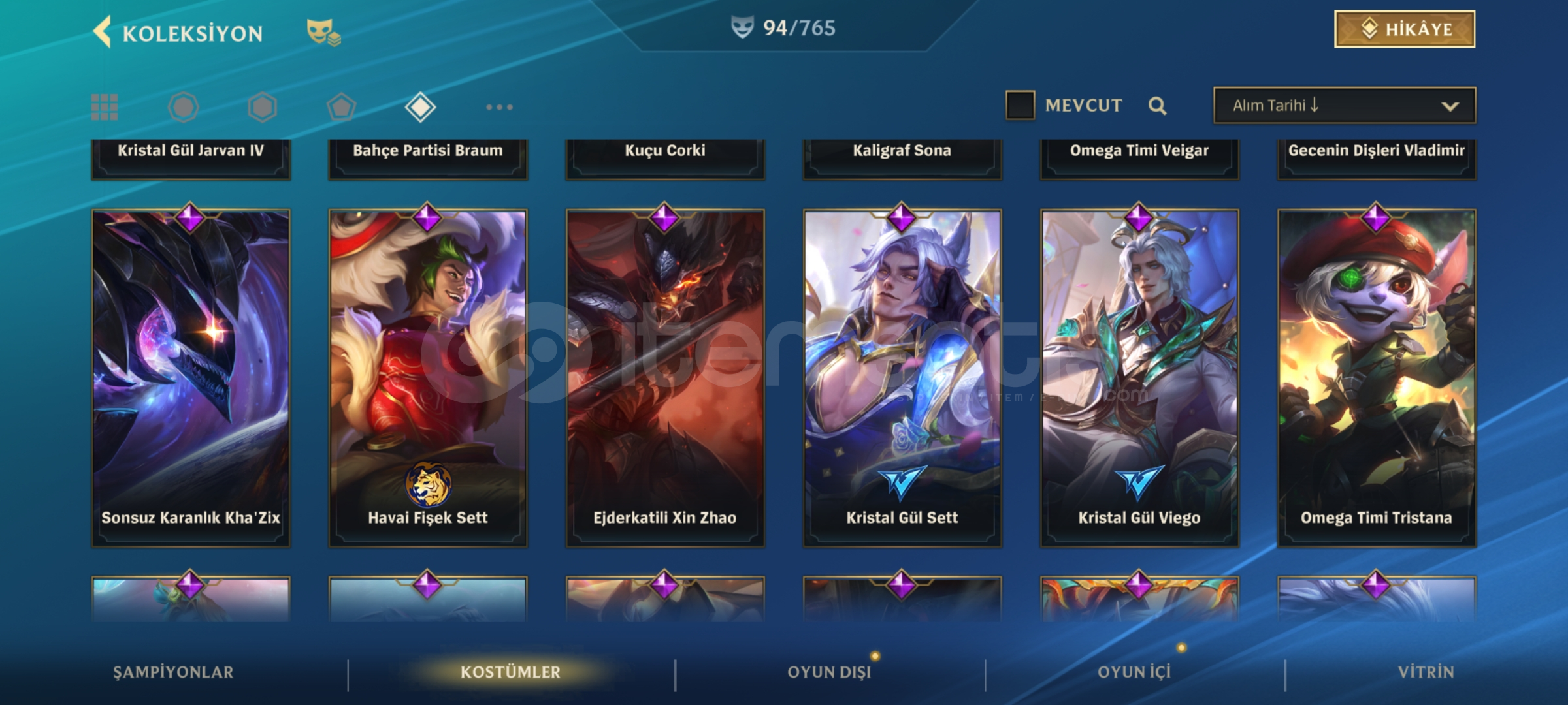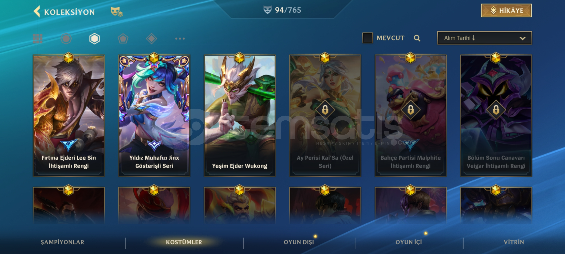 hesapta olan öğeler x77 karakterx71 damga görmüş(şampiyonluk)x94 tane kostüm x20K mavi özxKristal gül seti neredeyse tamamlanmıştırxGüzel mini profiller Son olarak ise hesap aldığınızda pişman etmez maili degişir çok para yatırdım azcık pazarlık payı vardır alana şimdiden hayırlı olsun(: