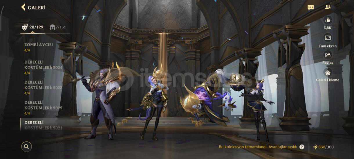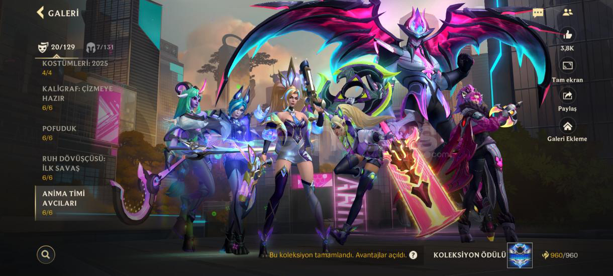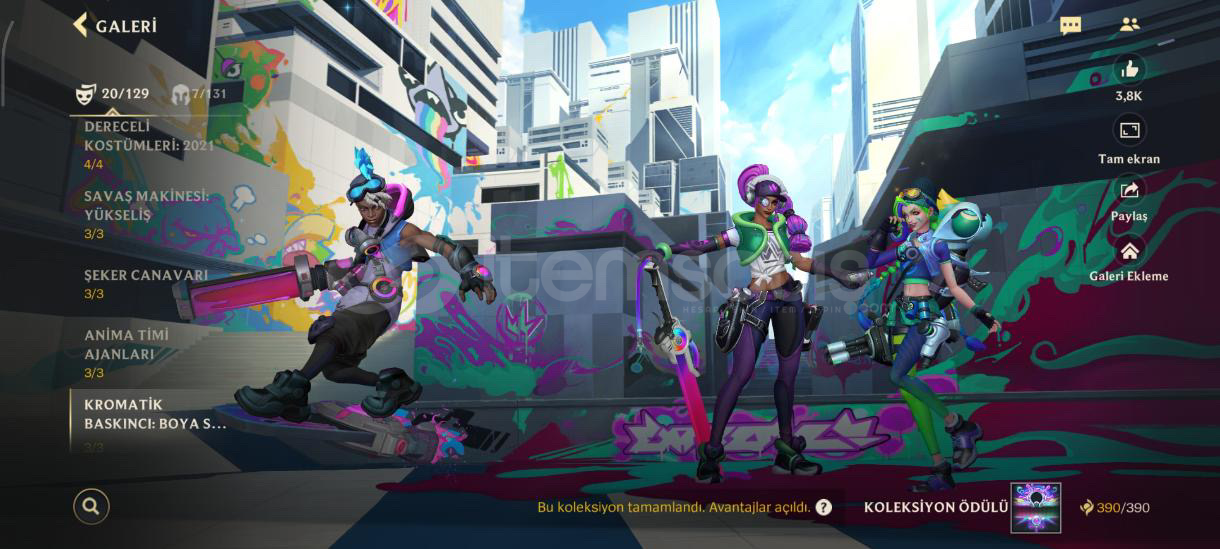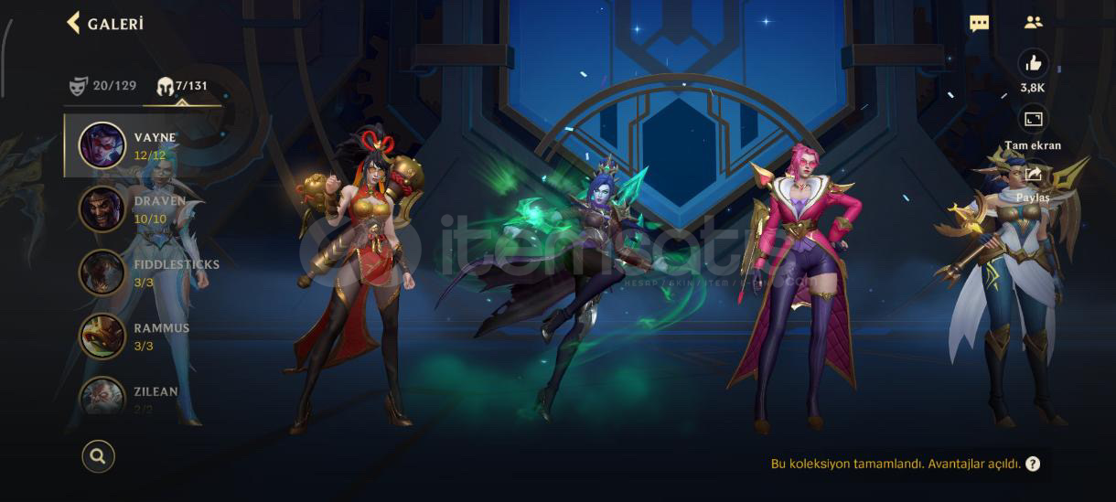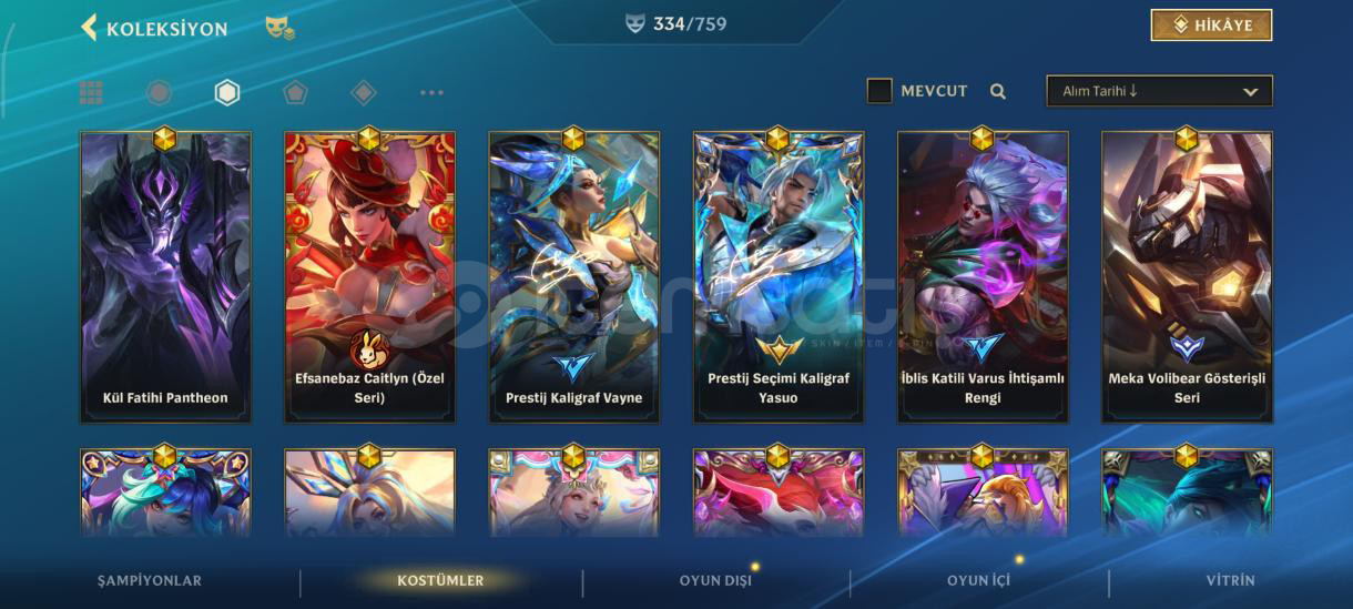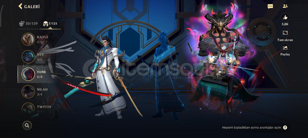 Özel seri kostüm Ve daha sayamadığım kadar çok kostğm var özel seriler var koyamadığım daha çok fotoğraf var sorunuz olursa yosuo 11/13 kostüm. sorabilirsiniz jinx. 11/14 kostümDraven10/10 kostümVayne 12/12 kostümTemo. 8/10 kostümYone. 6/8 kostüm