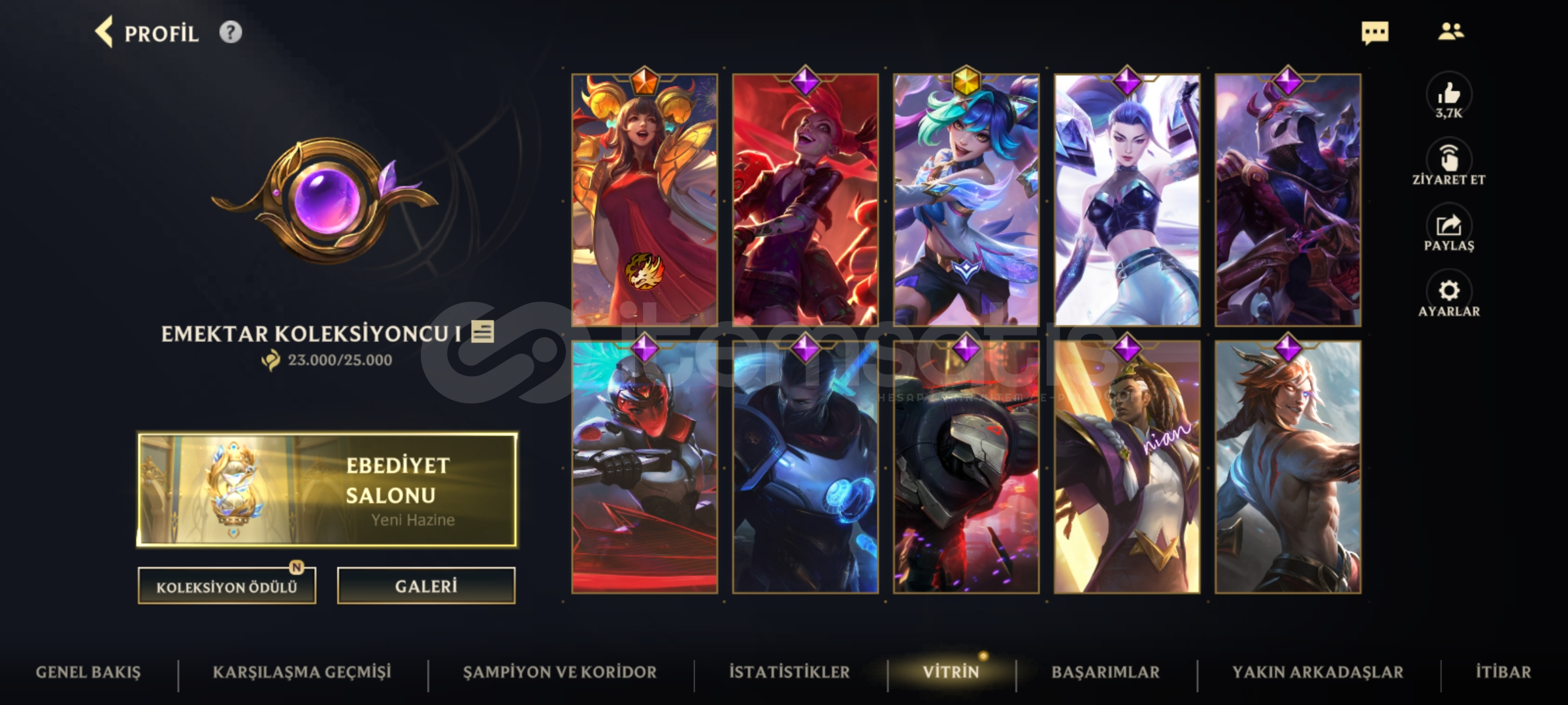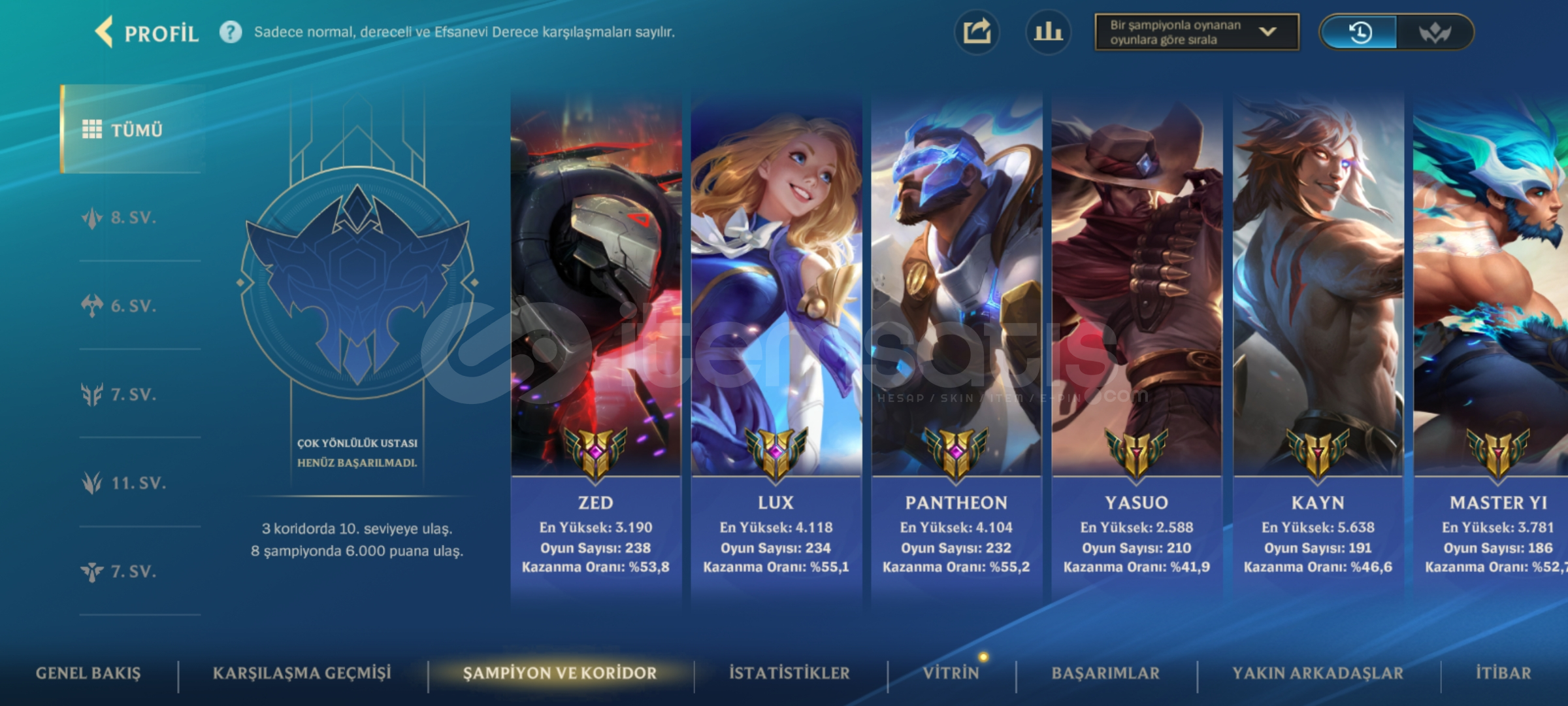 Öncelikle selamun aleyküm arkadaşlar hesabımız da 103 kostüm var bir tanesi de süreli hesap 2 3 sezon master a çıkaramıştır şuan da da master 3,1 kda 23 bin koleksiyonculuk puanı mevcut kaybn ile sıralamaya girmeye 1 buçuk bin civarında puan kaldı yani alan arkadaş sıralamaya girebilir