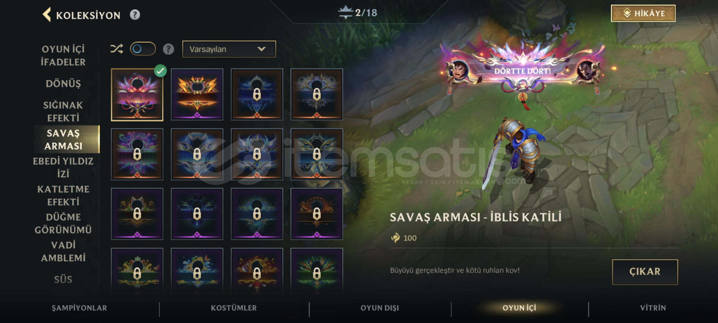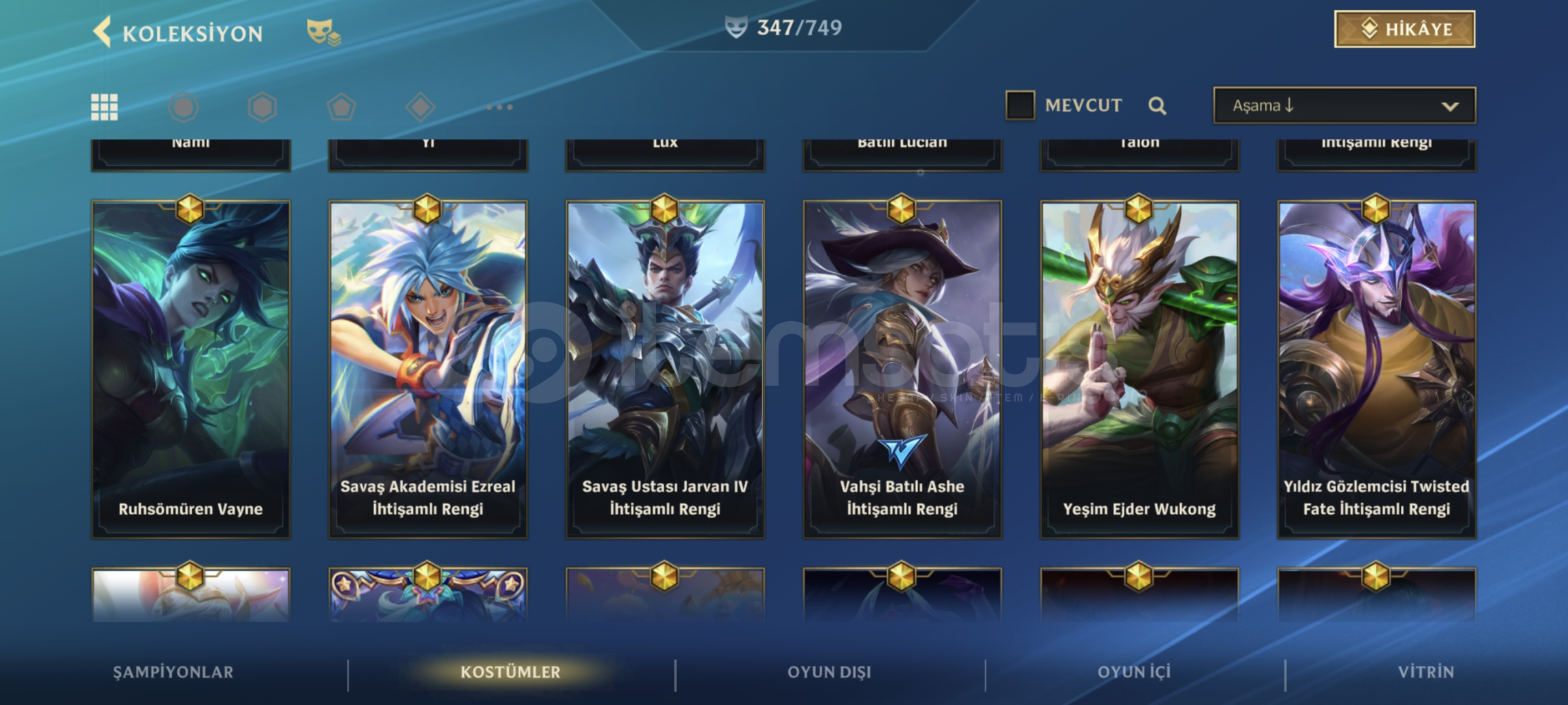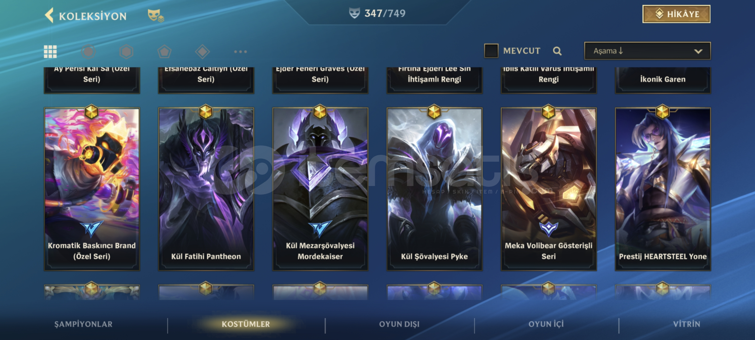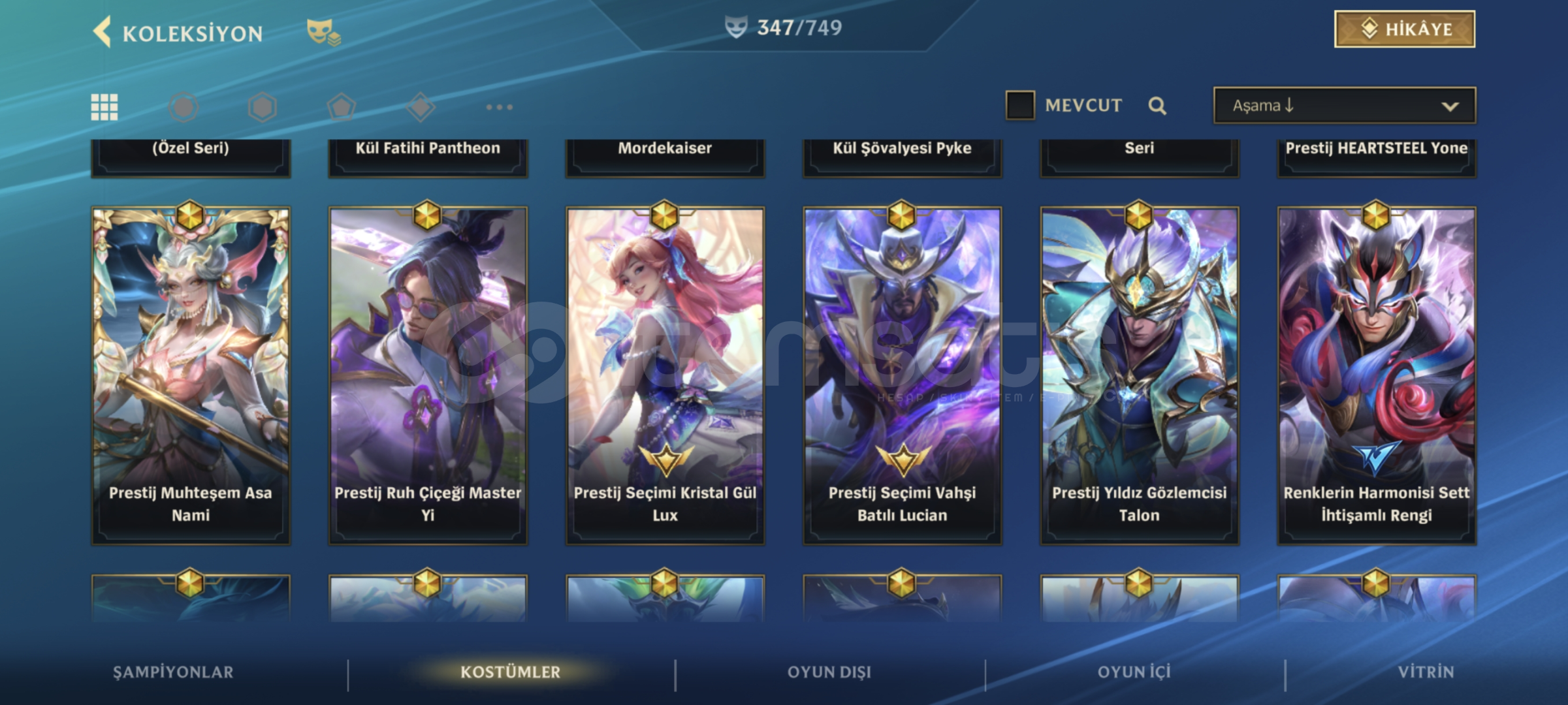 FOTOLARDA GÖRÜLDÜĞÜ GİBİ BOL KOSTÜMLÜ VE SÜRPRİZ ÖZELLİKLİ BİR HESAPTIR. YILLARDIR SADECE ARAM İÇİN KISA EĞLENCE İÇİN KULLANDIĞIM TEK HESABI SATIYORUM. HESAPTA DERECELİ OYNANMAMIŞTIR.