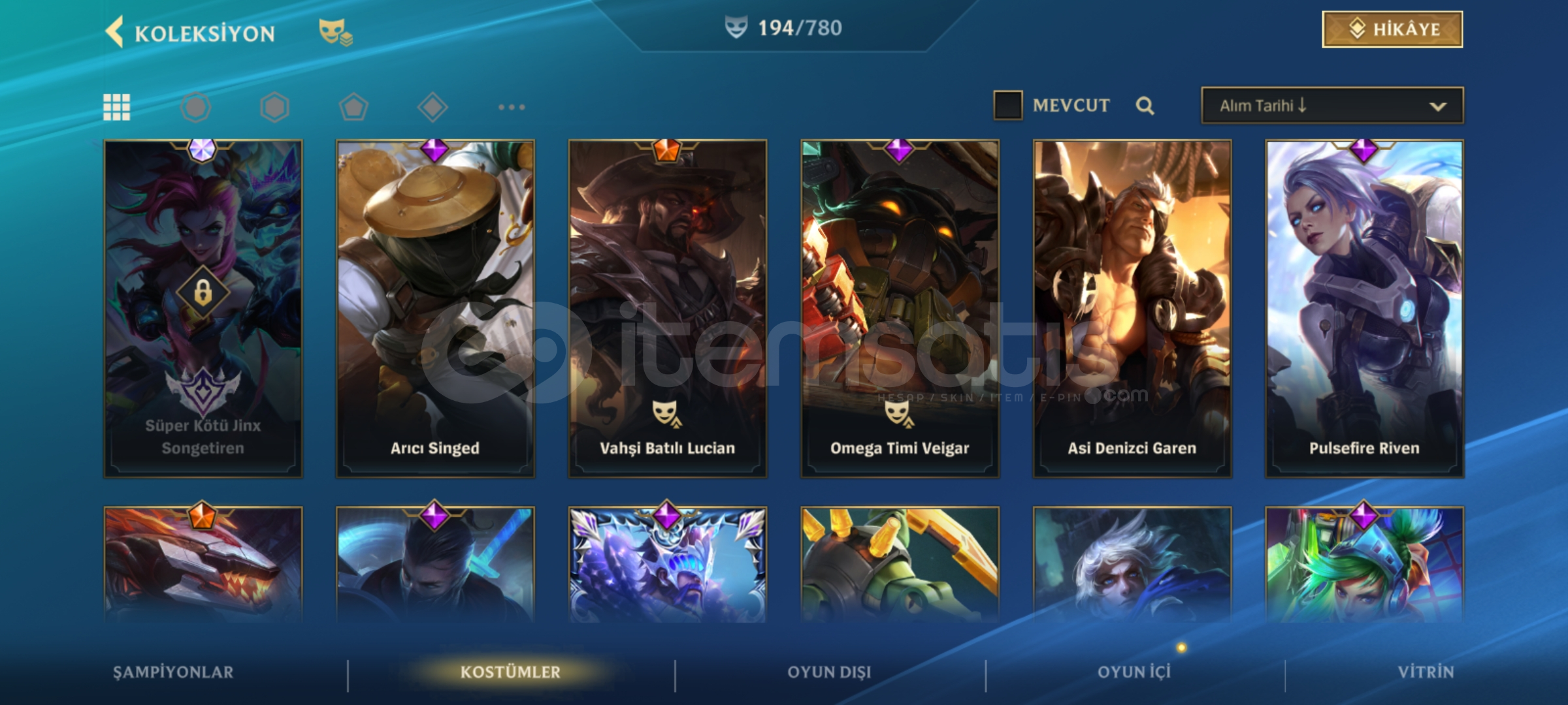 Sezon 1. Den beri aktif hesapBütün şampiyonlar açık194 kostümSezon 1 pass kartı hex kaşif jax mevcuttur.40 k koleksiyon puanlı hesap