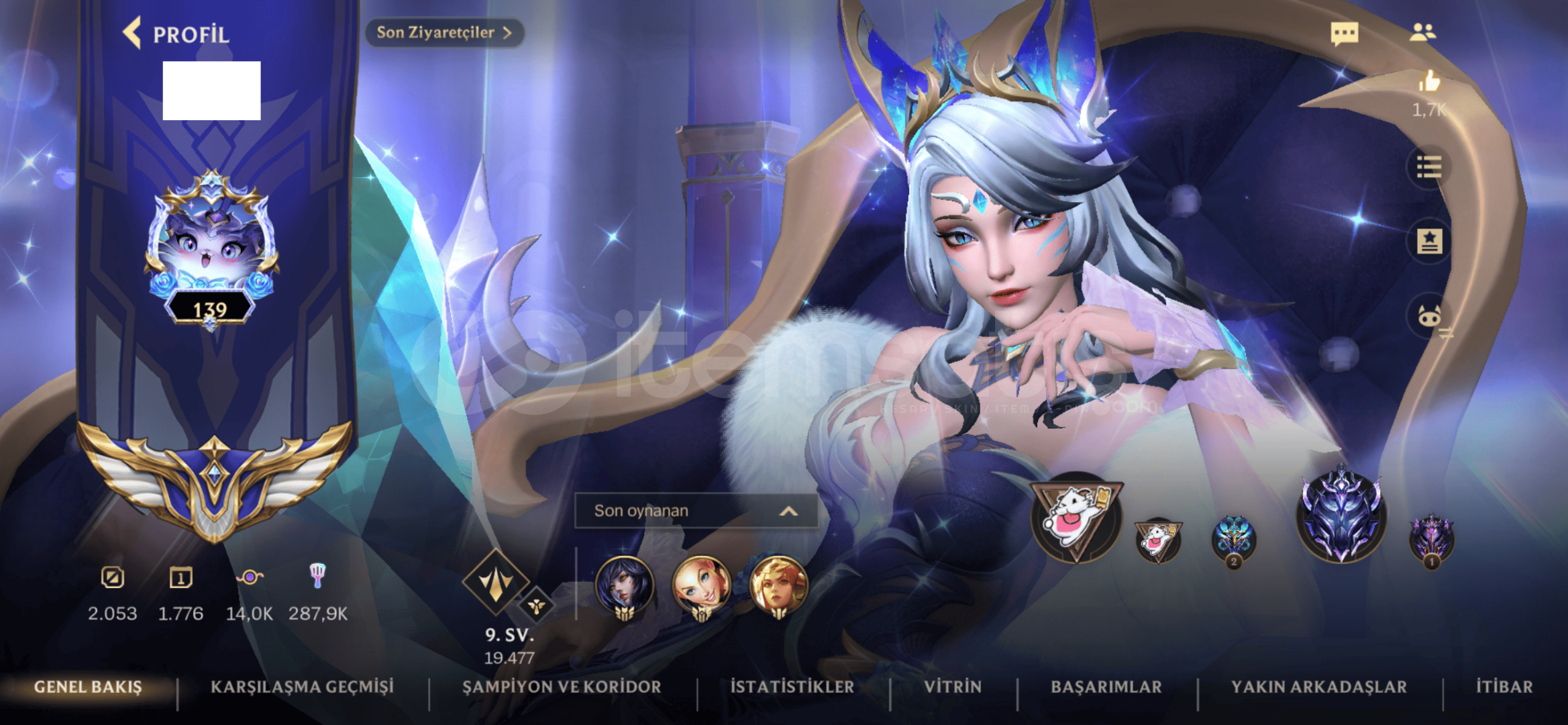 Bir önceki sezonu grandmaster bitirmiş şuanda elmas 1 olan hesabım aynı zamanda lolde 42 lvl 5 6 tane kostümü vardır wild riftdeki kostümler değerli kostümlerdir çürük çarık kostümler yoktur görsellerde herşeyi çektim detaylı inceleyebilirsiniz mail ile verilecektir hesap bana aittir