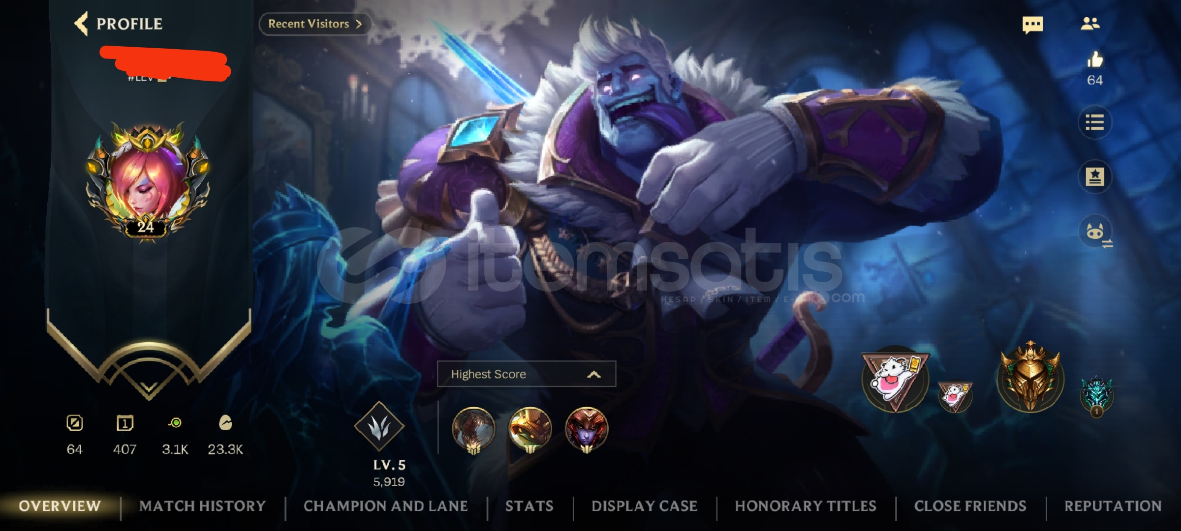 60 MAÇ %71 Wr 6.9 KDA kasmalık fırsat hesap. Hızlıca teslim edilir.Bu winrate ve KDA ile her odaya kabul edilirsiniz. Ayrıca 400 günlük hesaptır.JUNGLE mainSOLO, Mid kasılabilir.Diğer detaylar için mesaj atınız.