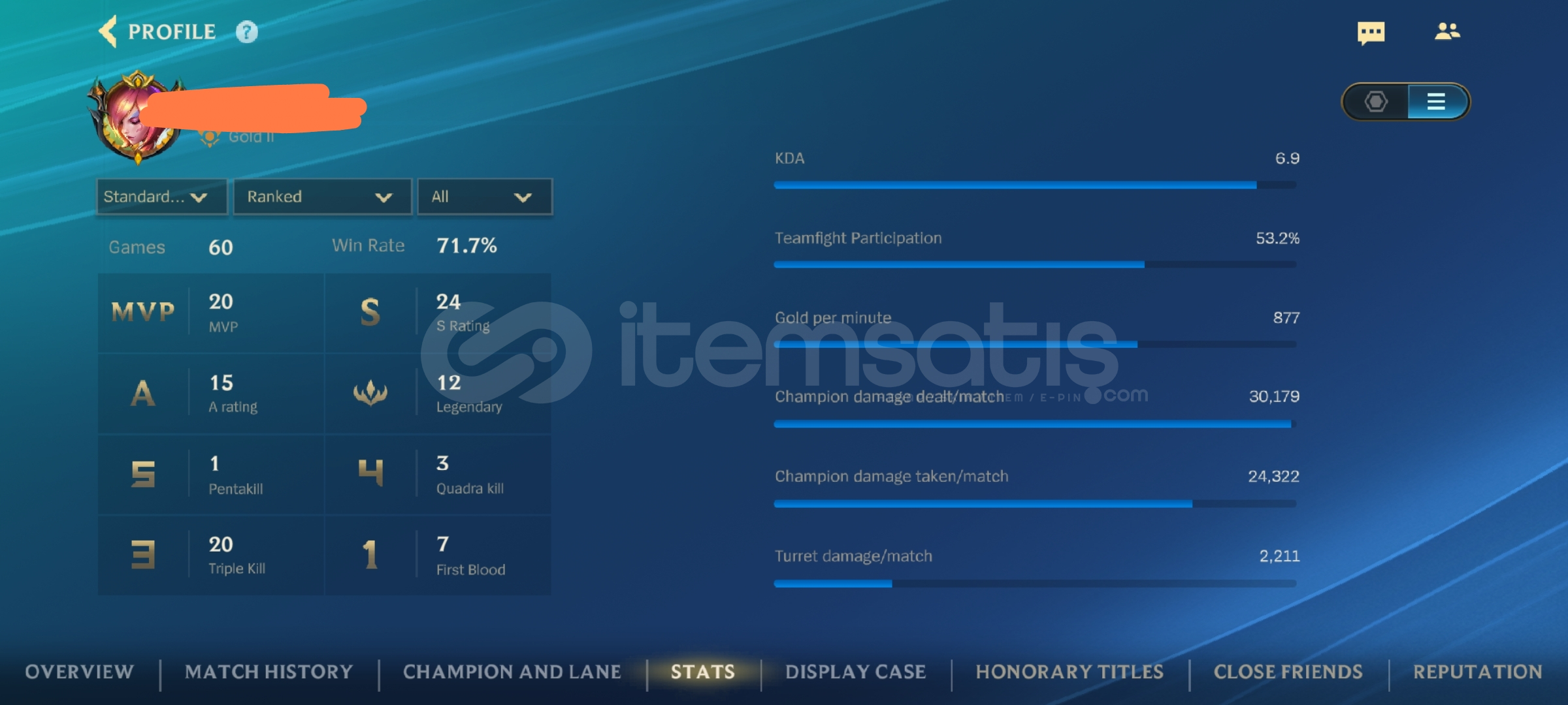 60 MAÇ %71 Wr 6.9 KDA kasmalık fırsat hesap. Hızlıca teslim edilir.