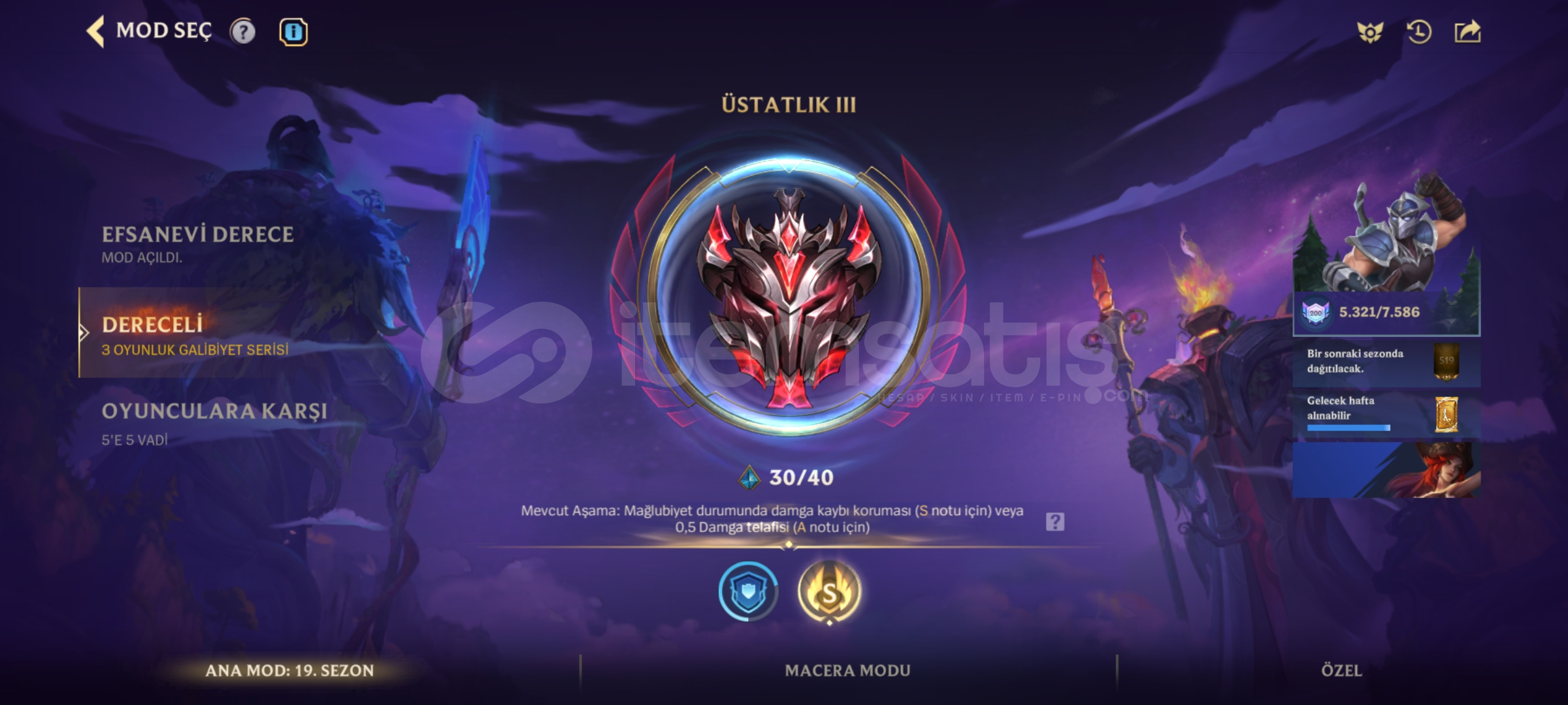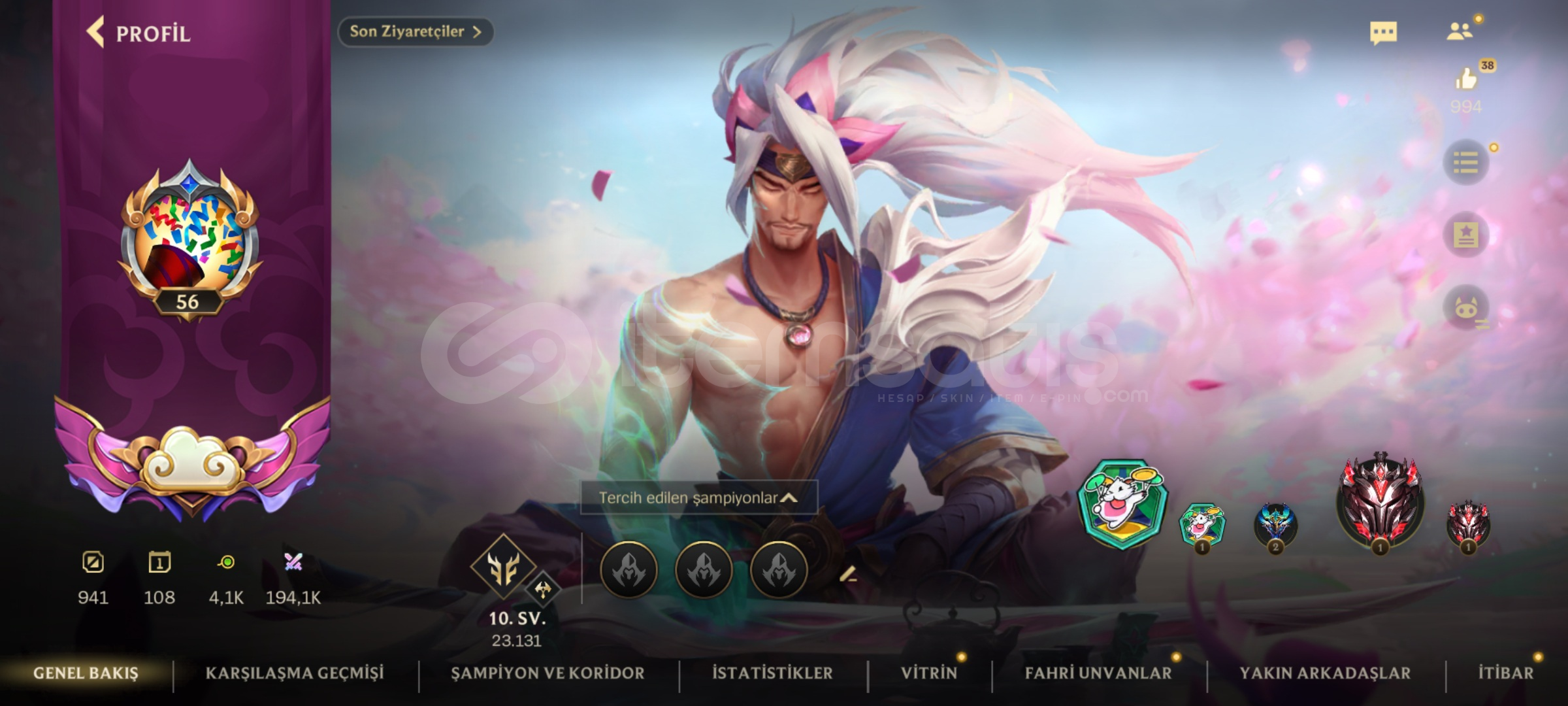 GM ELO HESAP -FAZLA SKINI YOKTUR RANK KASMA AMACI ILE OYNANMIŞTIR ILK 200 SIRALAMAYA YAKIN KARAKTERLER VARDIR 2 ADET (SHEN ve ASHE) SOLO/ADC MAIN...