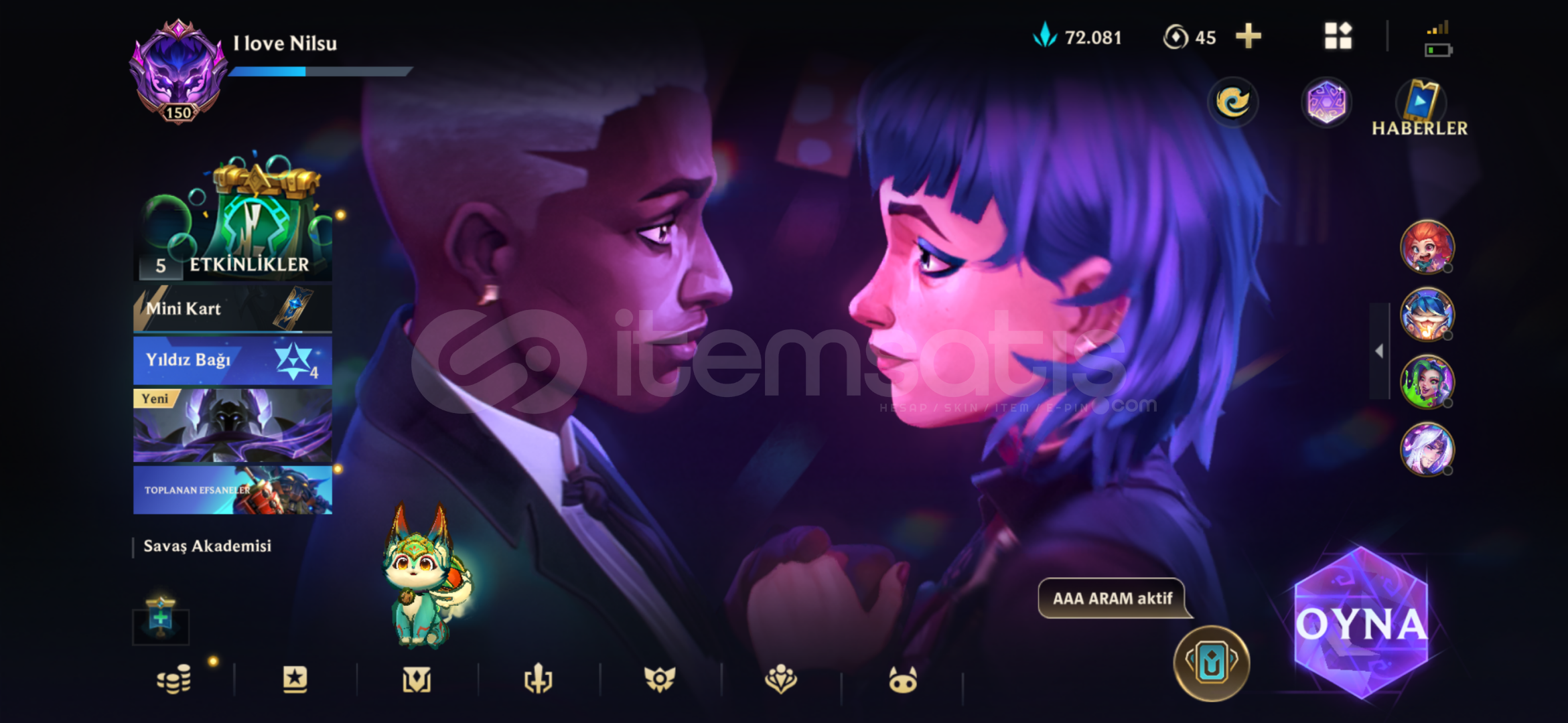 hesap ustalık 2 150 lvl olup 83 skin vardır detaylı bilgi için dm atabilirsiniz