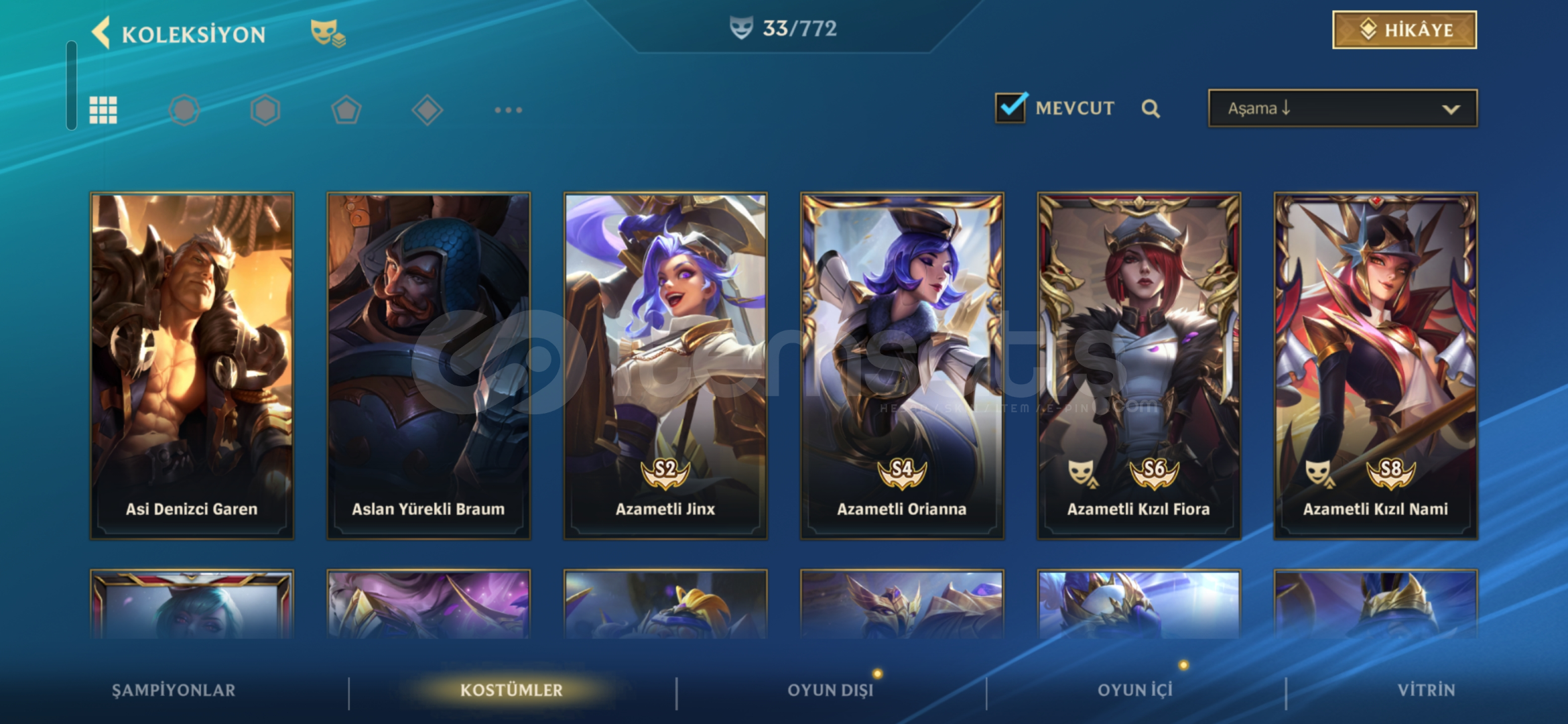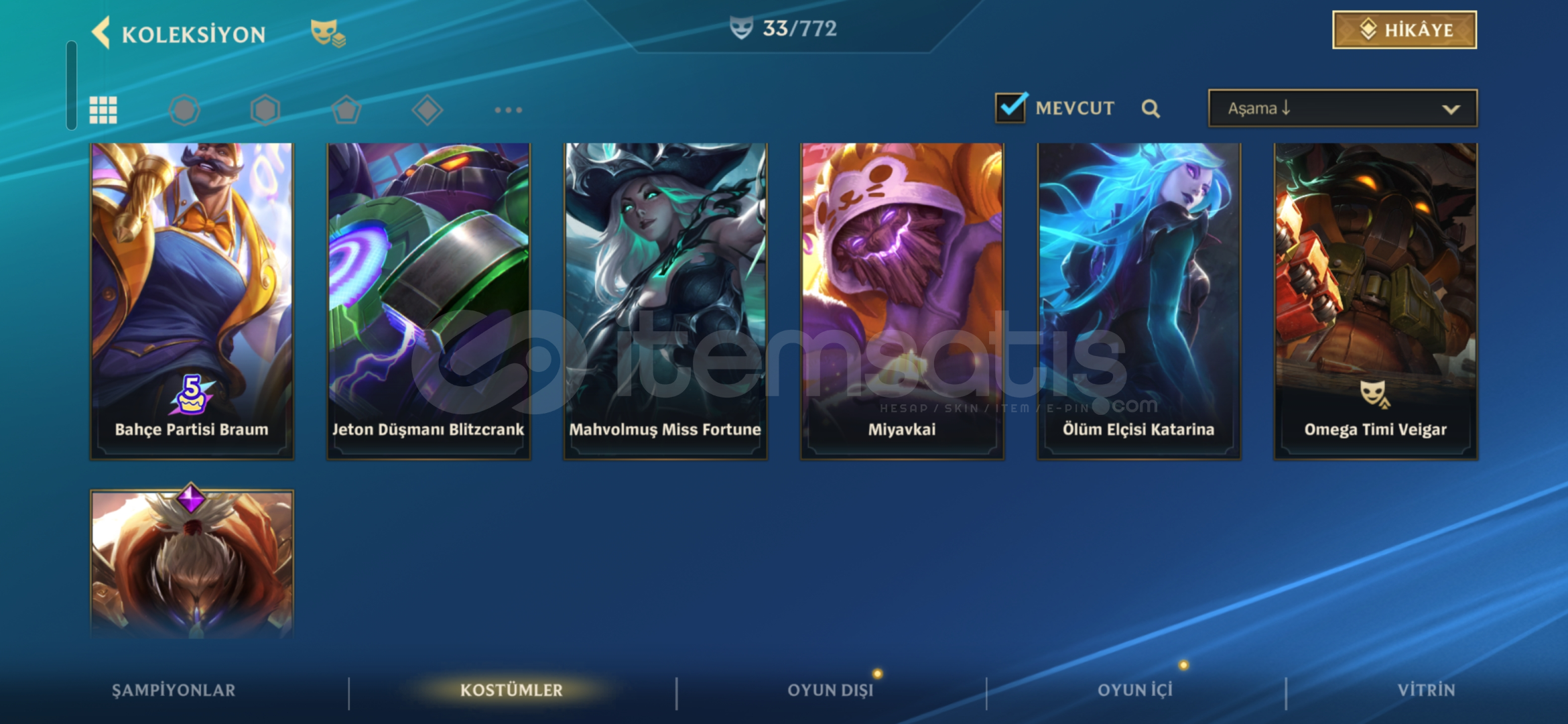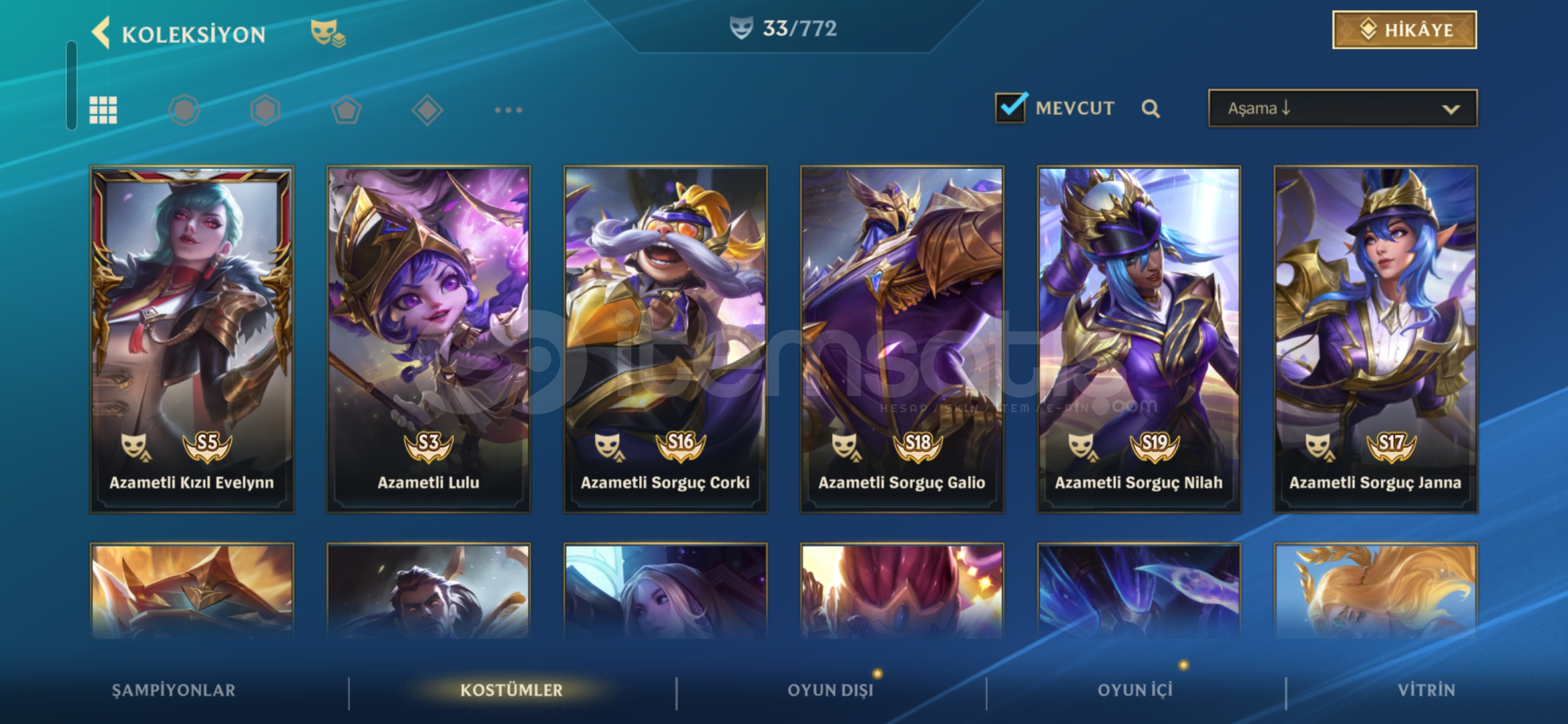 89 level 92 şampiyon 33 kostüm main hesabımdır. Bir çok extrası var... Sorularınız varsa alırım...