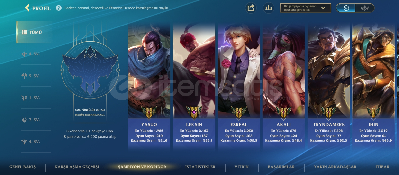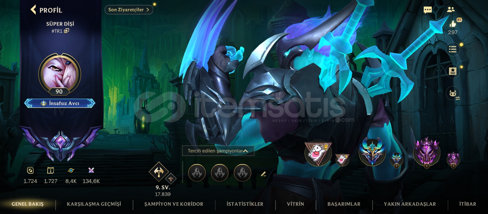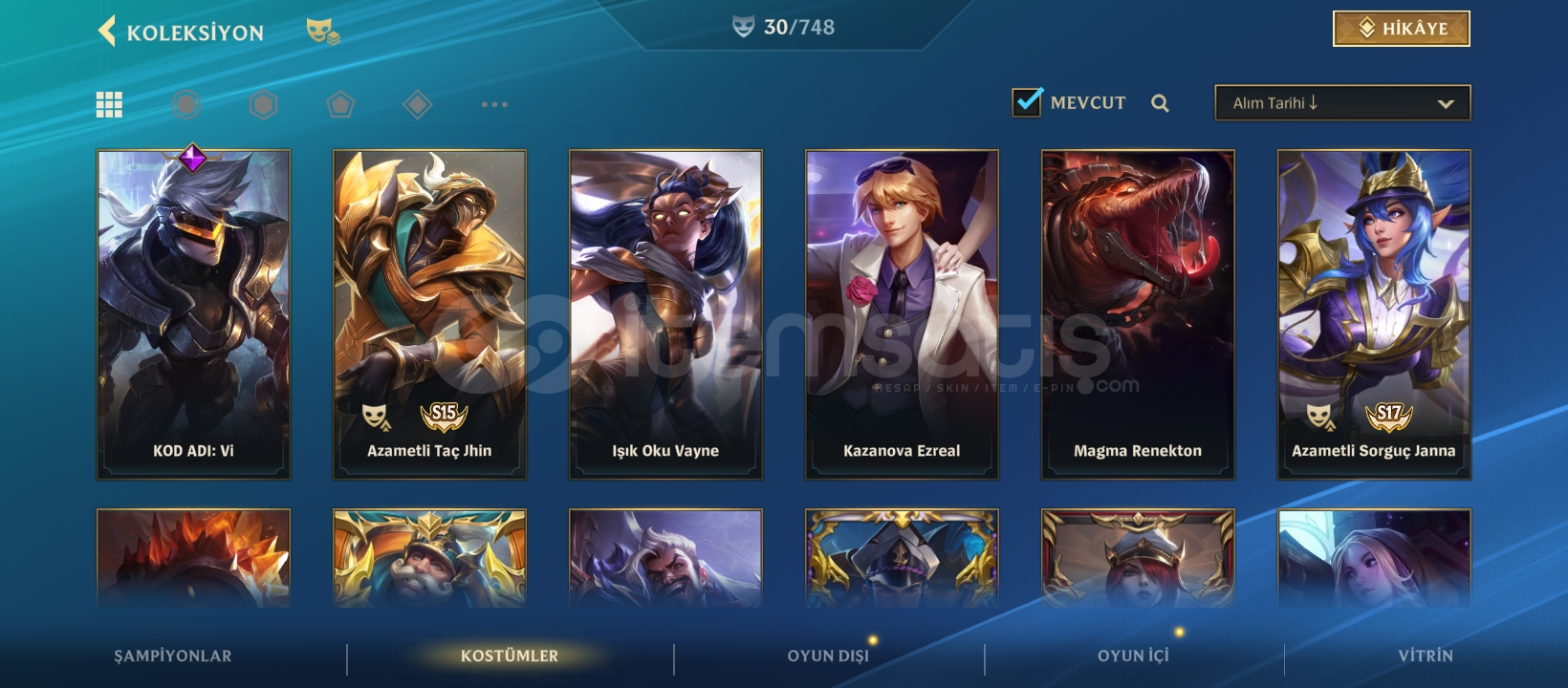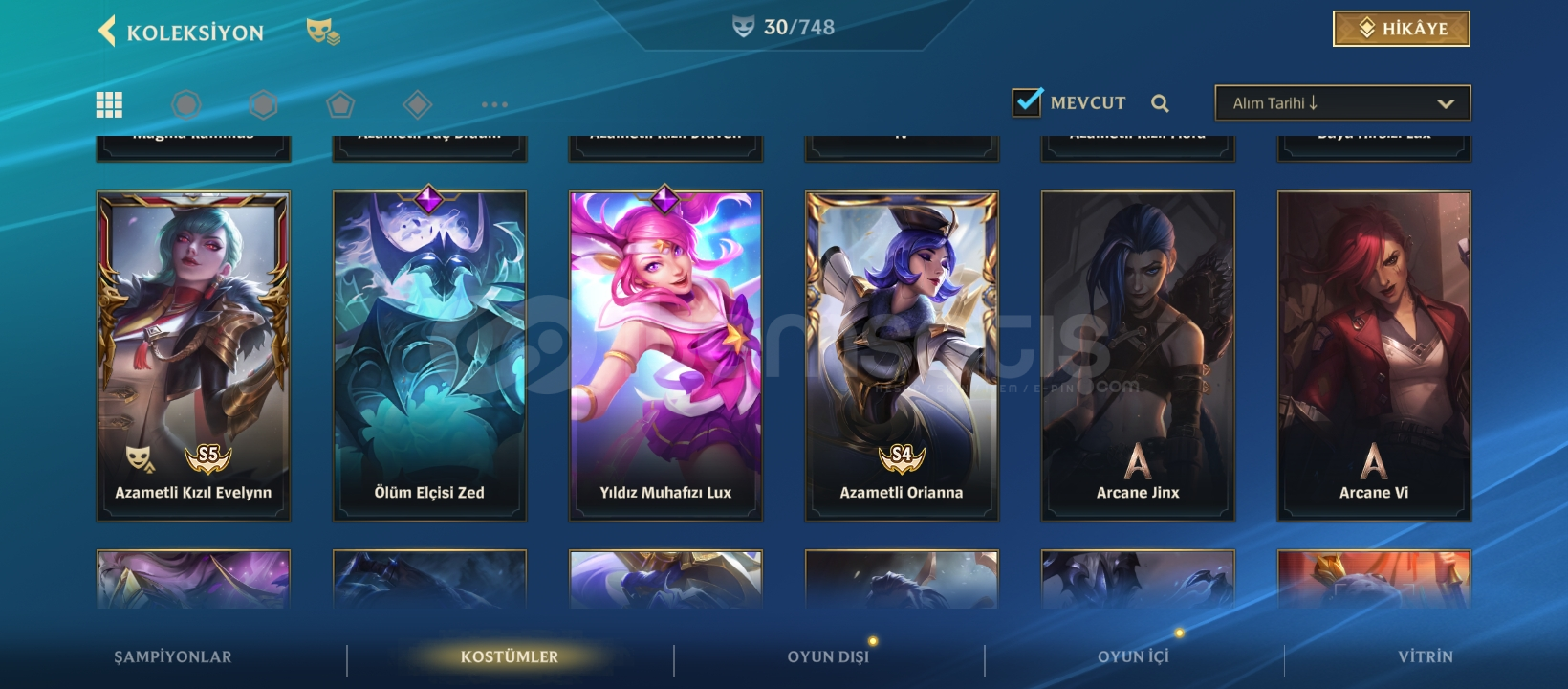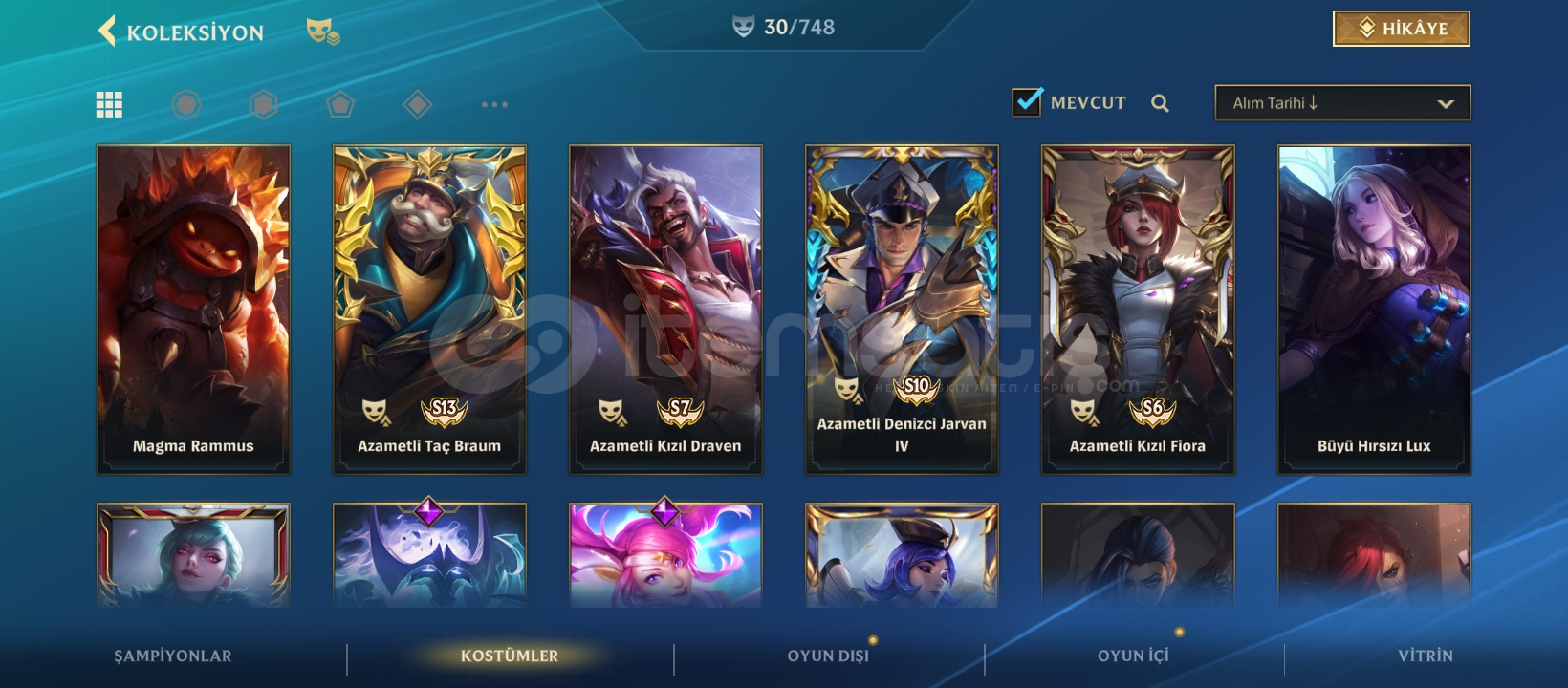 Hesap 90 lwl 4 yıldır kullanılıyorum tertemiz 90 tane şampiyon açık 30 tane kostüm var