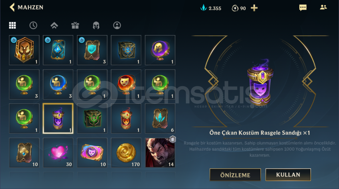 29 LevelPlat düşmesi Altın5 çerçeve 33 simge2k Mavi öz 90vç1x Rasgele Kostüm Sandığı1x Kostüm Sandığı1x Şampiyon Sandığı1x Ay Festivali Rasgele Kostüm Sandığı4320 Poro Enerjisi30 Şampiyon 37 KostümEposta Şifre Değiştirebilirsiniz