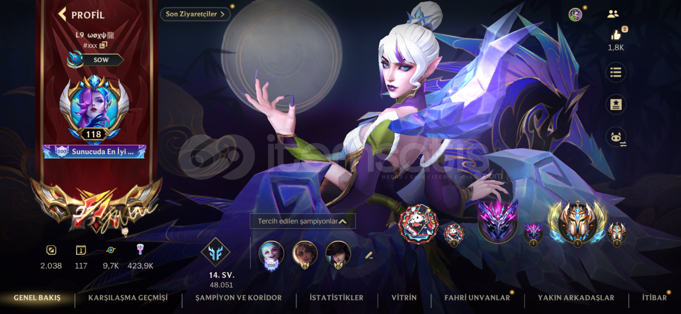 Adc mainler için güzel hesap güzel kostümleri var 2 sezonluk hesap geçen sezon gm1 bitirdi bu sezon aktif chall 3.000 s...