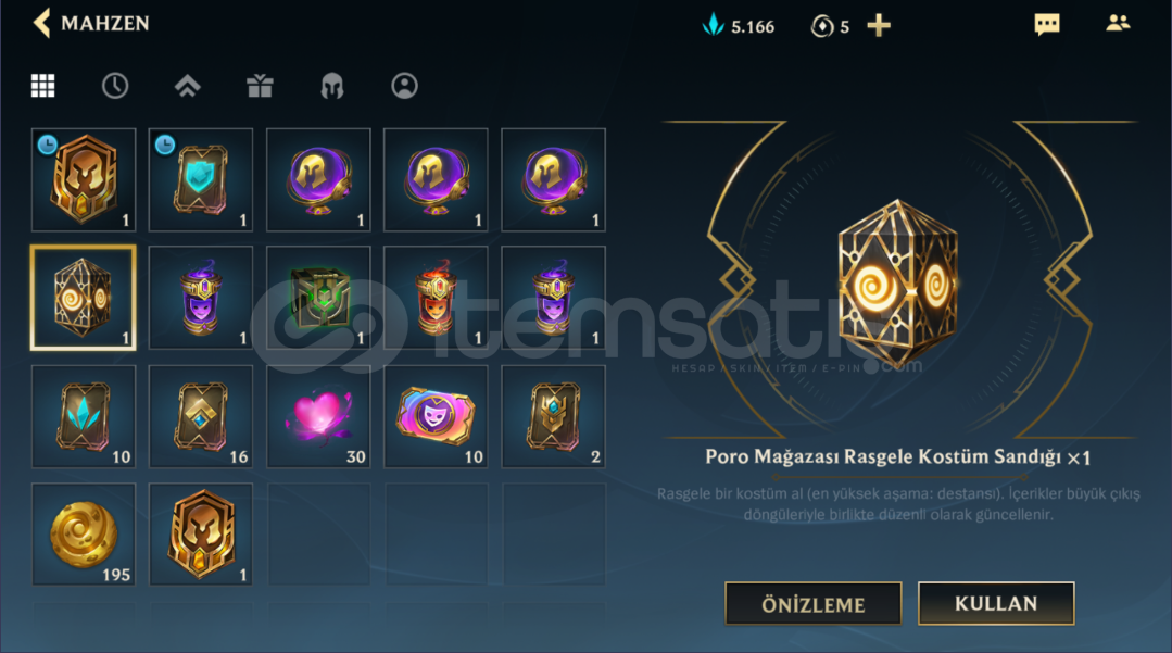 21 levelMaster Düşmesi Altın 417k dereceli mağza puanı18 simge 3 çerçeve 280 Poro Enerjisi3x Şampiyon Sandığı1x Vadi Rasgele Kostüm Sandığı1x Ay Festivali Rasgele Kostüm Sandığı1x poro mağzası rasgele kostüm sandığı2x Rasgele Kostüm Sandığı45 şampiyon 31 kostüm5k mavi öz 5 vahşi çekirdekeposta şifre değiştir...