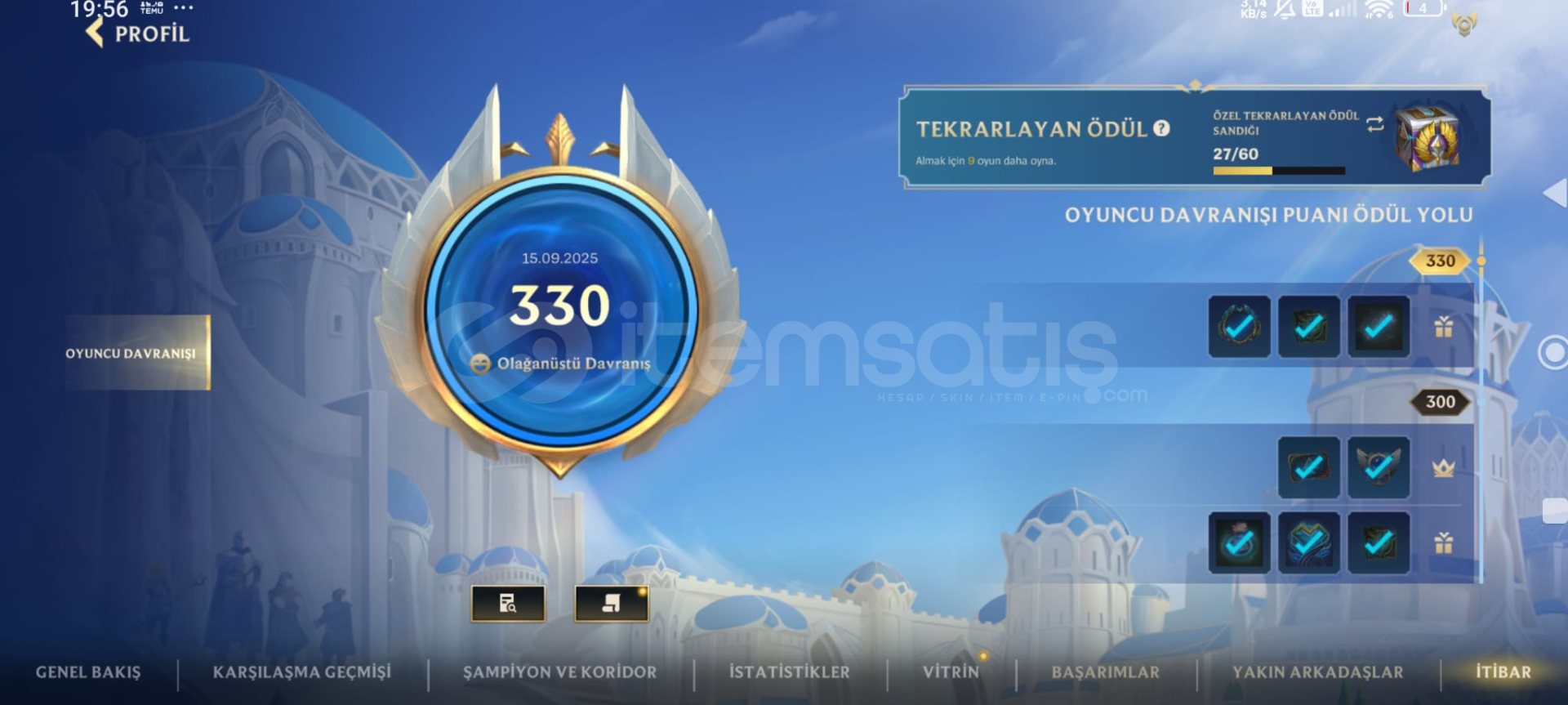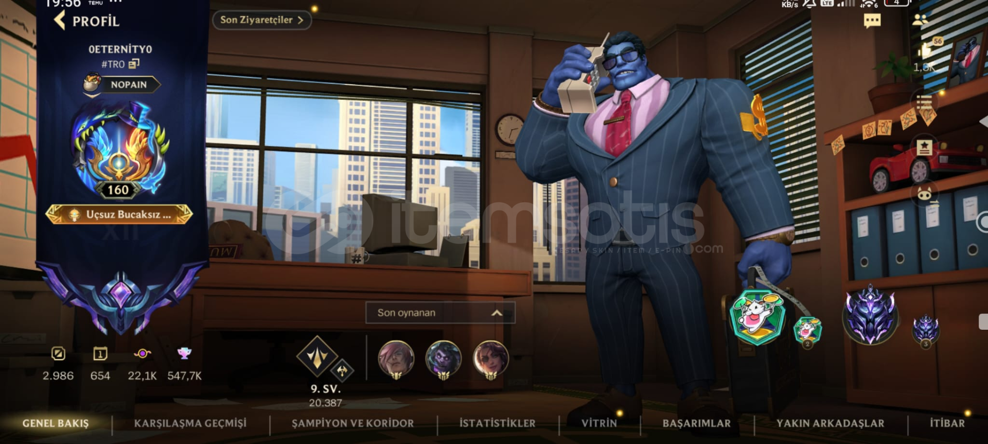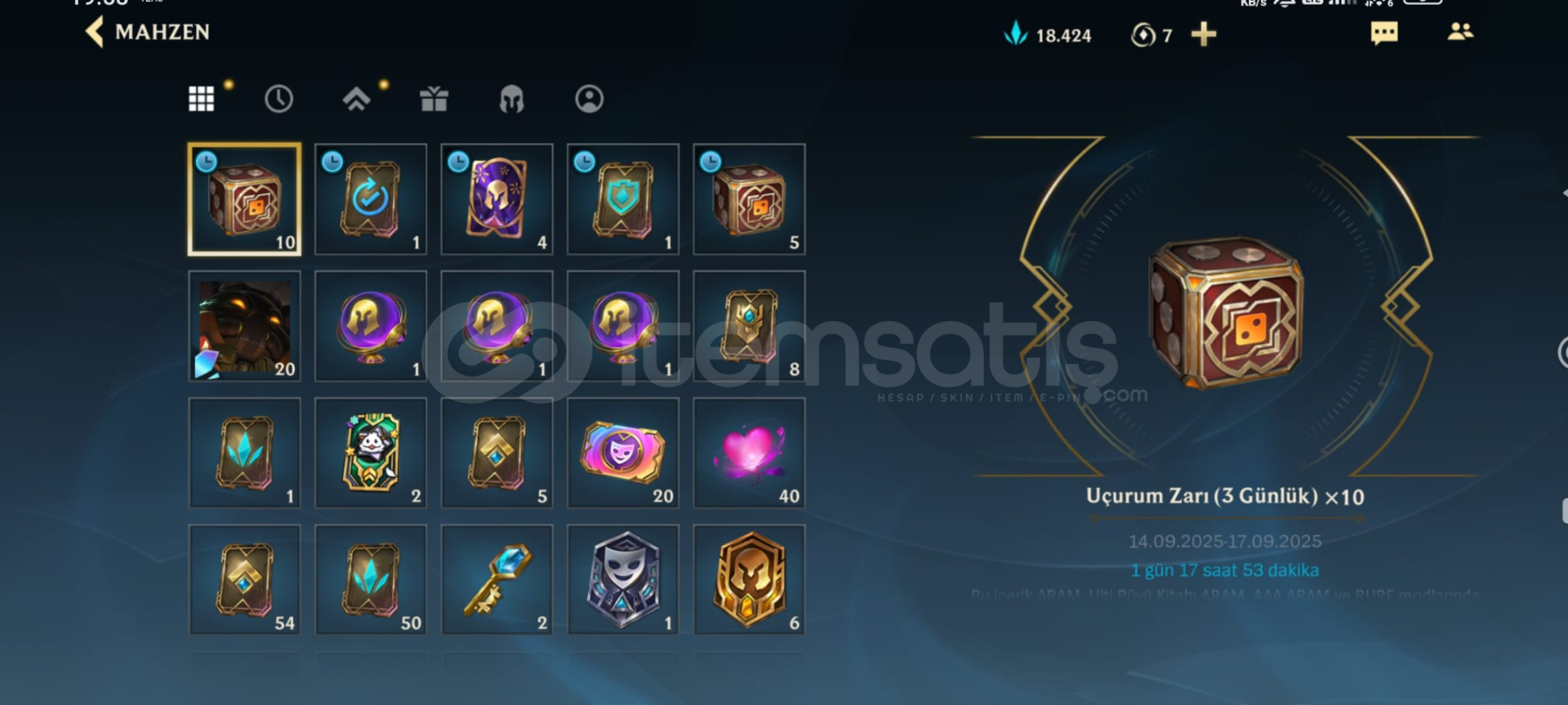 Merhaba hesap emek verilmiş bir hesap tamamen saygı davranışları içerisinde kullanılmıştır görseller de gözüküyor zaten.hesabın daha detaylı bilgisini almak isterseniz discordan bilgi verebilirimşuan hayla elmas 4 dedir Hesapta toplam 117 kostüm 2 prestejli 25 efsanevi 57 epic 33 sıradan toplam 117 kostüm vardır.30k üzeri mavi öz 56k dereceli jetonu 648 yoğunlaşmı&#...