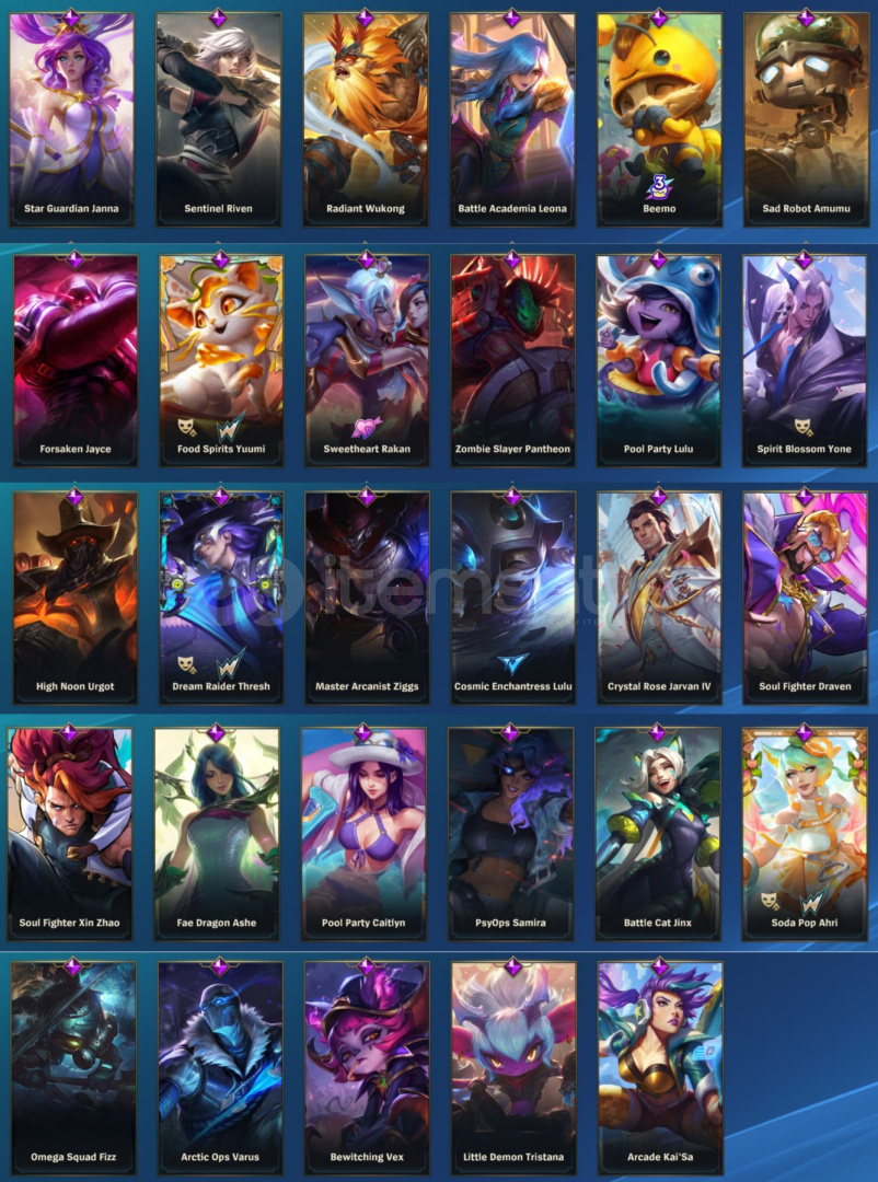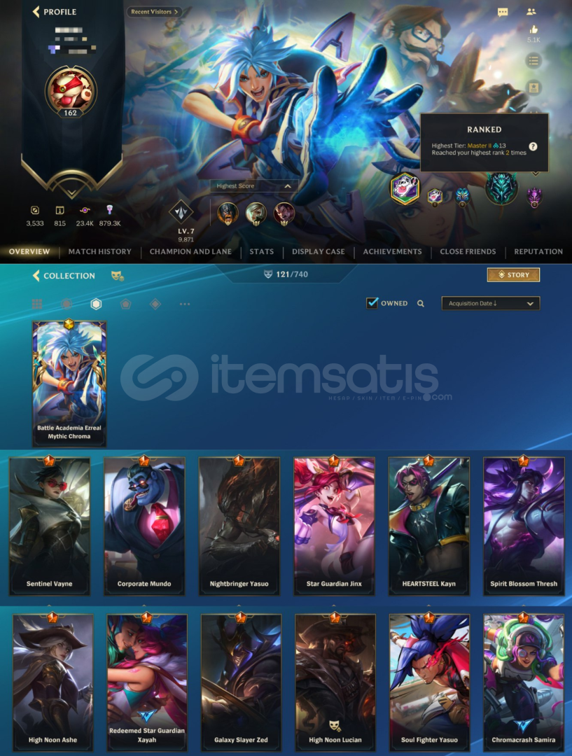 Merhaba arkadaşlar. Hesapta 100+ şampiyon ve 120+ kostüm mevcuttur. 2 yoldaş ve 59 turuncu öz vardır. 2 defa ustalık olmuştur. Güncel olarak Zümrüt 4 ligindedir. Genel olarak bütün koridorlarda oynanmıştır. Pazarlık olur. Detaylı bilgi ve sorularınız için mesaj atabilirsiniz.