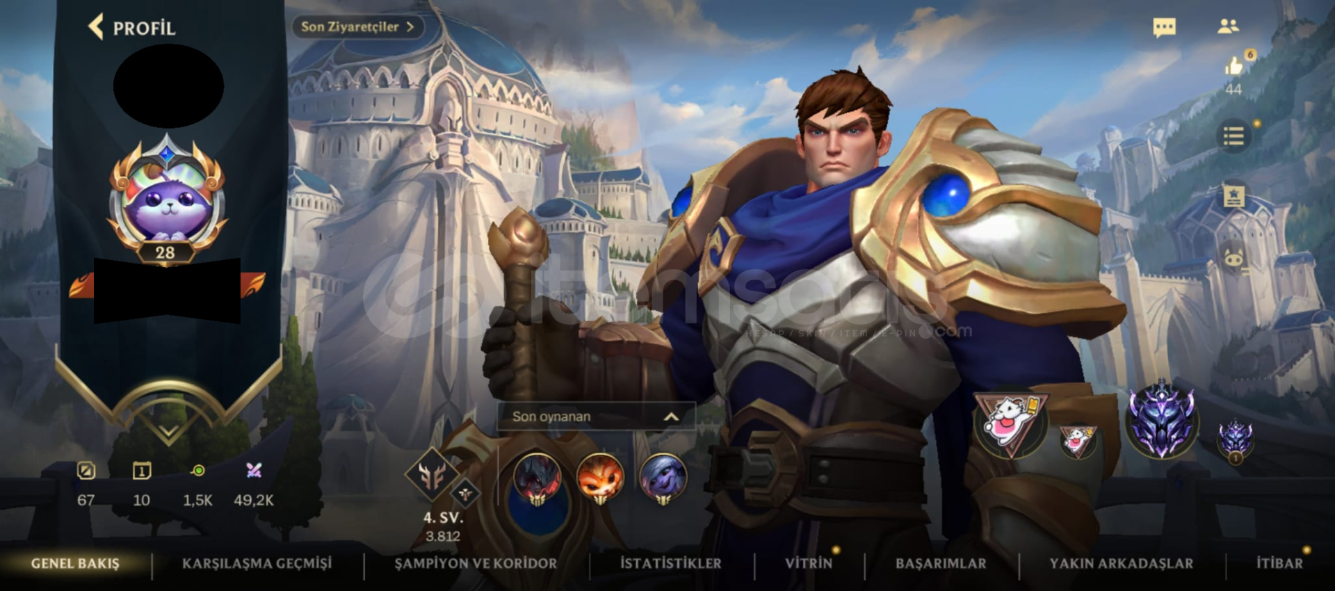 Kendim kastım yüksek kazanma oranlı temiz hesap hiçbir chat ban, afk, veya başka ihlali yoktur. Alınabilecek tüm ödüller de toplanmıştır.