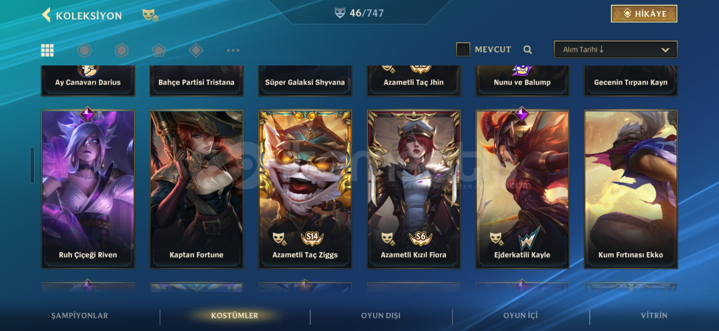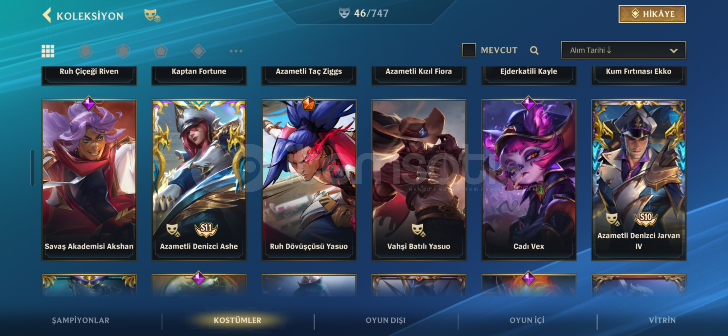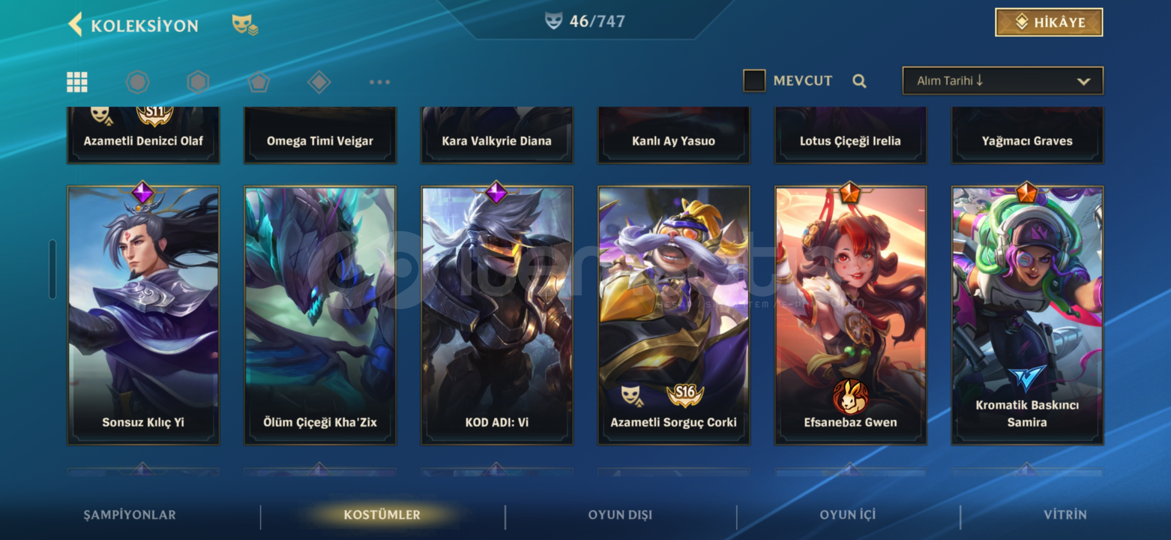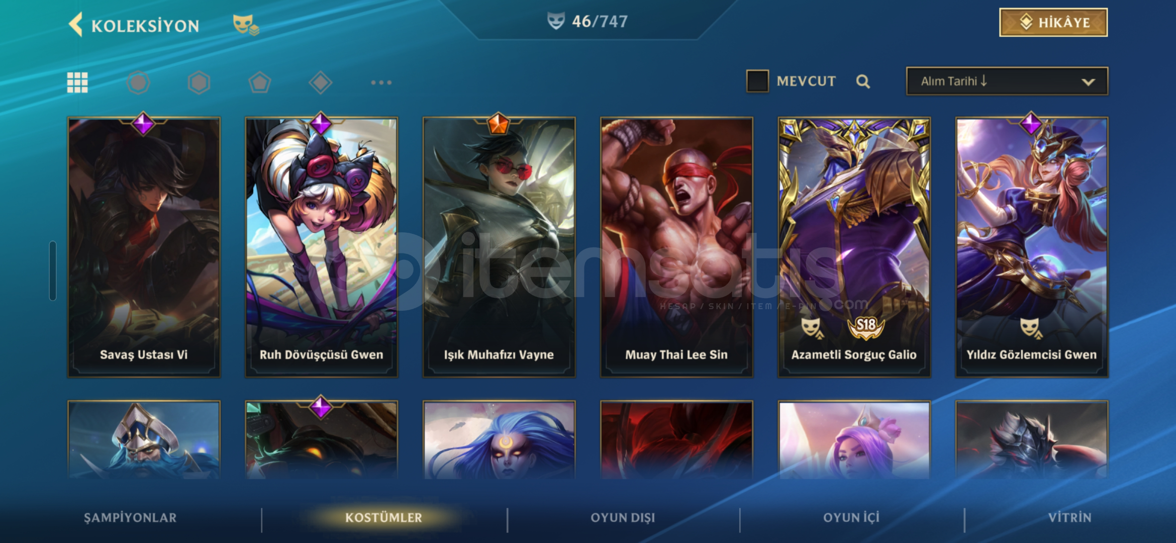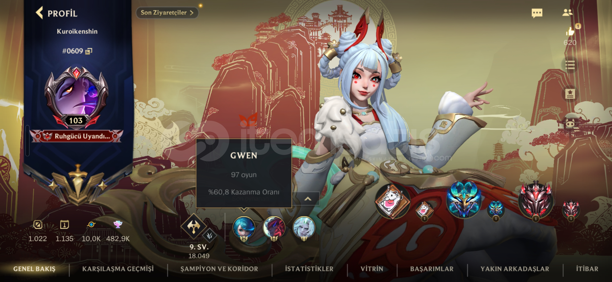 Gwen/Yasuo main hesap, 9 level toplane/7 level jungle vardir, 380 Turuncu Öz vardır.