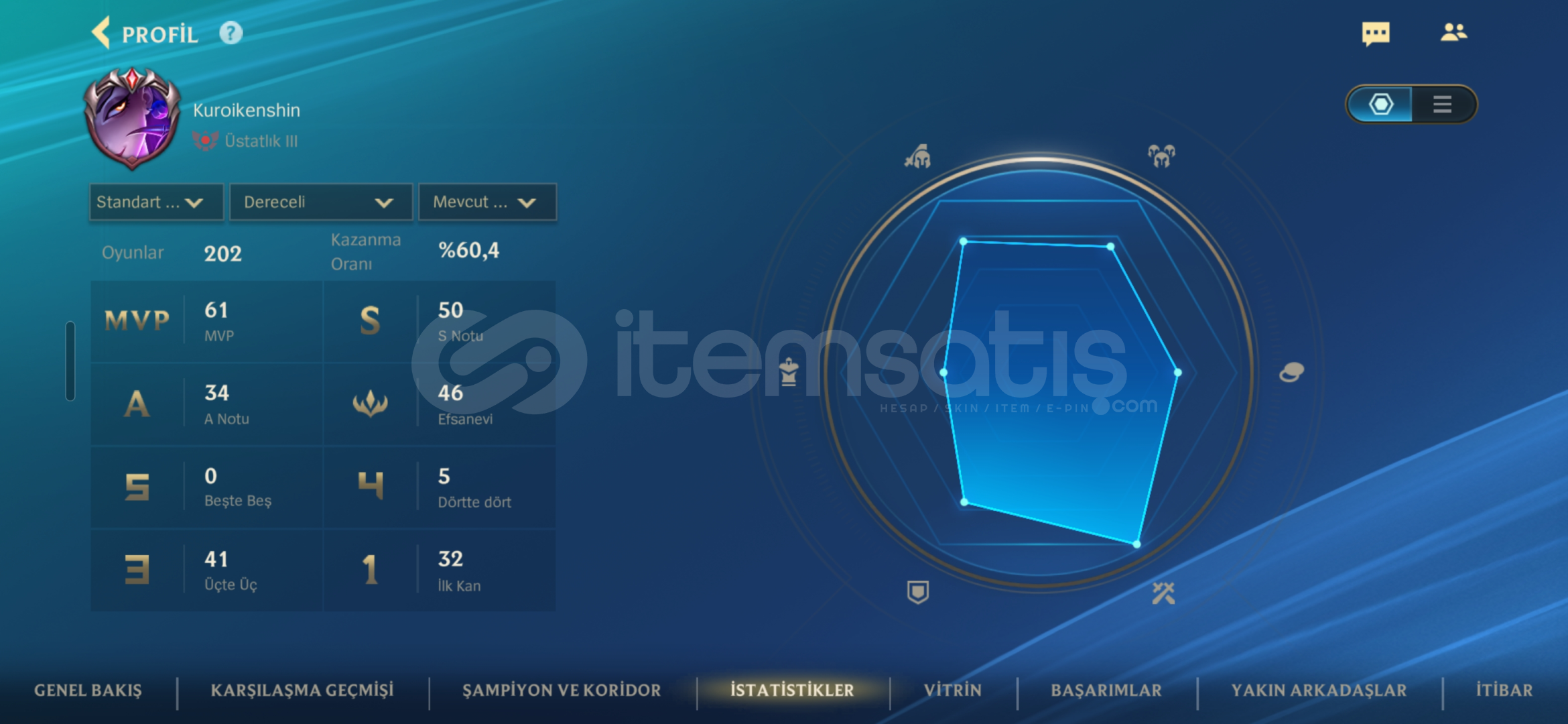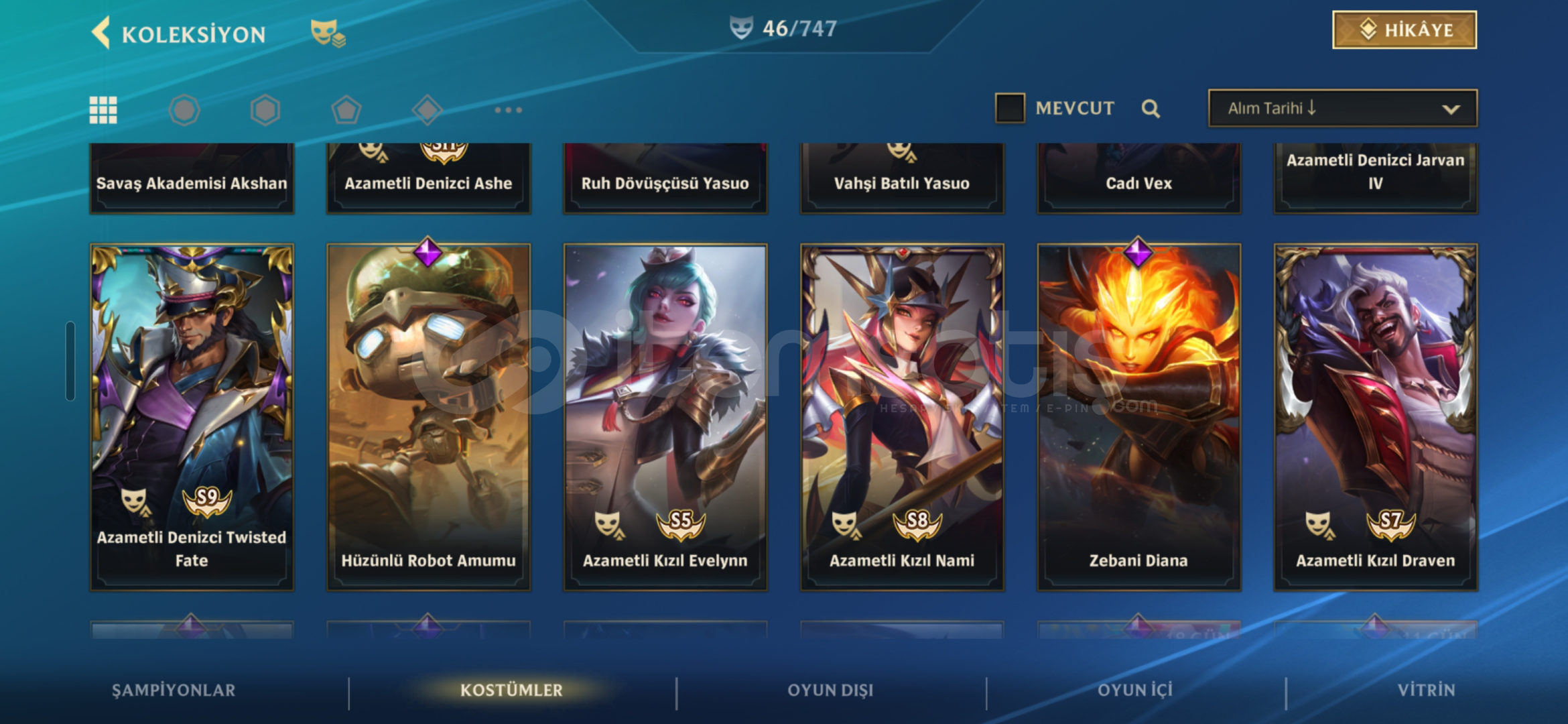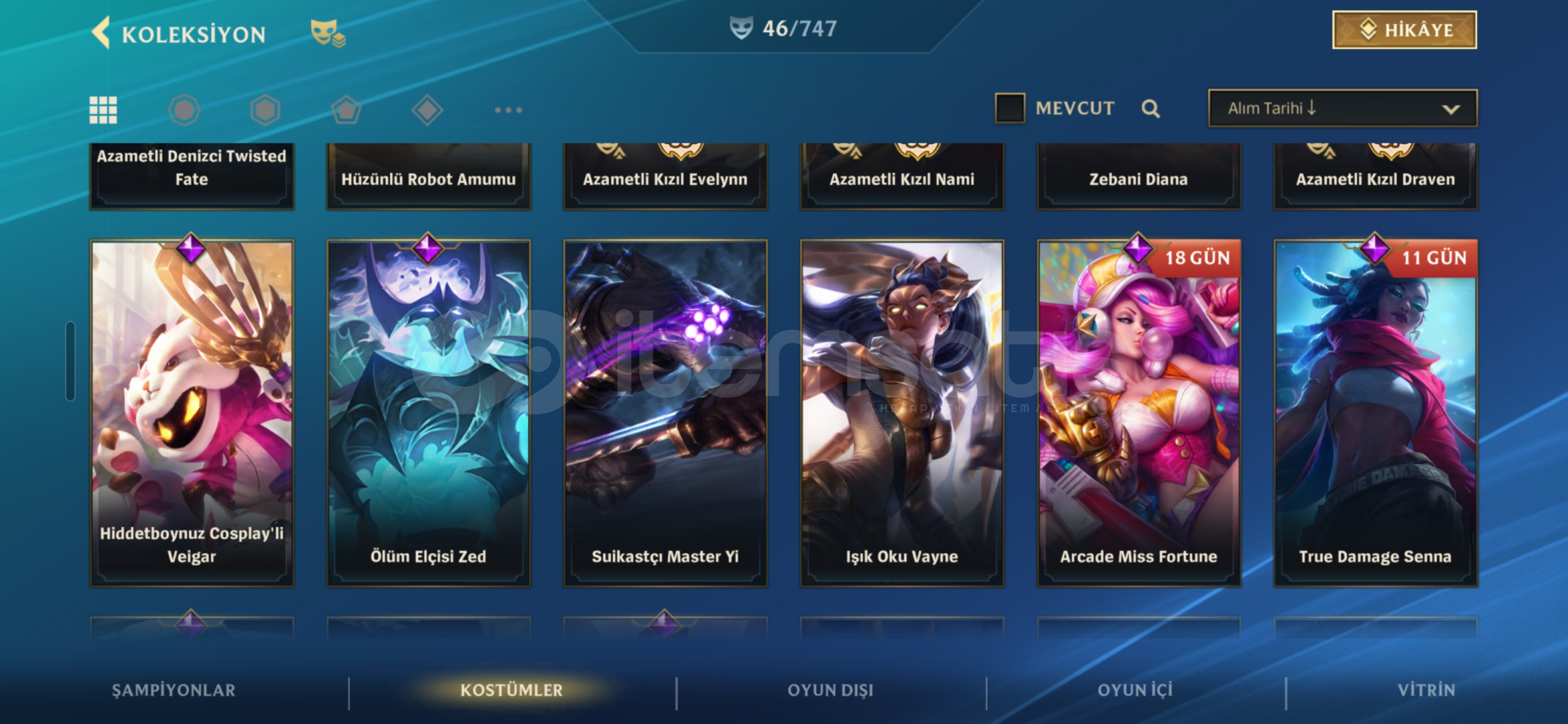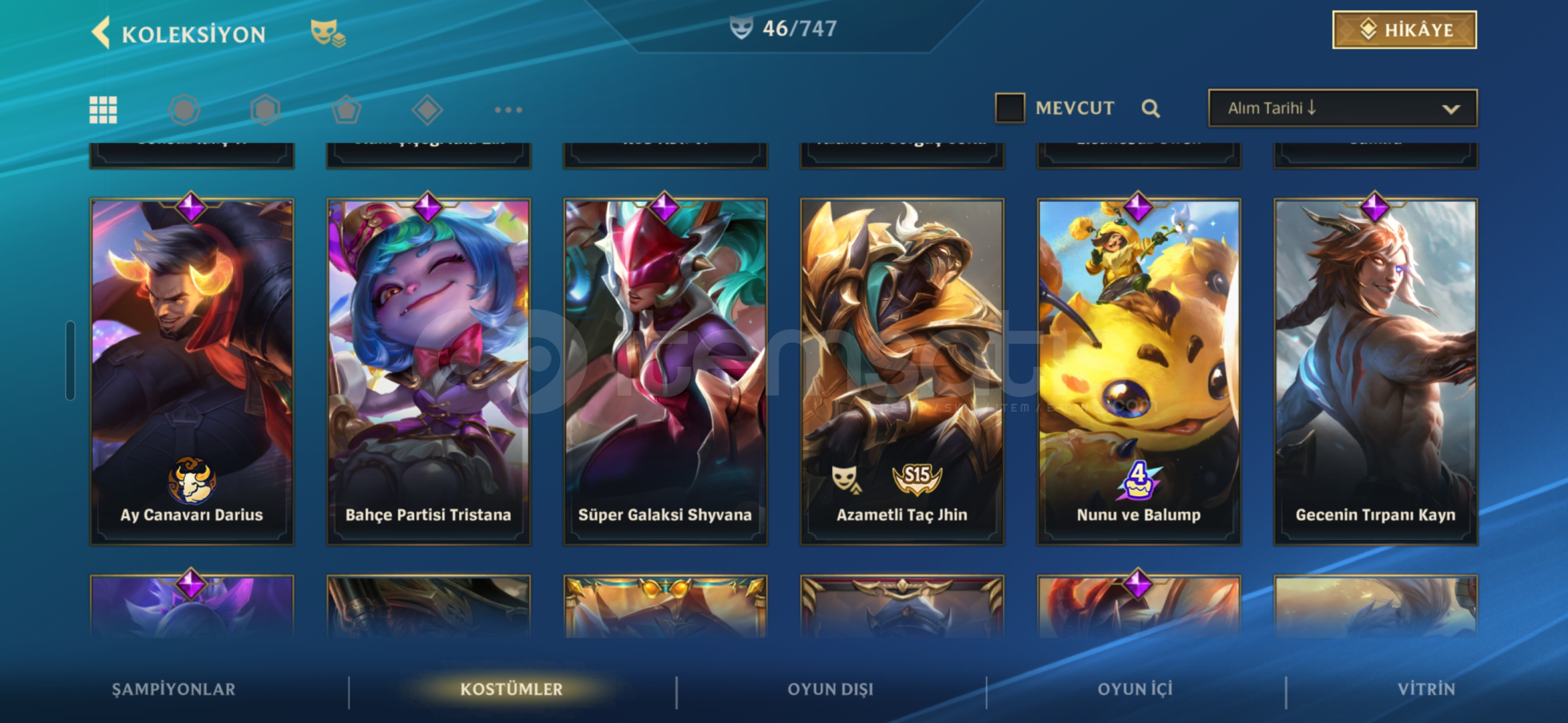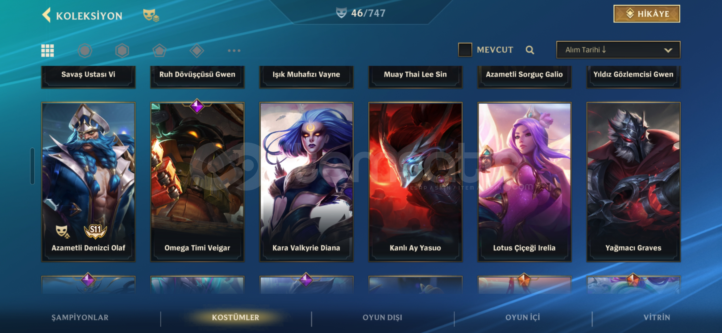 Gwen/Yasuo main hesap, 9 level toplane/7 level jungle vardir, 380 Turuncu Öz vardır.