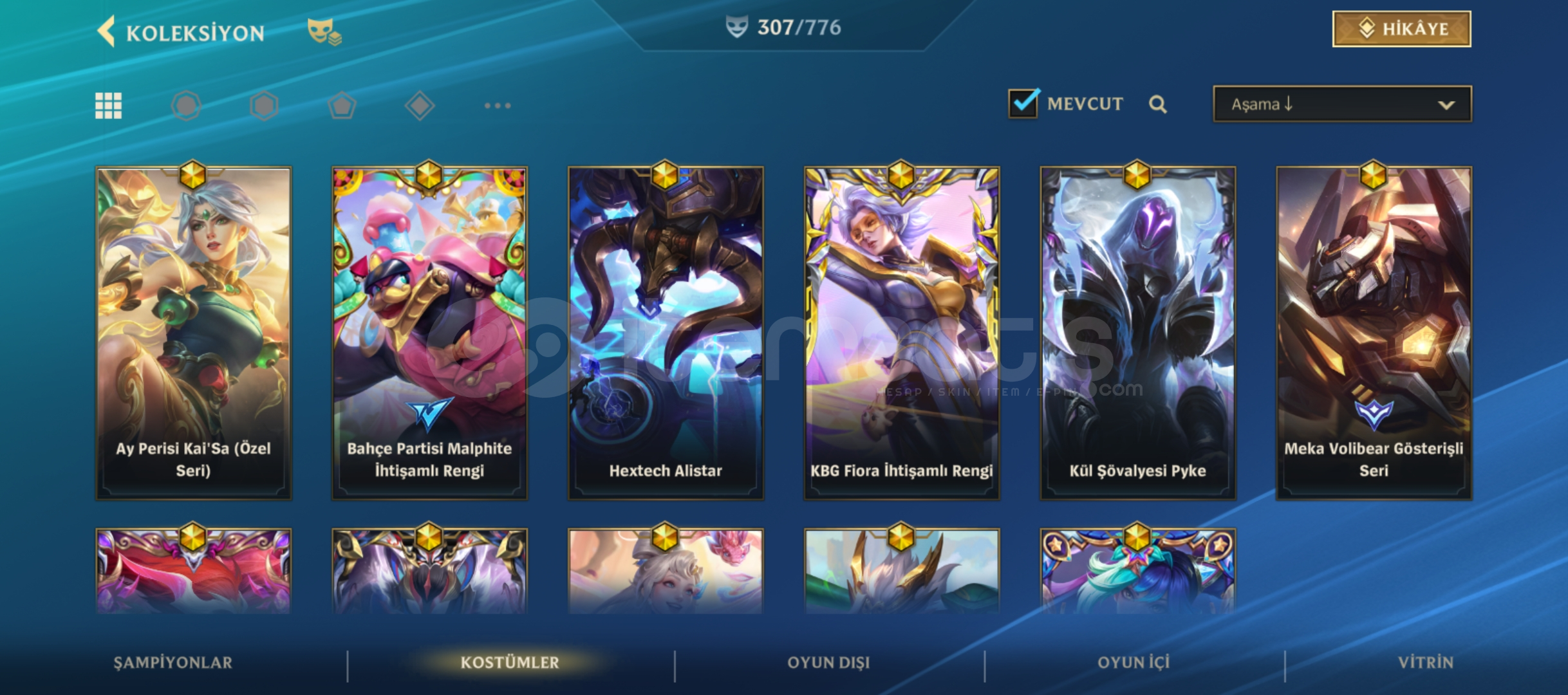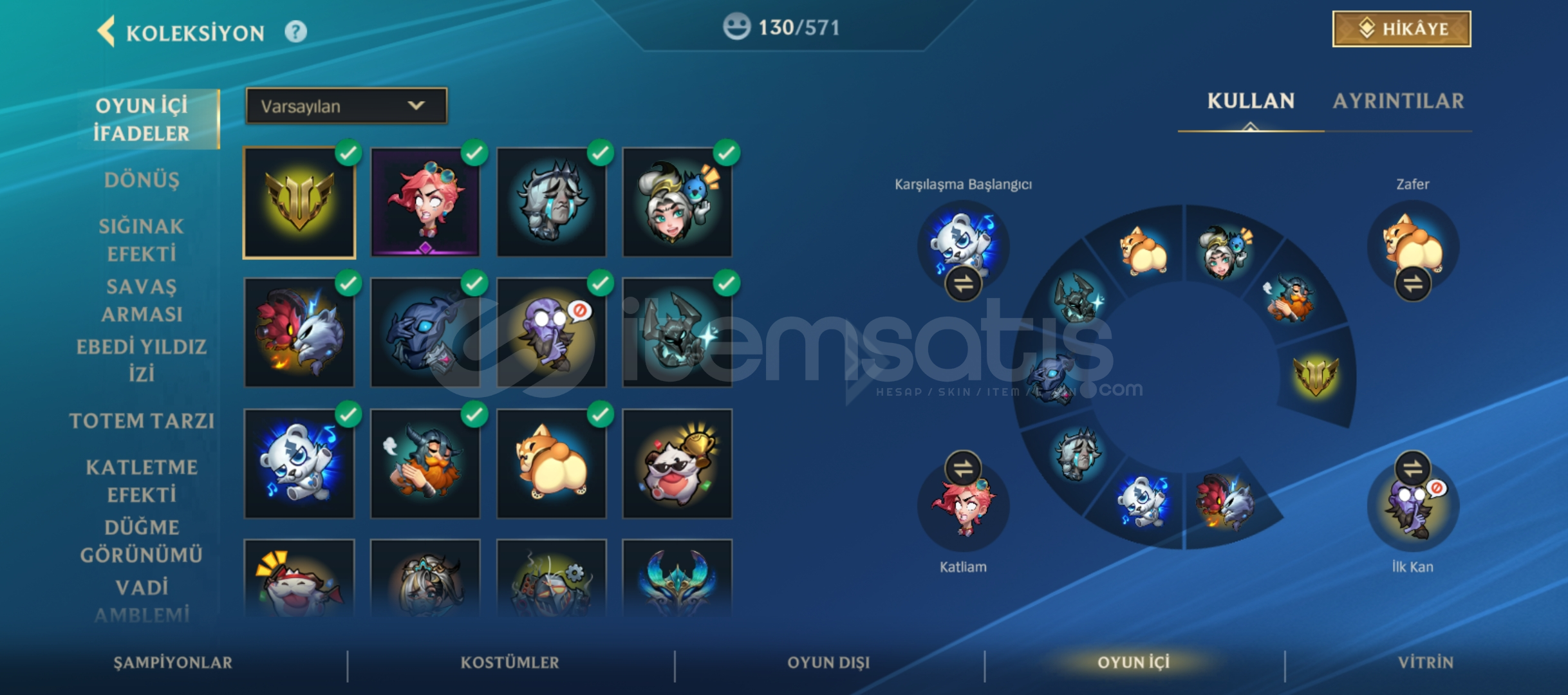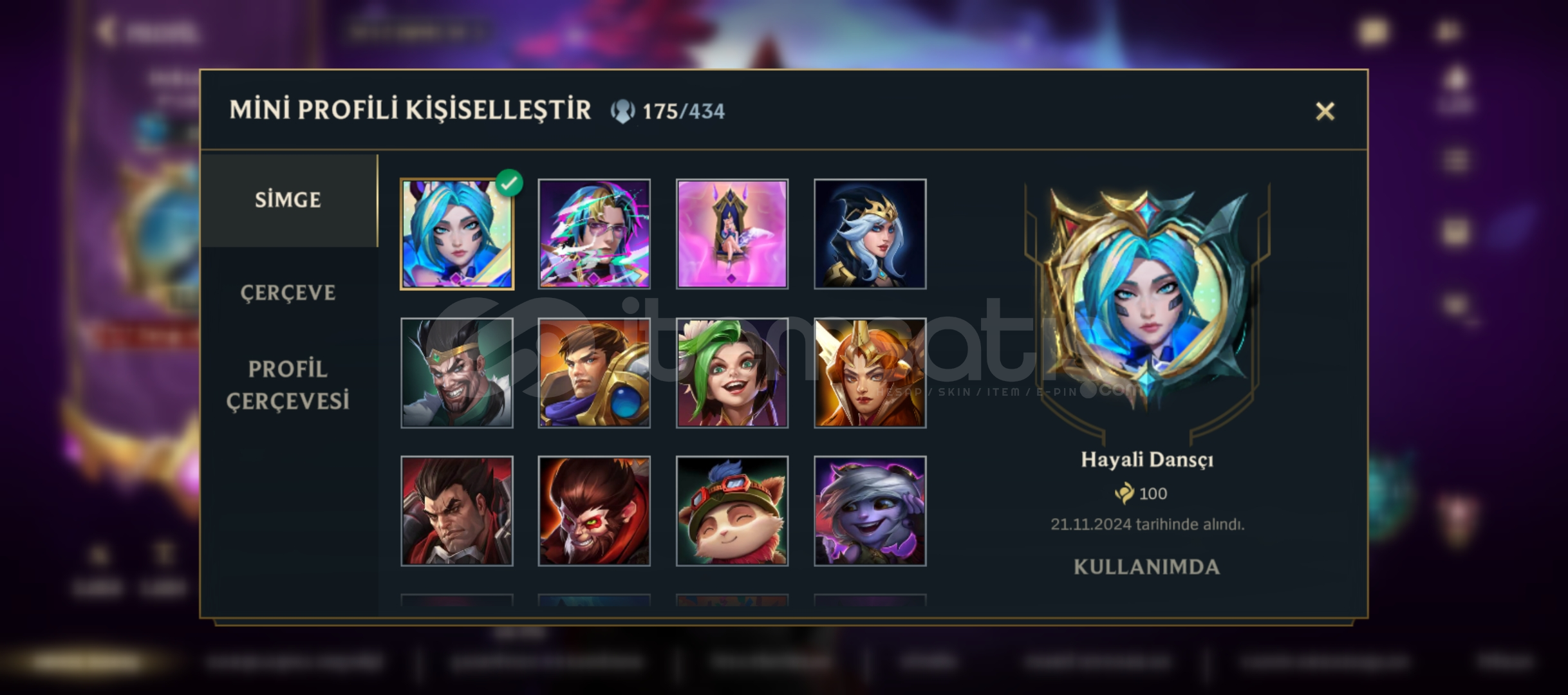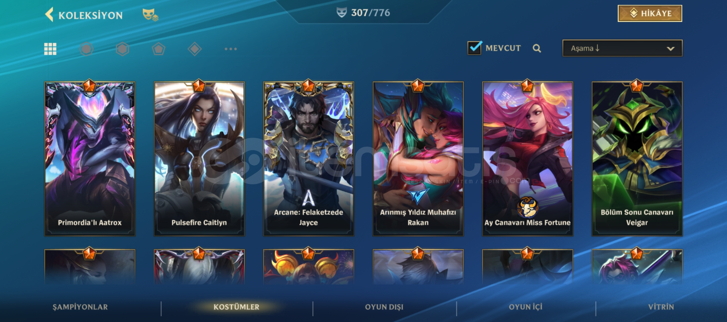 Hesap*147 seviye*307 kostüm*130 ifade*tüm şampiyonlar açık*birçok çerçeve ve simge açık