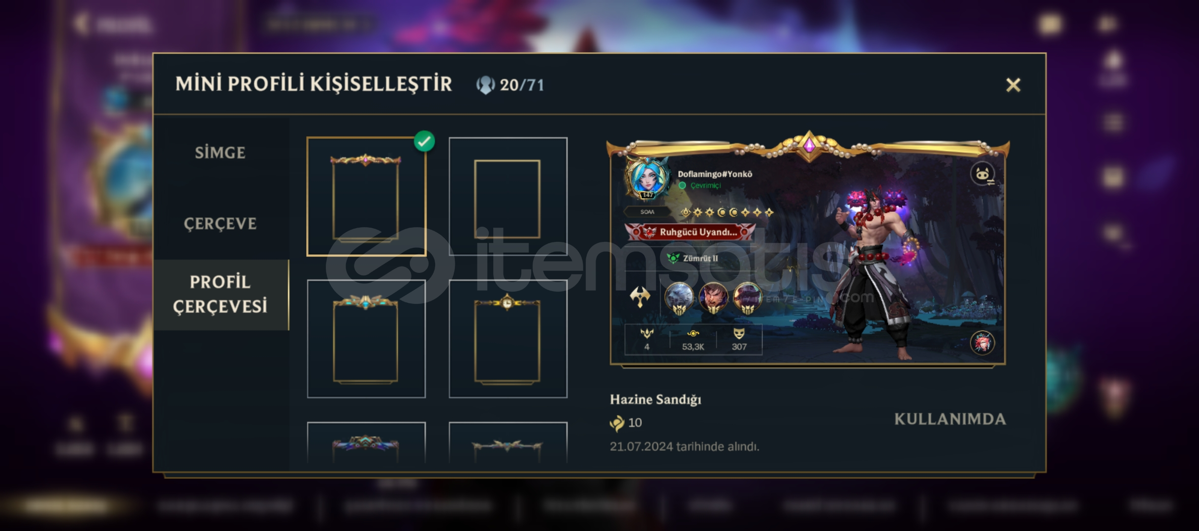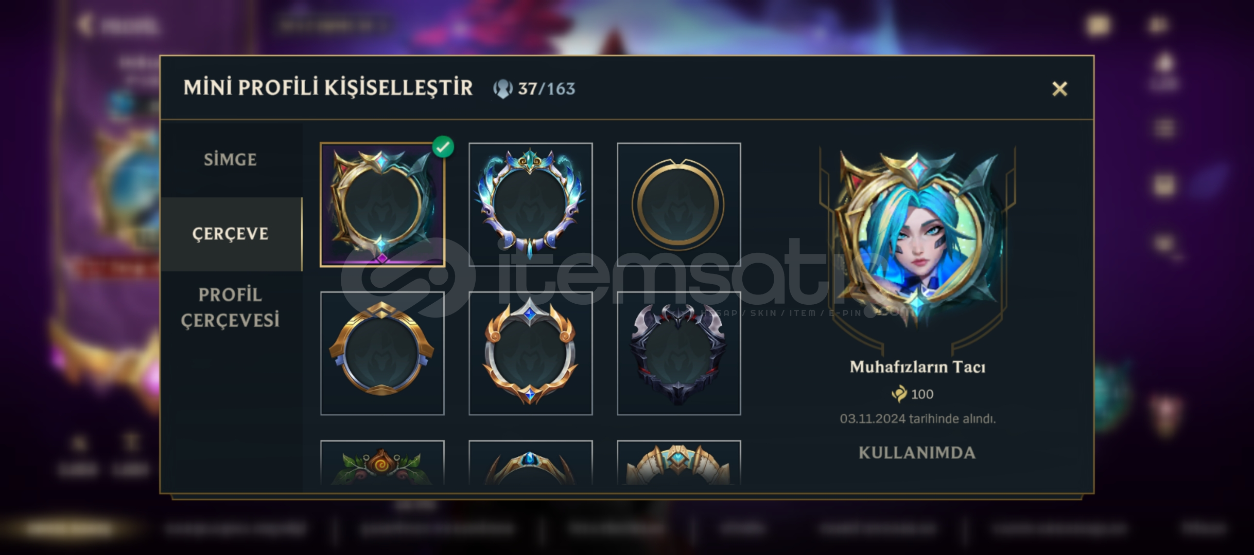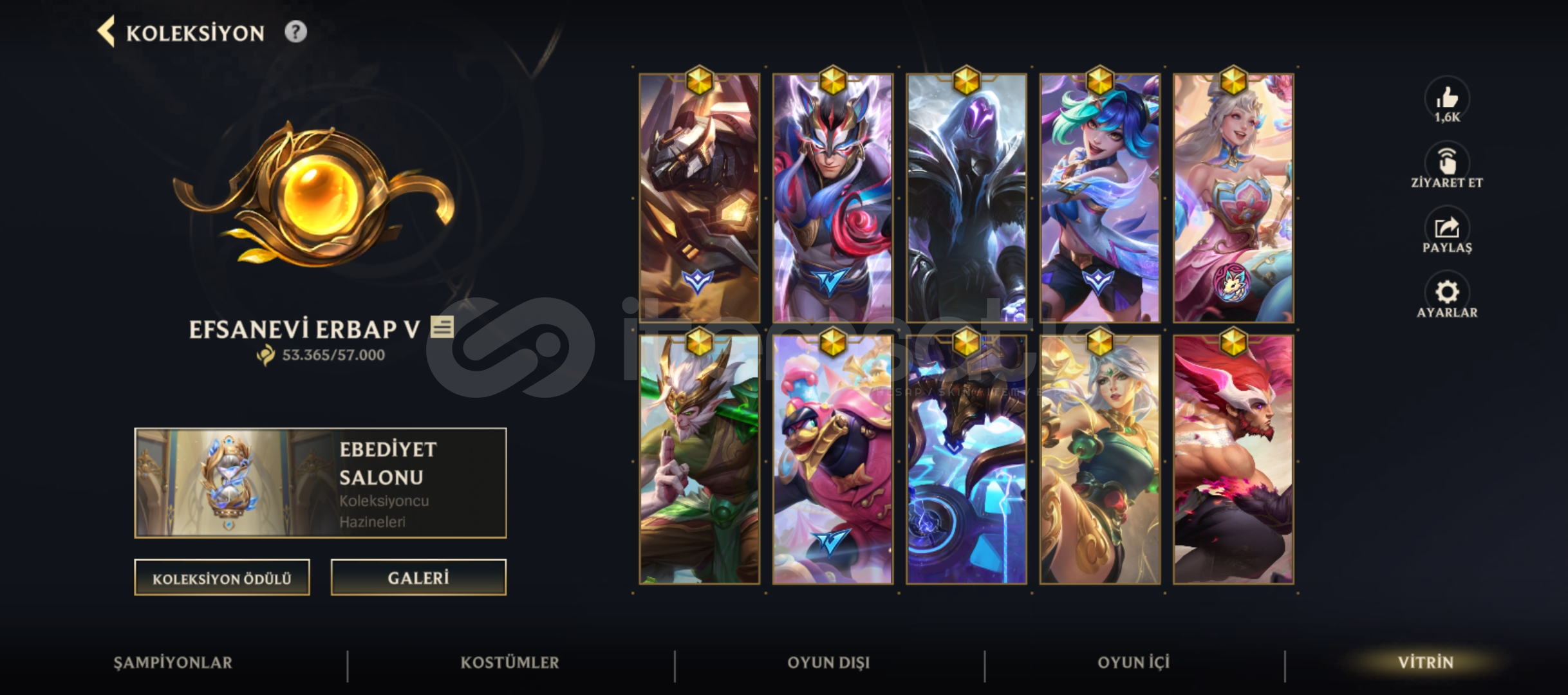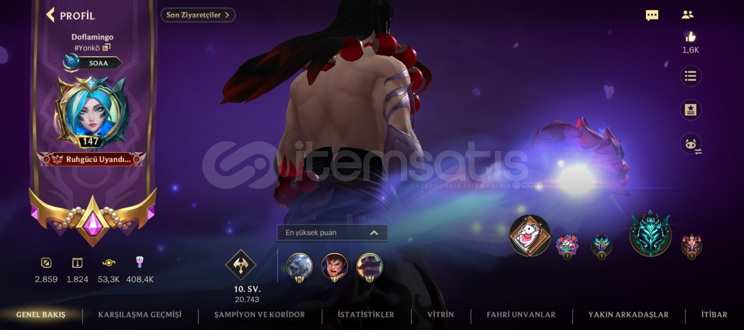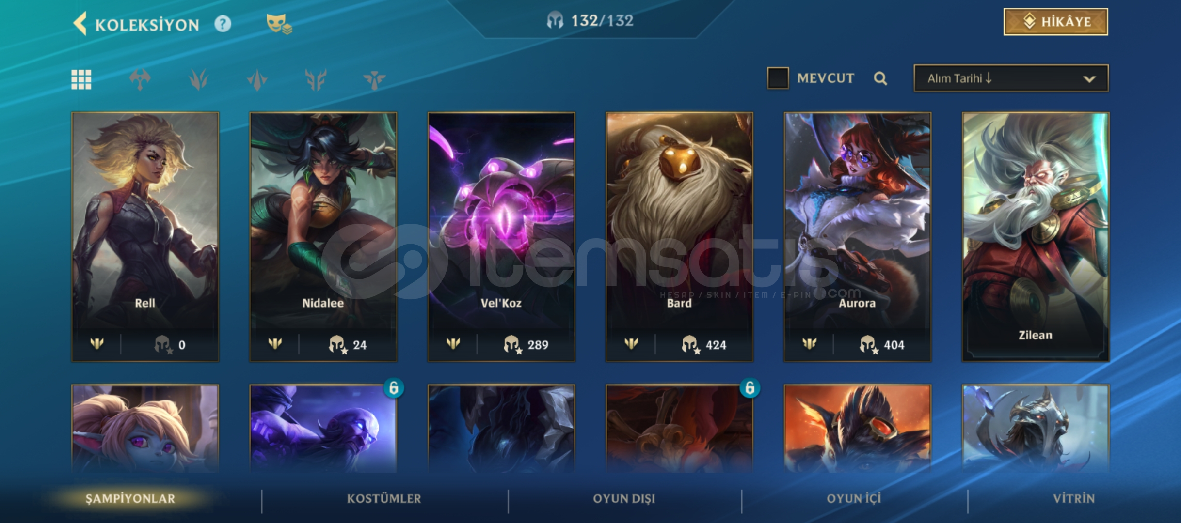 Hesap*147 seviye*307 kostüm*130 ifade*tüm şampiyonlar açık*birçok çerçeve ve simge açık