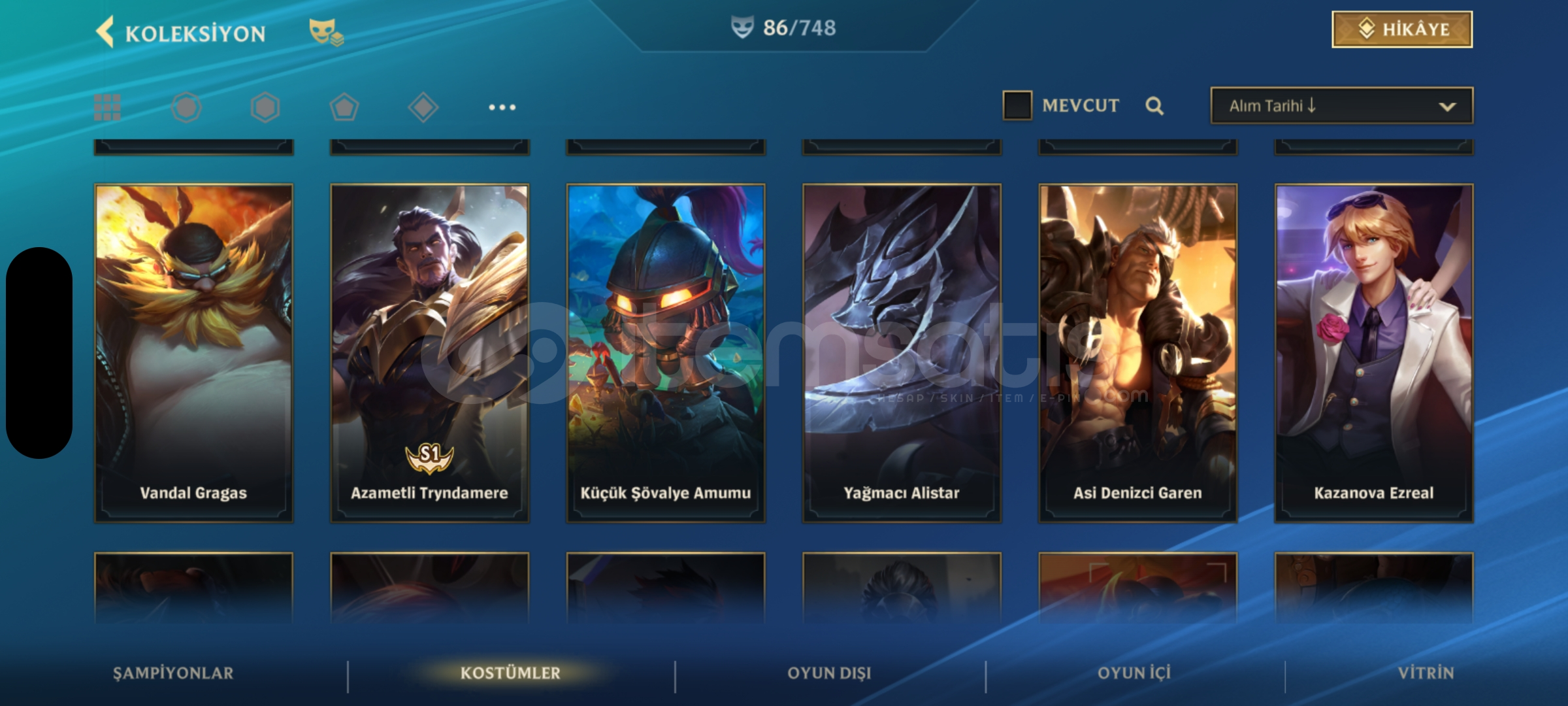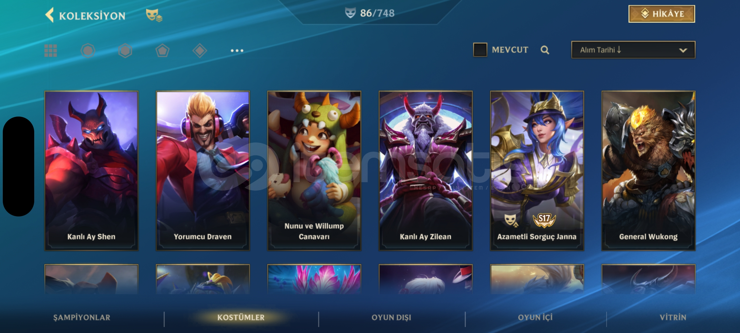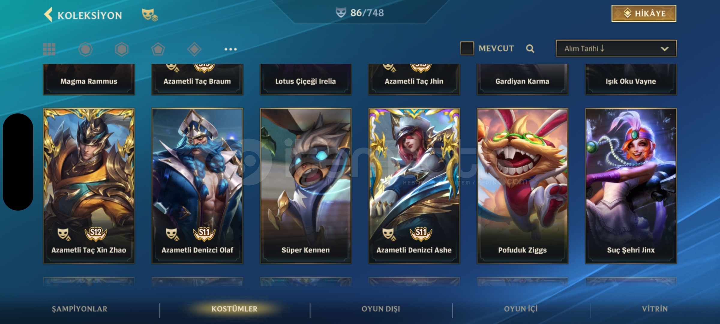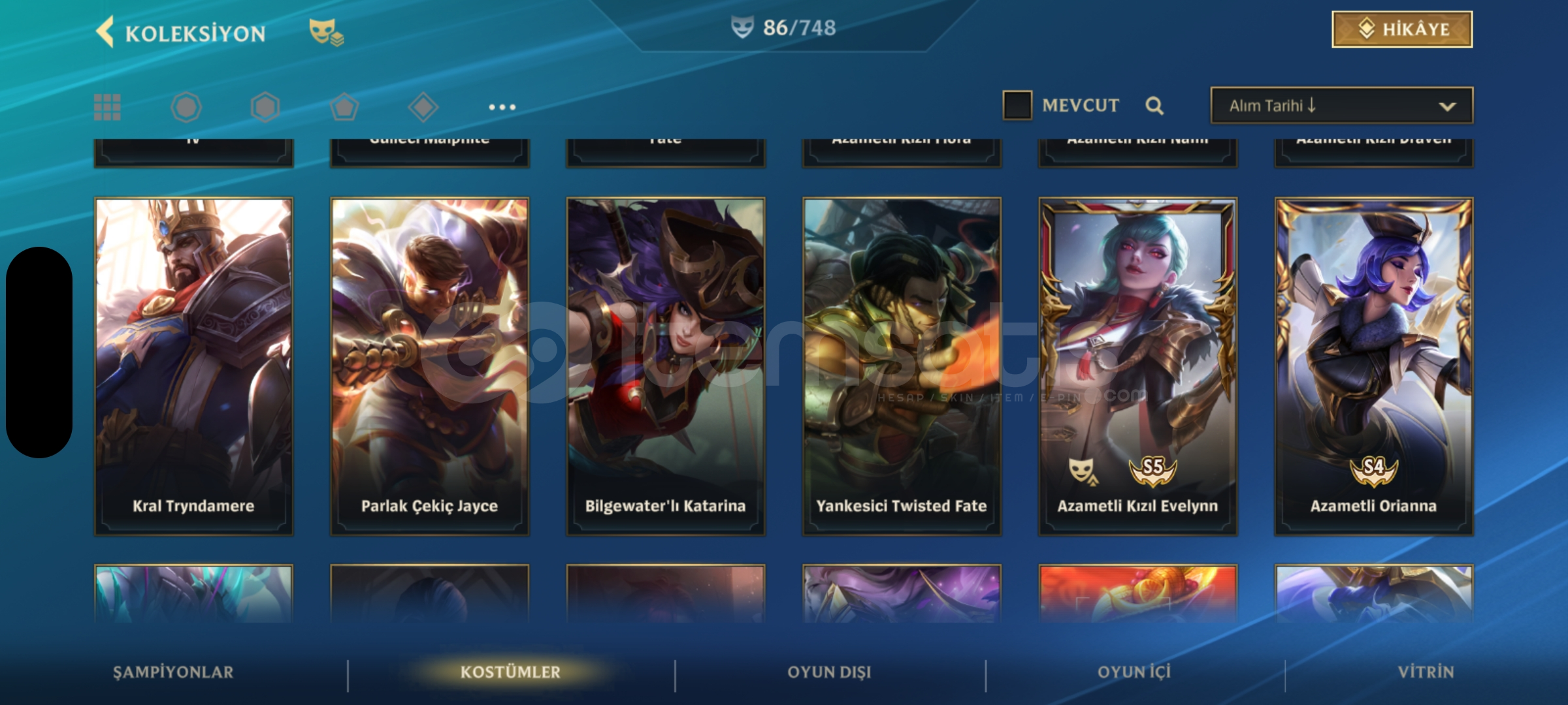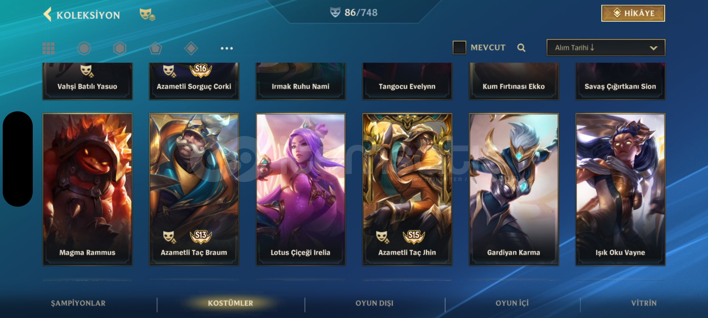 Wild Rift 130 şampiyonun hepsi açık üstüne 23k öz var 86 kostüm 6 senelik hesap kapalı betadan beri açık elmas 2 rank mail değişir