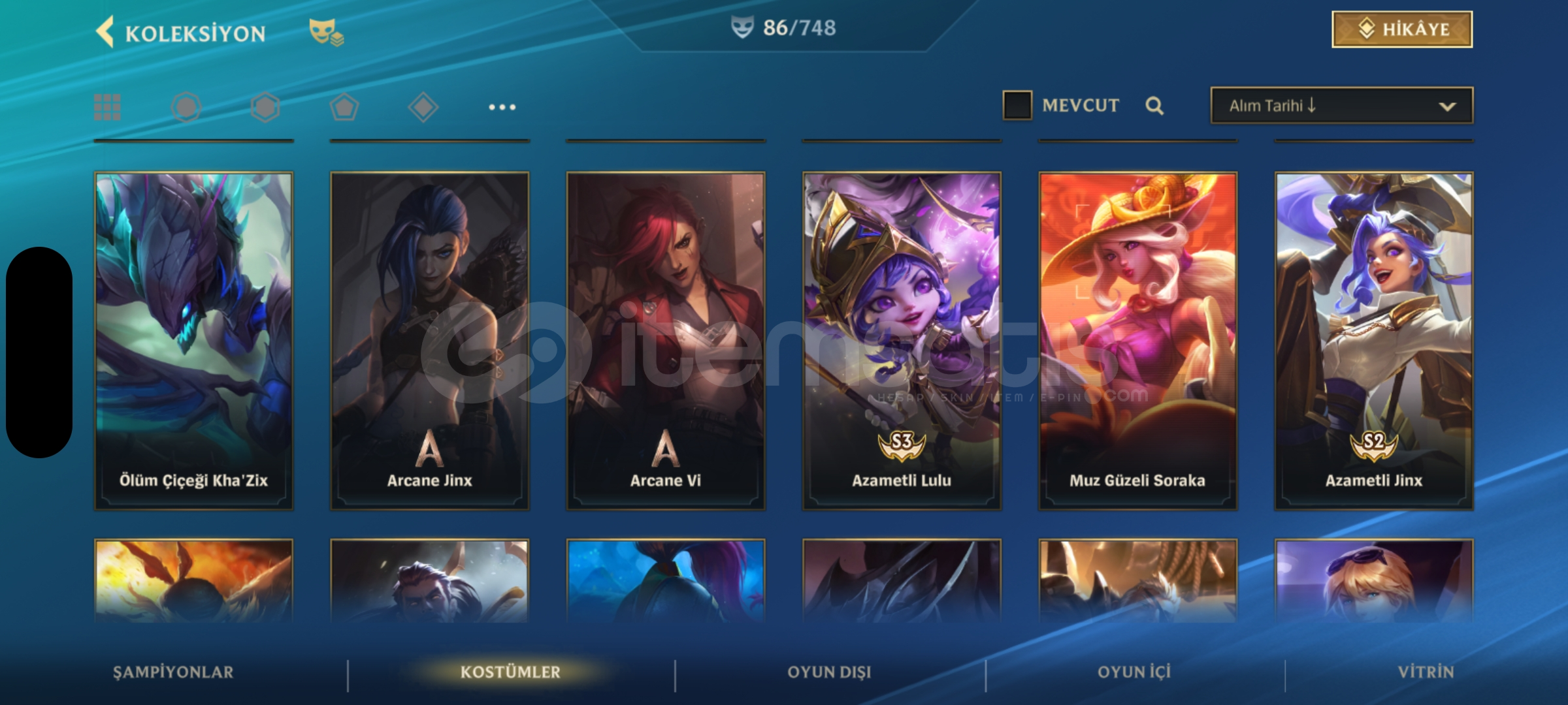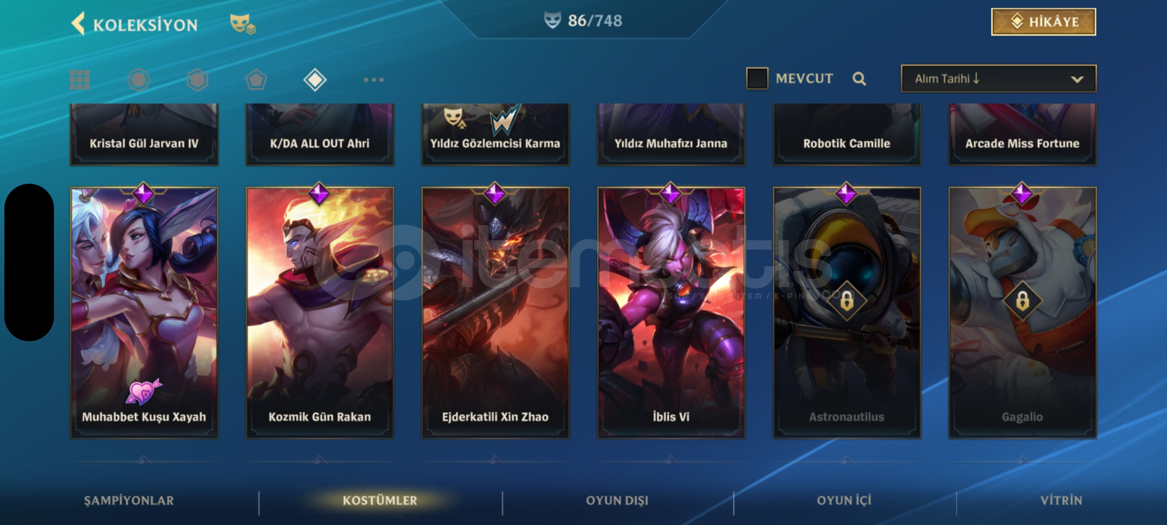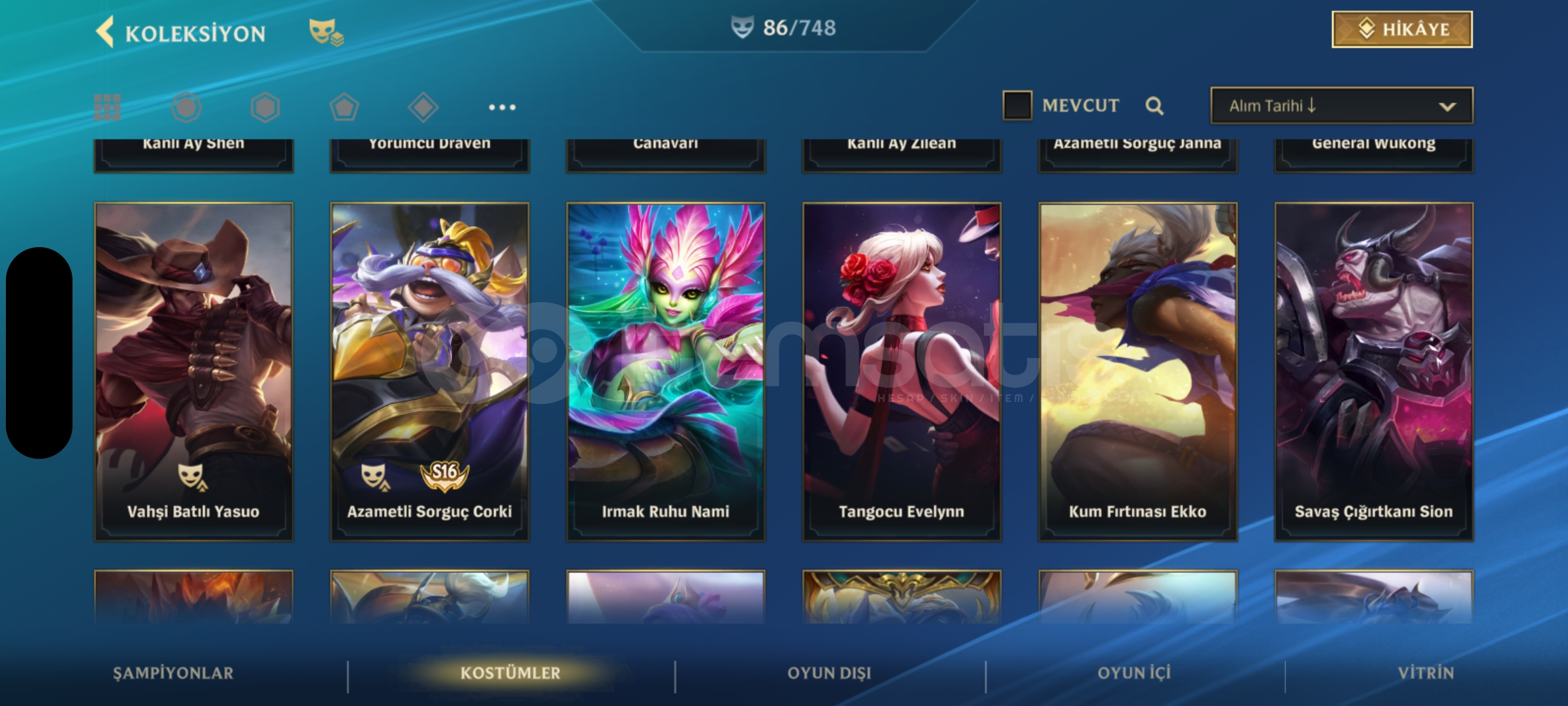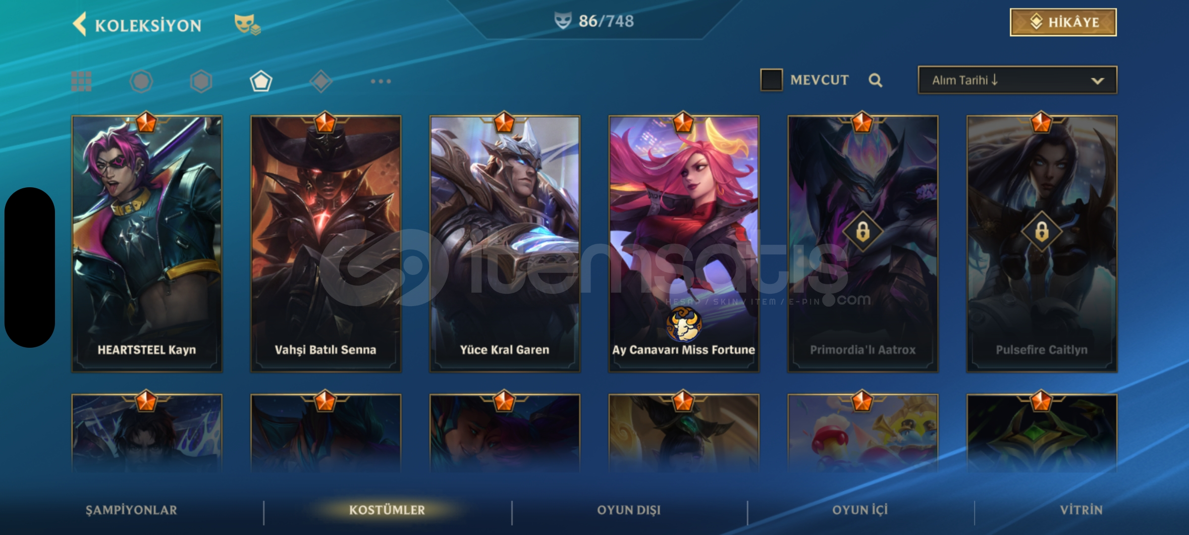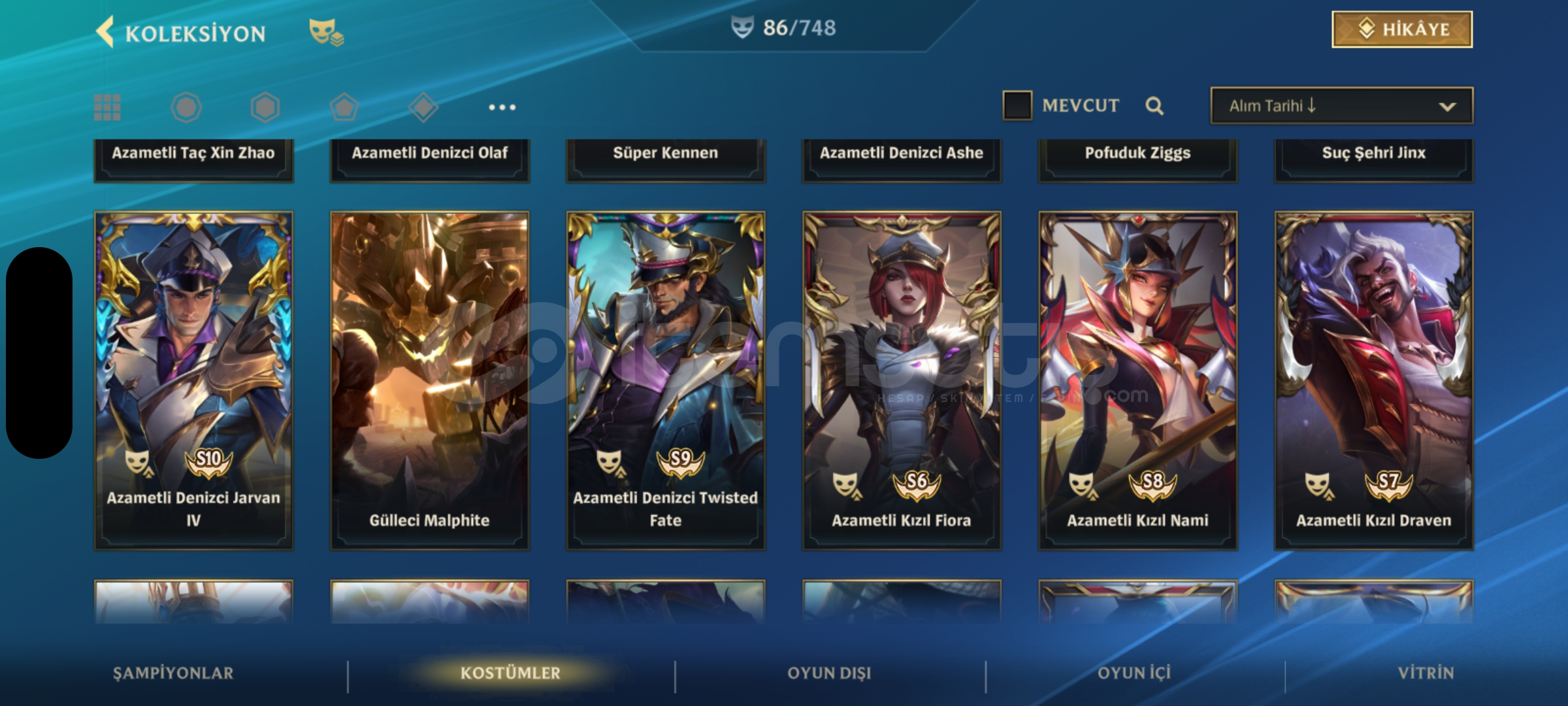 Wild Rift 130 şampiyonun hepsi açık üstüne 23k öz var 86 kostüm 6 senelik hesap kapalı betadan beri açık elmas 2 rank mail değişir