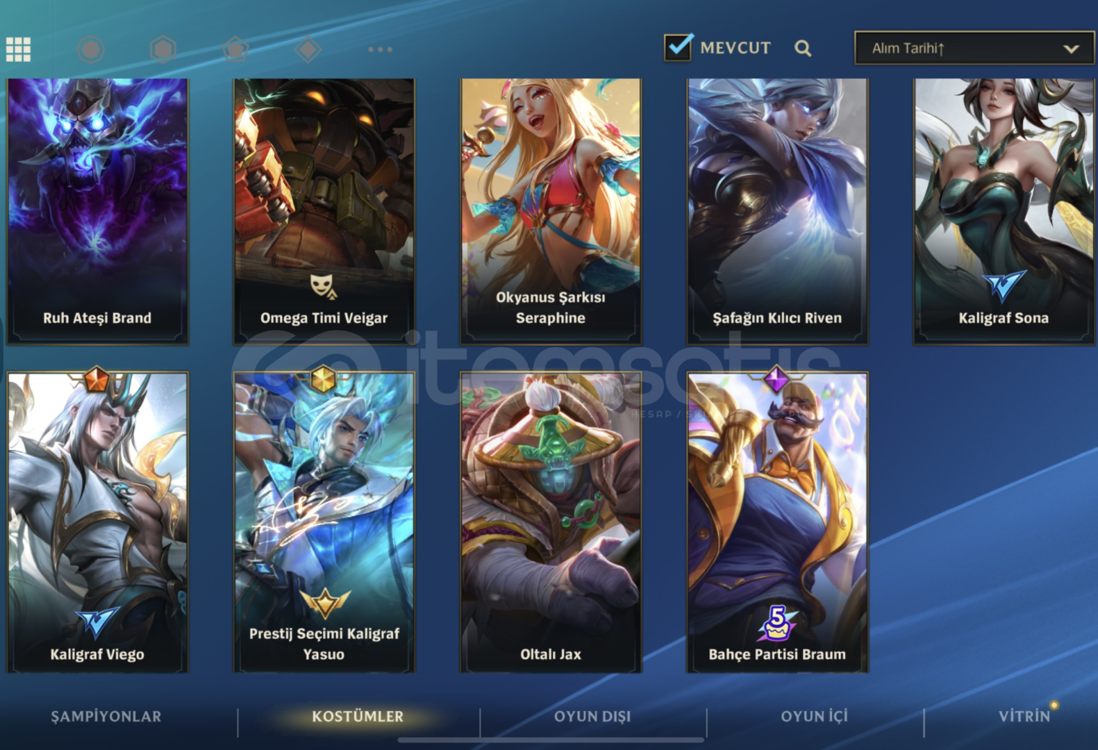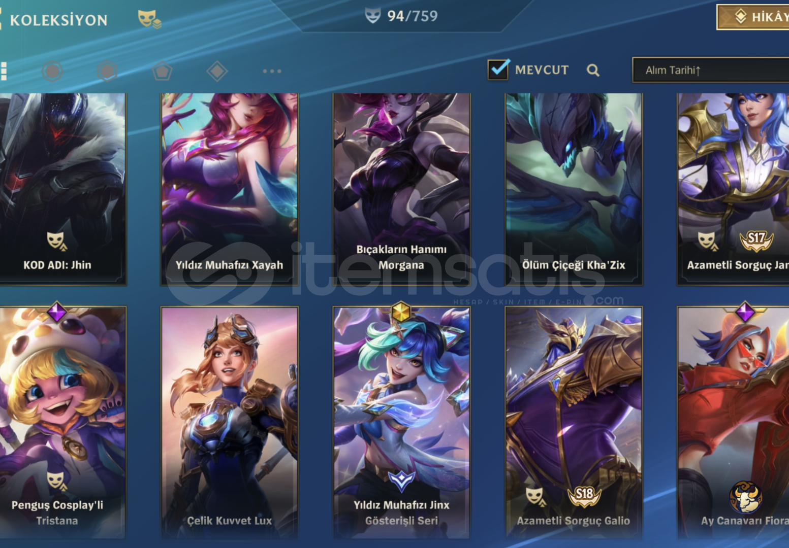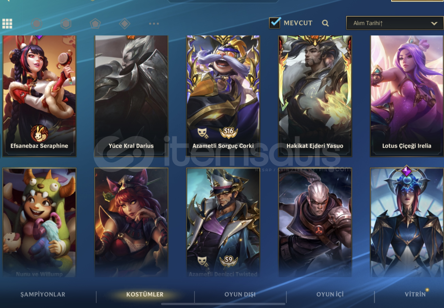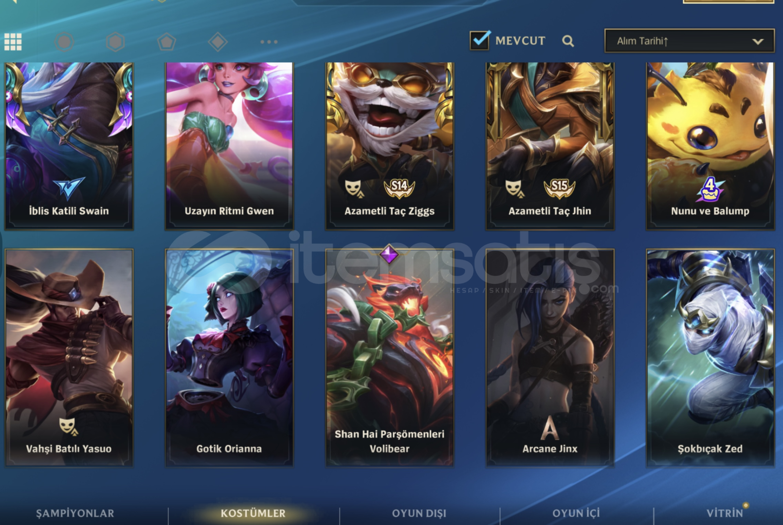 1 ebedi kostüm = iblis katili yone 4 ihtişamlı kostüm = prestij yasuo,prestij yone,ruhsömüren vayne,yz jinx.17 Efsanevi kostüm 41 destansı kostümHesap 153 seviye itibar puana biraz düşükAllana hayırlı olsun öğrenmek istediğiniz birşey olursa yazınız.