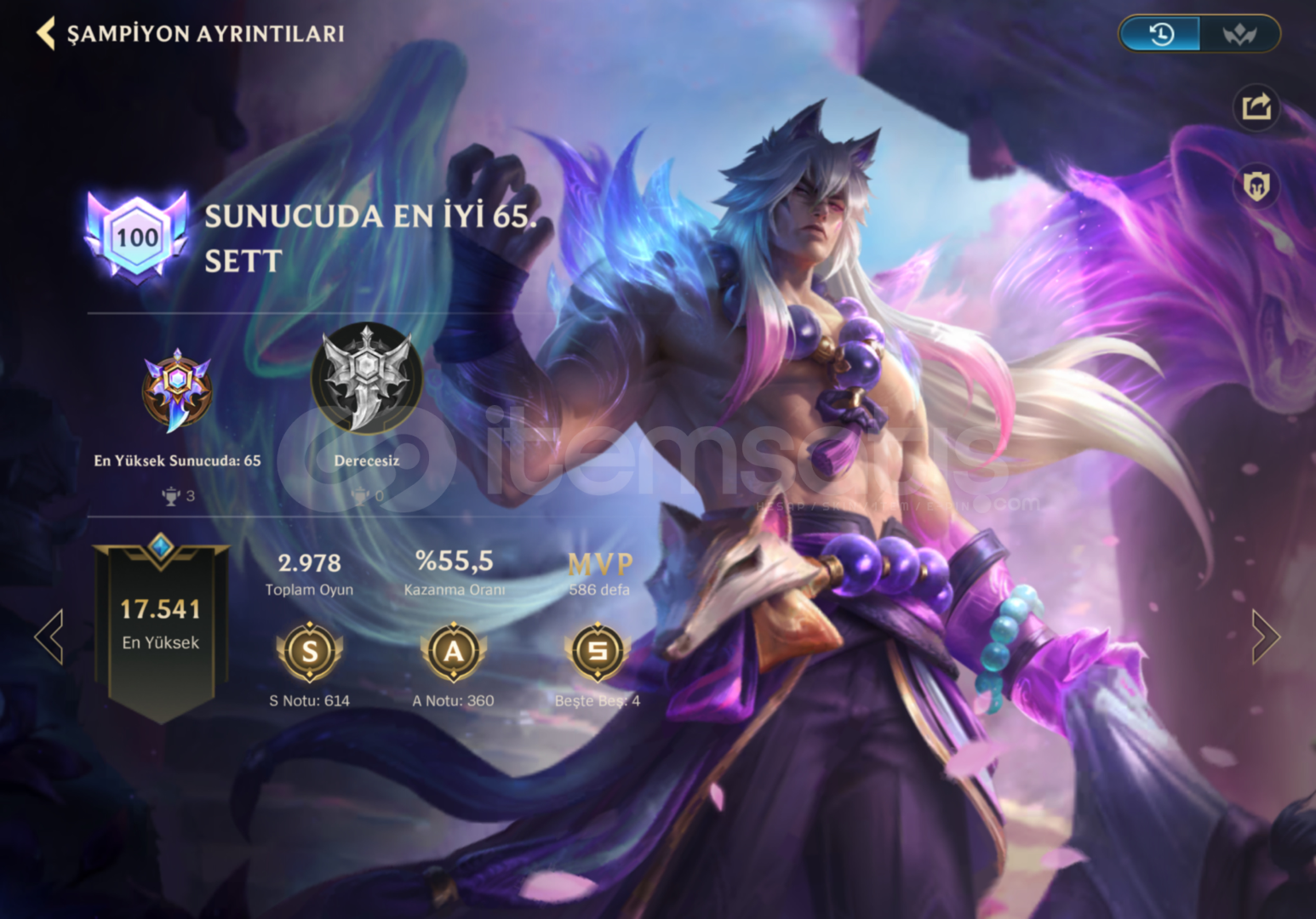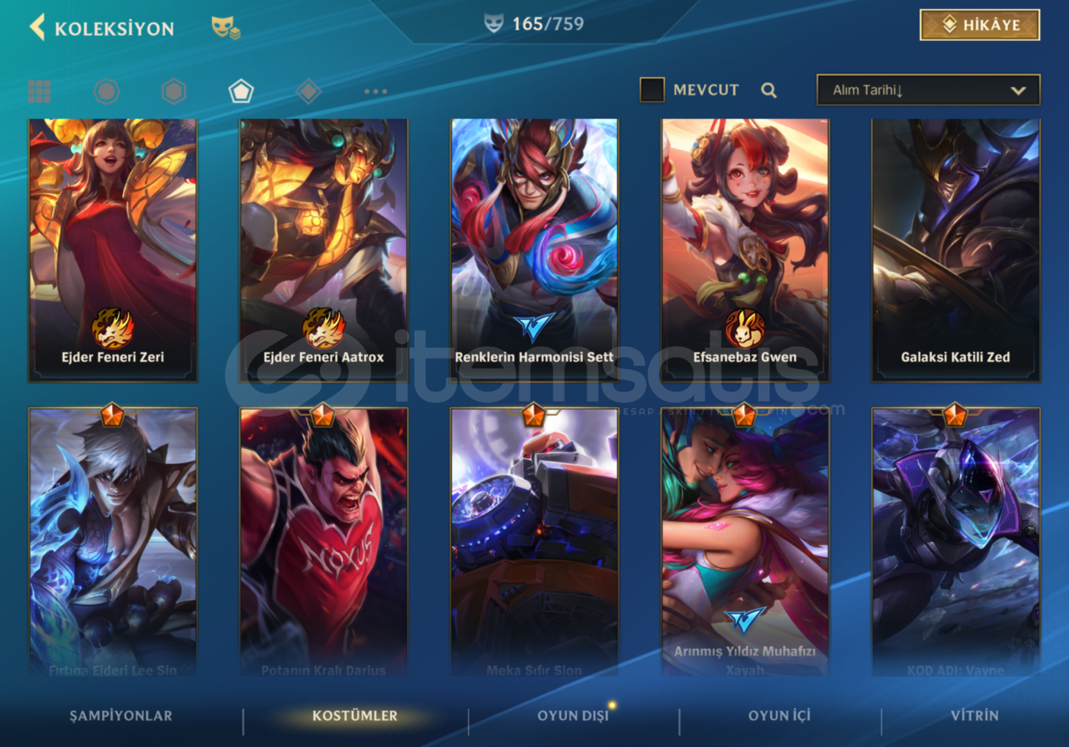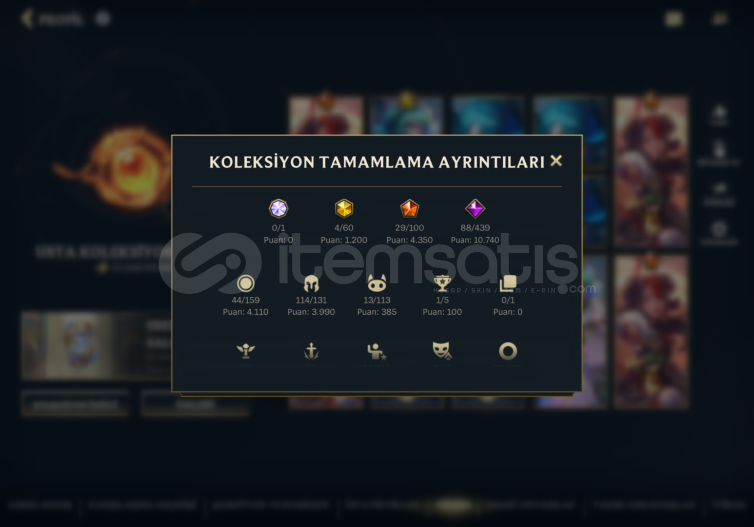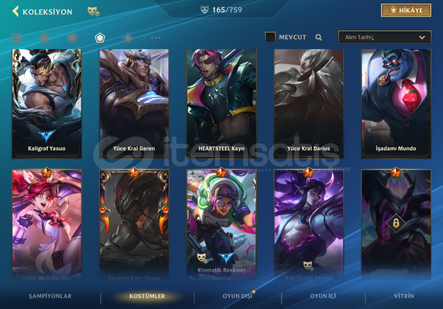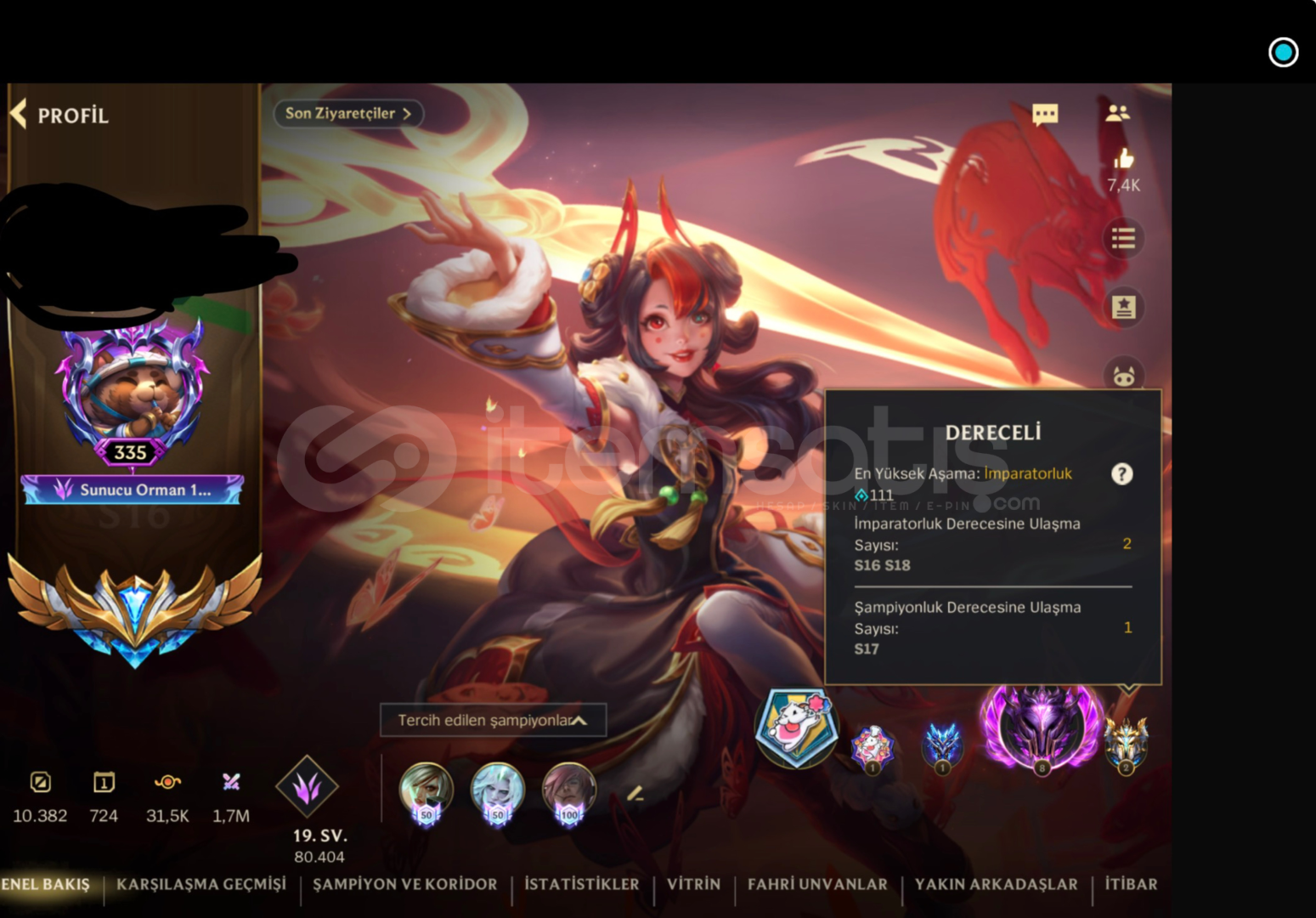 2 defa imp 1 defa Cha görmüş sunucu jungle sıralamasında hesap temiz kullanılmış160 skin4 prestij - 29 efsanevi - 88 nadir skin bulunmaktadırekstra olarak kapalı etkinlik skinleri mevcuttur hava elçisi atrox vlad vardıroyunu bıraktığım için satıyorumsett main 3 k sett maçı ve 245000 ustalık puanı vardırPAZARLIK YAPILIR!