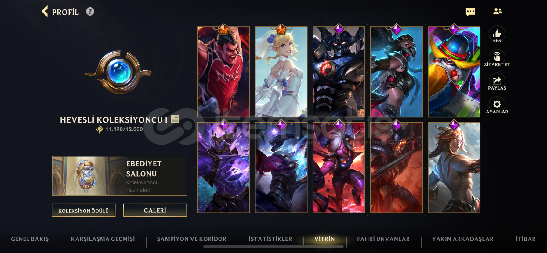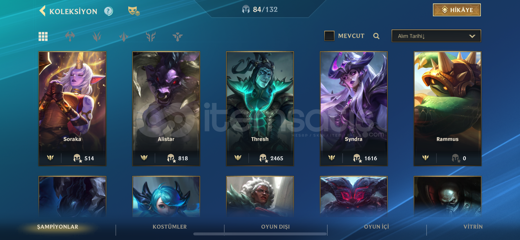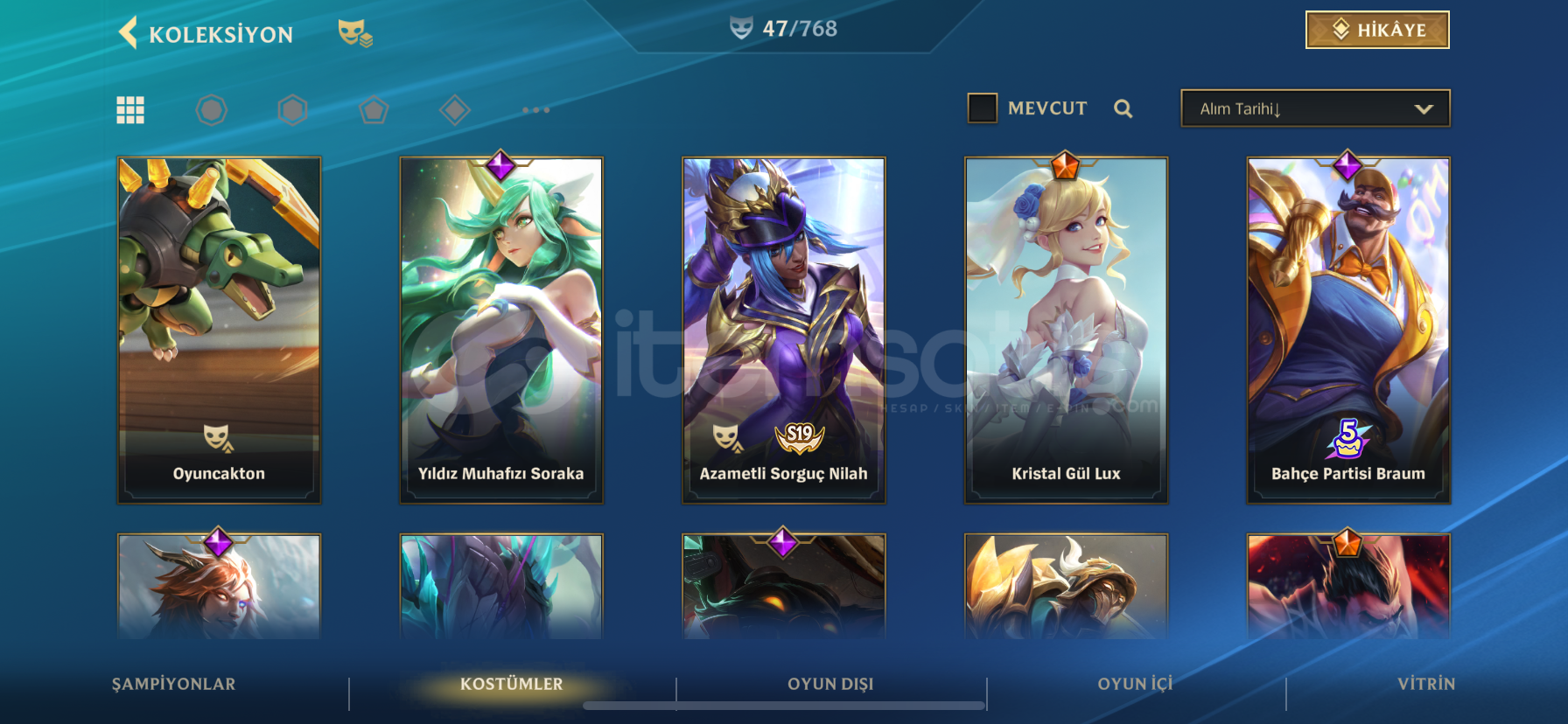Wild Rift Koleksiyon Hesabı Satılık! Öne Çıkan Kostümler:• Kristal Gül Lux (koleksiyonluk, nadir)• Azametli Taç Jhin, Ziggs, Braum, Lulu• Sonsuz Karanlık Varus & Jarvan IV• Meka Aatrox, Ejder Katili Xin Zhao• Azametli Kızıl Fiora & Evelyn• Azametli Nilah & Galio Hesap Bilgileri:• 131 toplam şampiyon / 82 açık• 90.000 mavi öz• Ustalık l rank• 13 d...