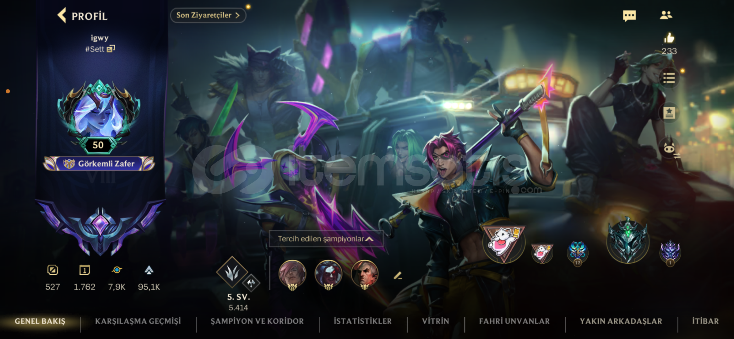 WİLD RİFT SETT MAİN KELEPİR HESAP 34 kostüm 1 destansi