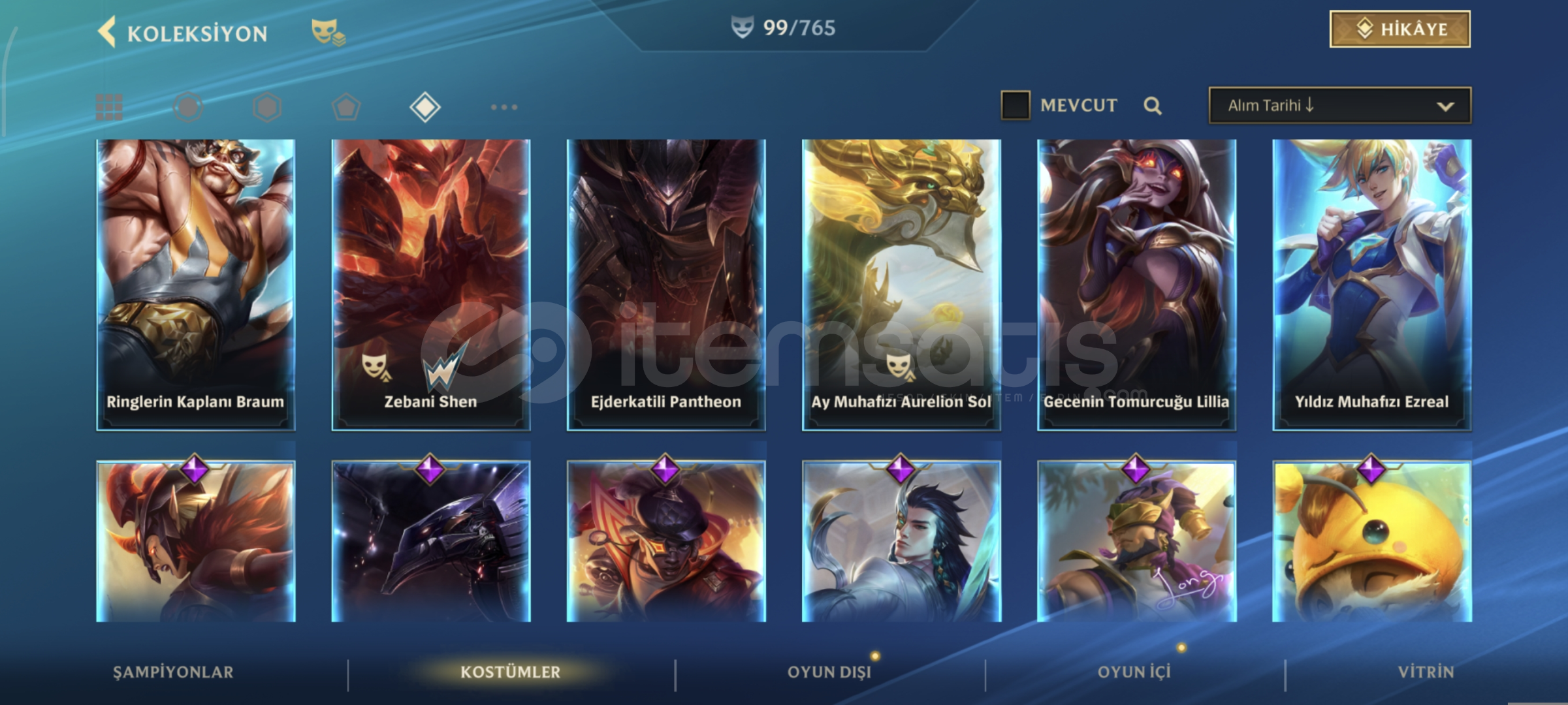99 skin GM görmüş hesap etkinlikten gelen sohbet baloncuğu var valo 7 animasyonlu skin 2 bıçak hepsi max level çoğunun full rengi açık lol 88 skin 2 ihtişamlı 1 ebedi 13 efsanevi