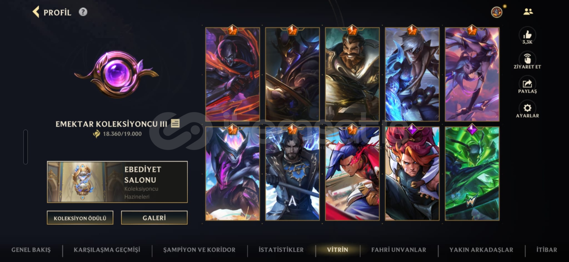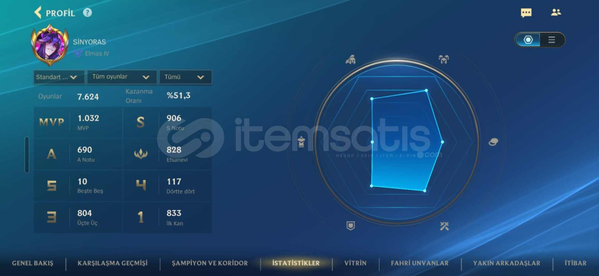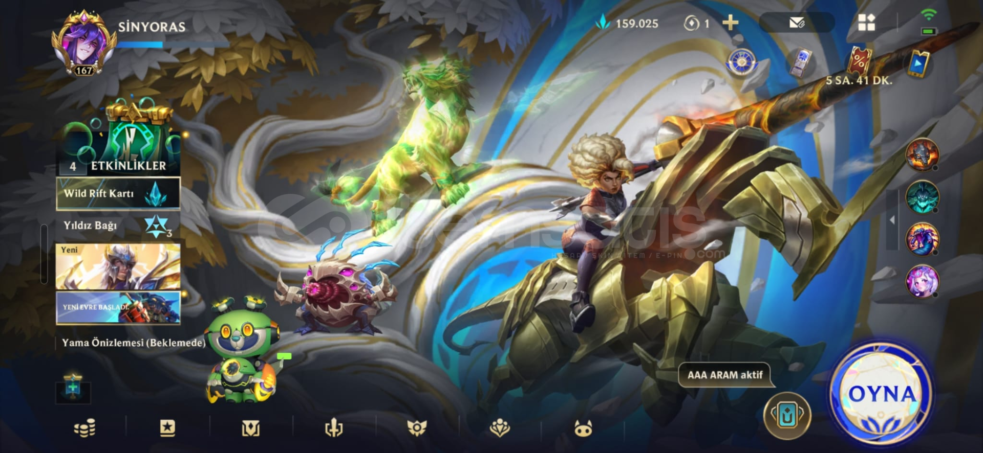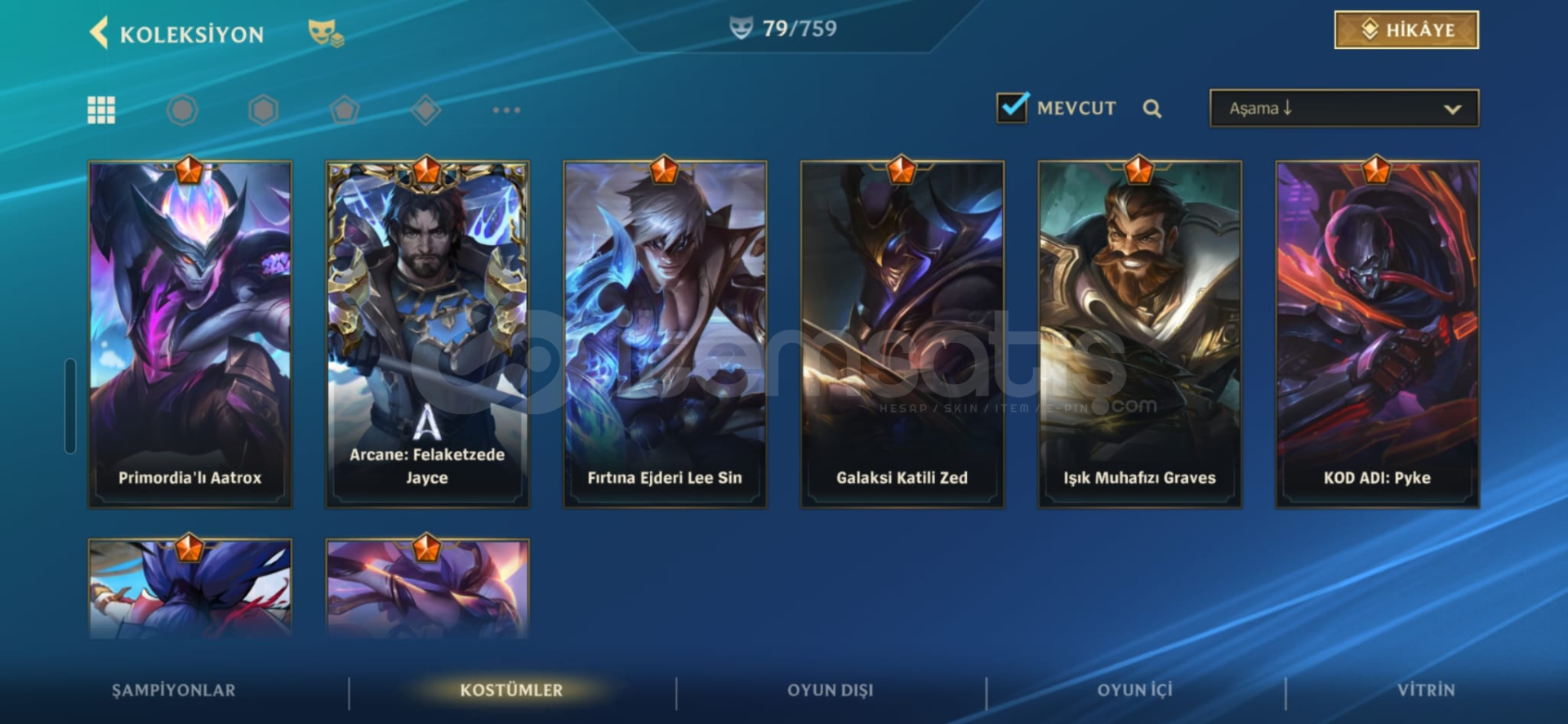 📈 Hesap Bilgileri:Seviye: 167Lig: 18. Sezon Şampiyonluk Ligi (şu anda Elmas)Şampiyon Sayısı: 123 (kalanlar isteğe göre kolayca alınabilir)Kostüm Sayısı: 798 Adet Efsanevi KostümMavi Öz: 155.000+Hesap aktif olarak oynanmış, tüm detayları özenle geliştirilmiştir.🔥 Ek Bilgiler:Hesap, düzenli oynanmış ve iyi durumdadır.Şampiyonluk ligine çıkmı&...