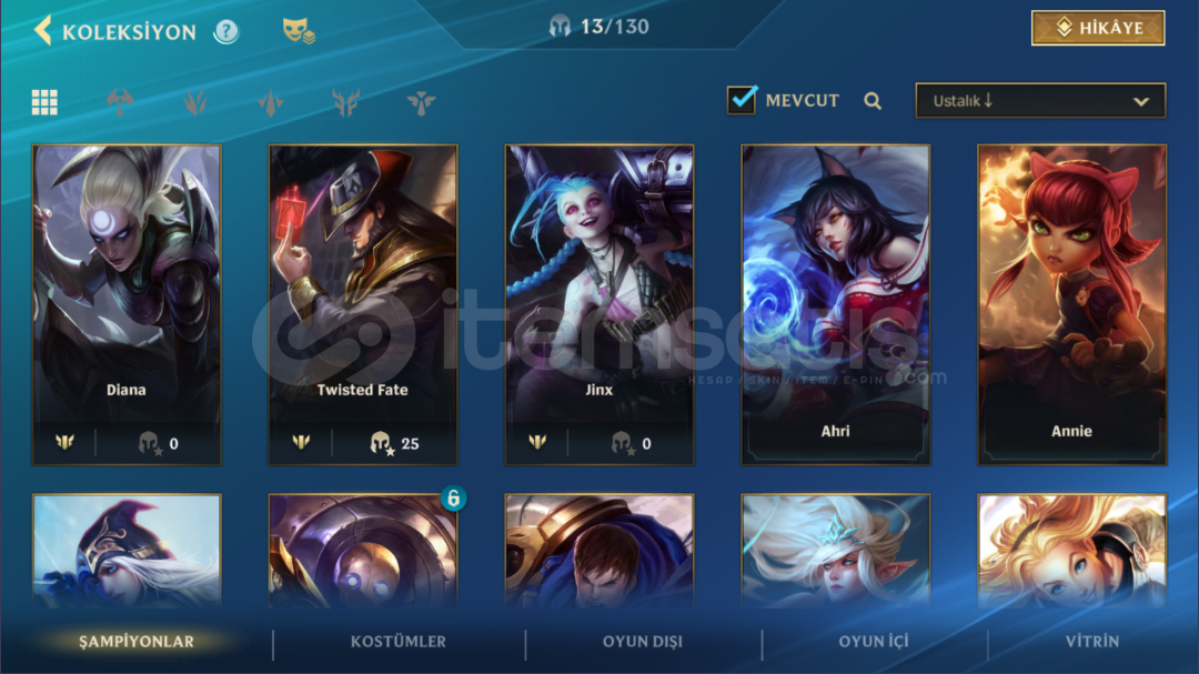 13 levelDemir1300 Poro Enerjisi1x şampiyon sandığı38k mavi öz6 kostüm 13 ŞampiyonEposta Şifre Değiştirebilirsiniz