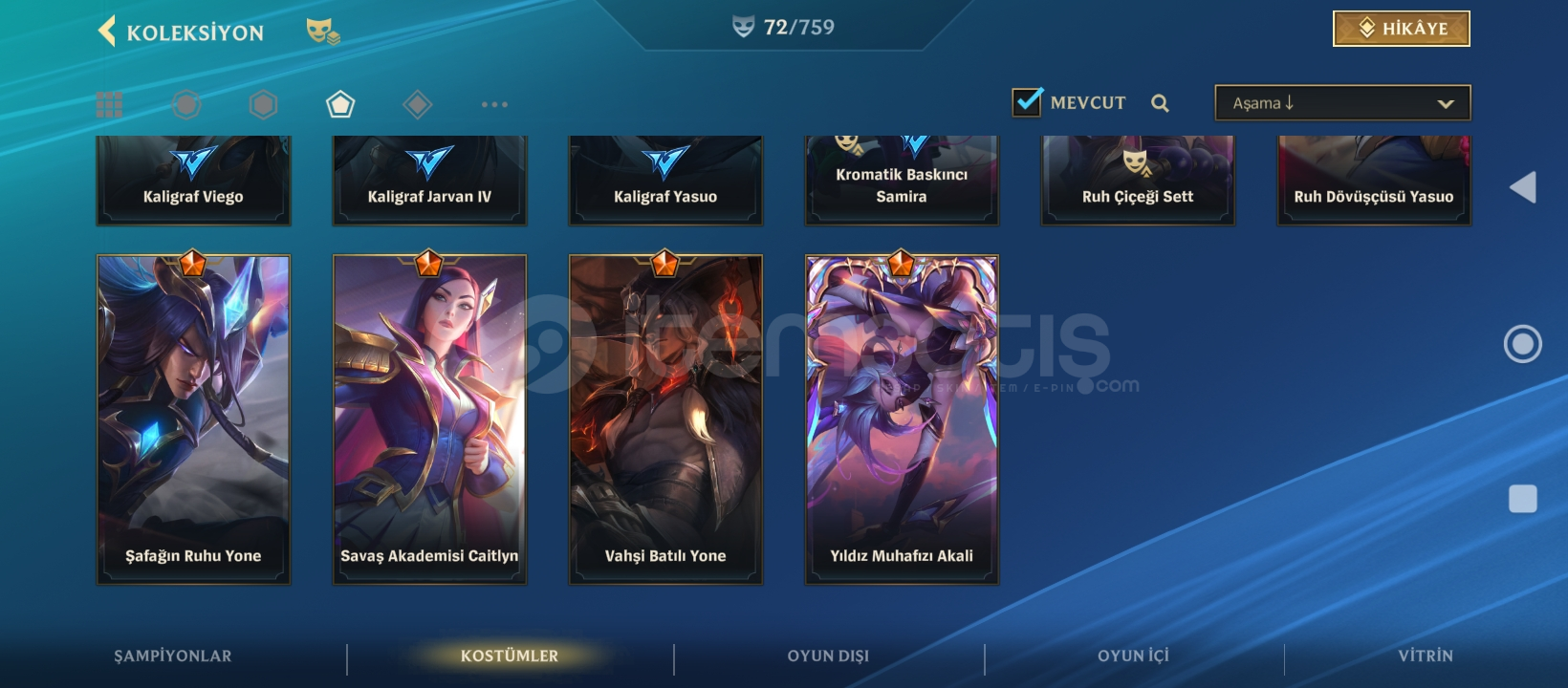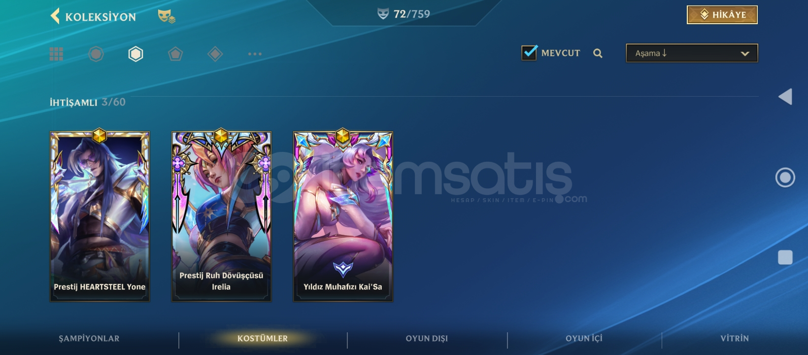 Yone main hesap ihtiyacım dan dolayı satılık fiyat konusunda kararsız kaldığım için whatsapp yazarsınız sevinirim