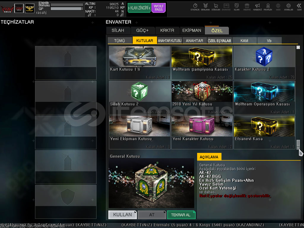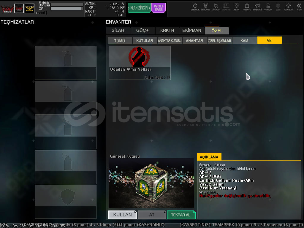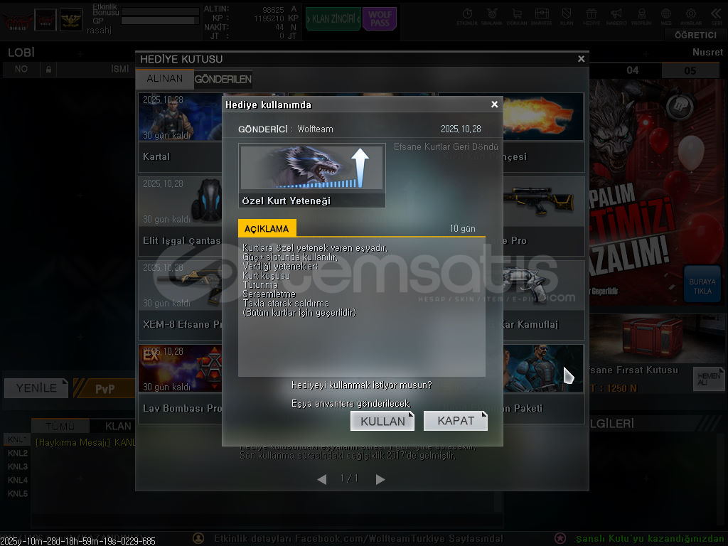 Satın al butonuna tıkladığınızda Kullanıcı Adı:ŞifreOyun İsmi, (varsa) Klan İsmi ve Rütbe olarak teslim edilmektedir.