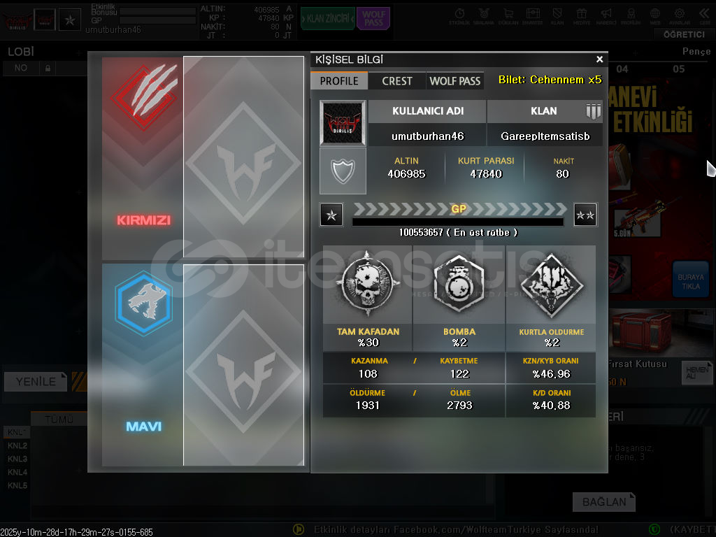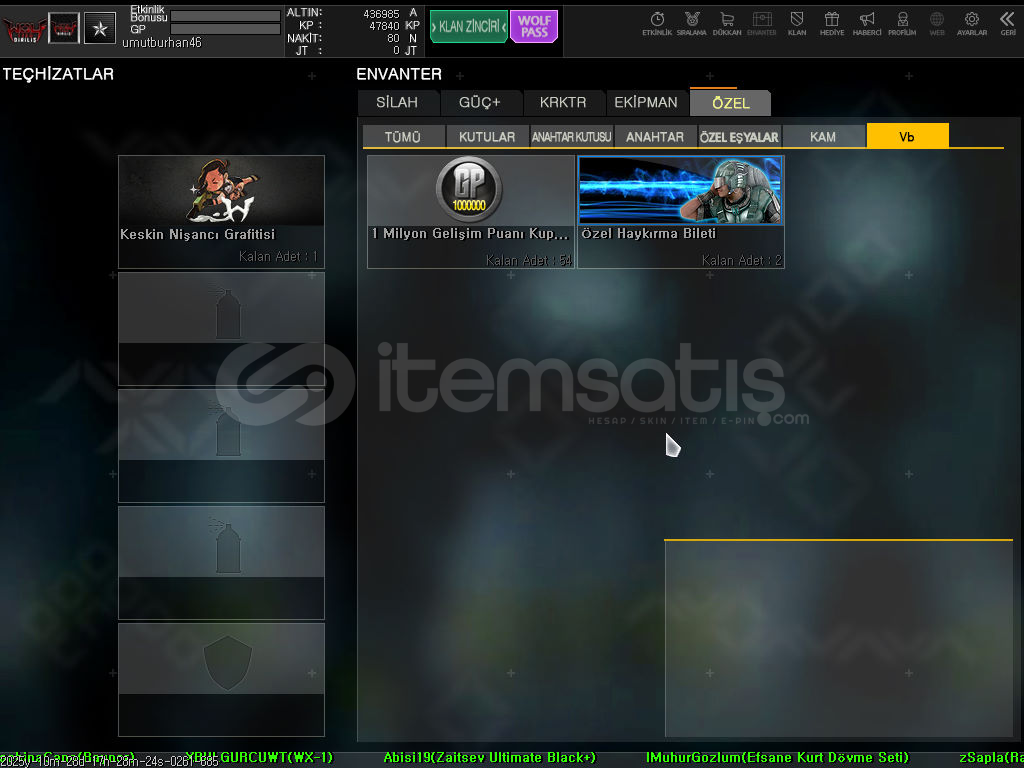 Ürünle Alakalı Detaylar100 Milyon GP'de406k Altın47k Kurt Parası Mevcut⭐Hesapların şifresi değişmektedir.Joygame hesabı açılırken e posta bölümü boş bırakılamadığı ve değiştirilemediği için garantisi yoktur. E-Postası kurulmamış çıkabilir.Hesabı beğenmedim, değişim y...
