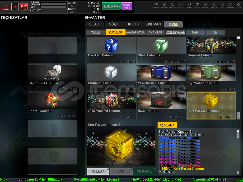 Envanterdeki itemler sizi uzun bi süre idare eder.