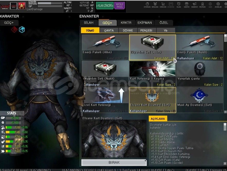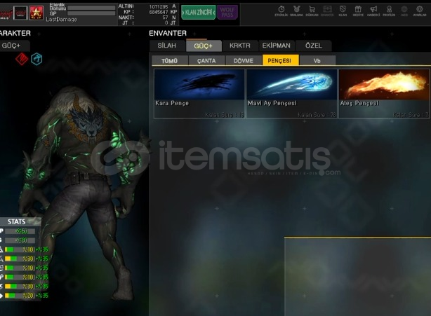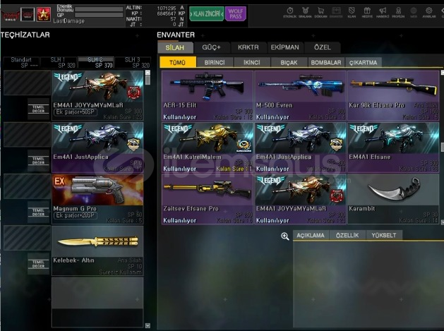 HESABIN TÜM SİLAH SLOTLARI AÇIKTIR GÜÇ SLOTLARININ ÇOĞU AÇIKTIR