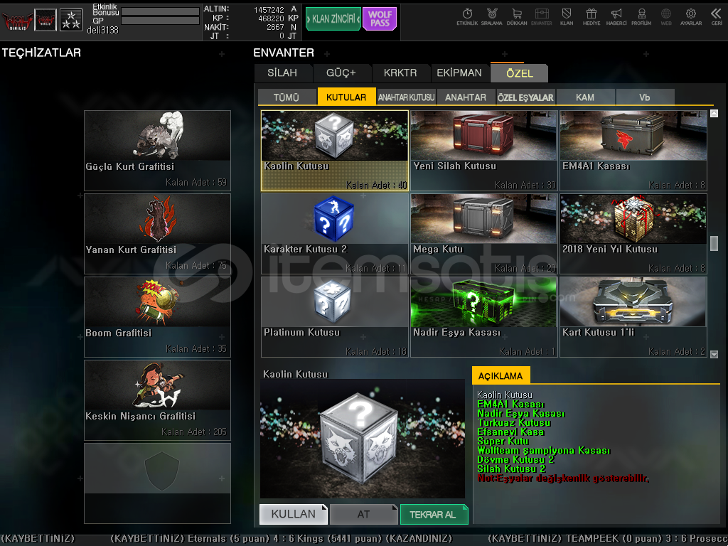 Hesapta nakitte vardır. Nakit ile mega kutu kaolin kutusu vs alabilirsiniz.Bolca da kp kasası vardır.