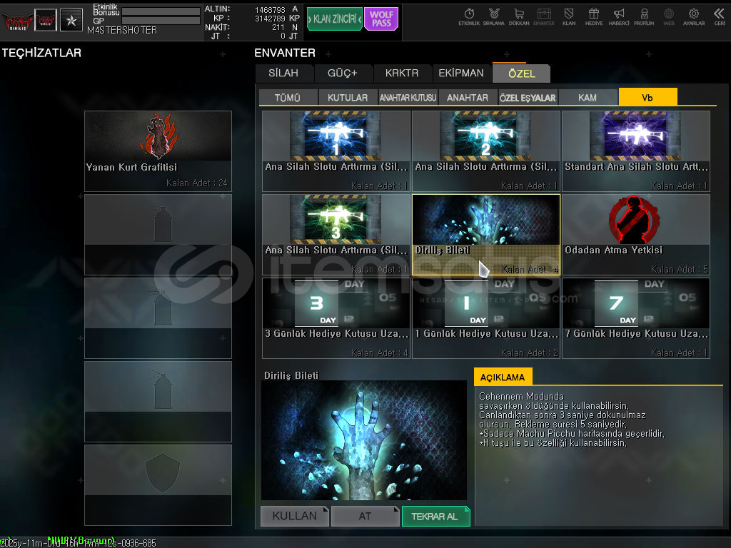 Satın al butonuna tıkladığınızda Kullanıcı Adı:ŞifreOyun İsmi, (varsa) Klan İsmi ve Rütbe olarak teslim edilmektedir.