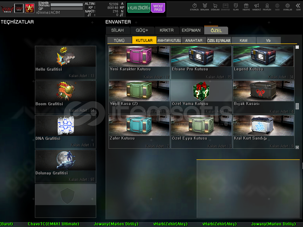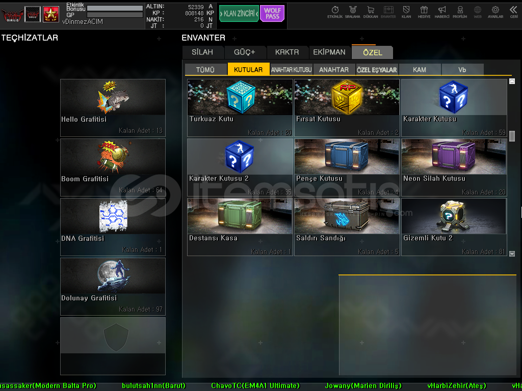 OG pençesi OG silahı OG dövmesi çıkarabileceğiniz kasalar mevcuttur.