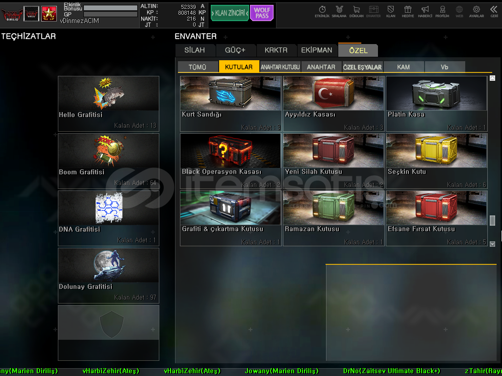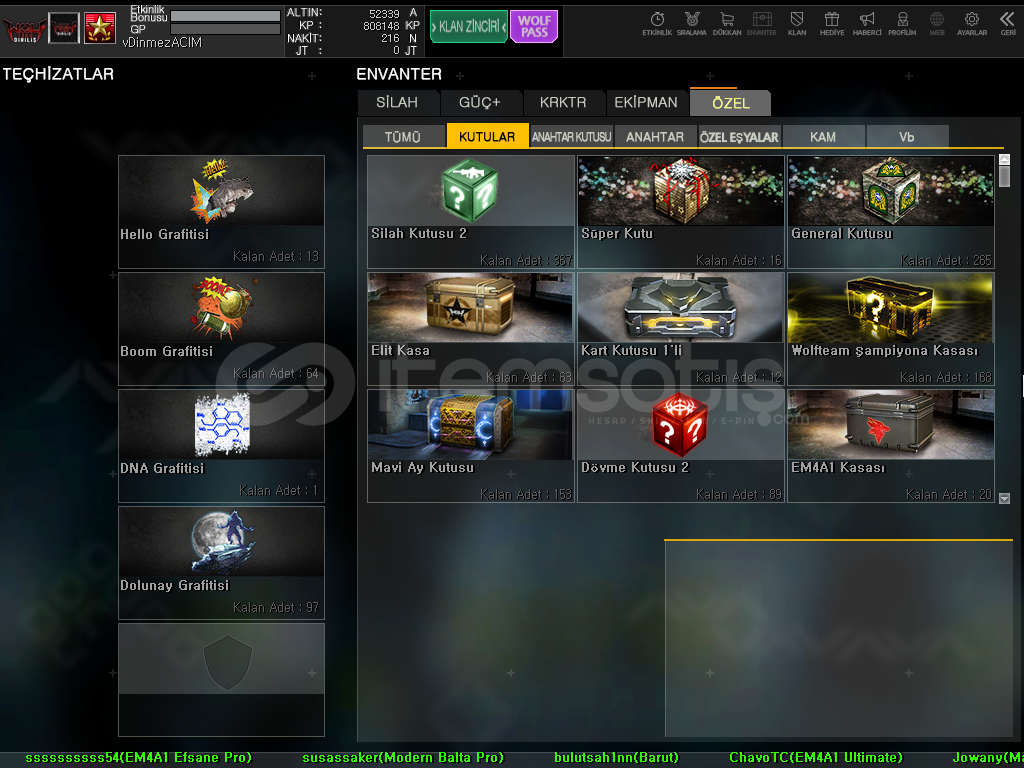 OTOMATİK TESLİMATTIR.MAİL YOKTUR. SATIN ALDIM OYNADIM SATIYORUM. İLK SAHİBİ DEĞİLİM. OG pençesi OG silahı OG dövmesi çıkarabileceğiniz kasalar mevcuttur.AK47 PERU çıkan işe yaramaz kasalar atılmıştır. Resimlerde gördüğünüz kasaların içeriği boş değildir.İlana koyma tarihi 26.09.2025