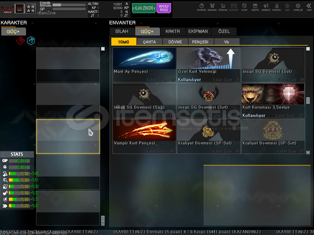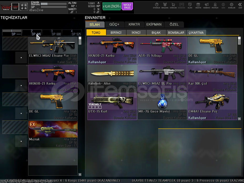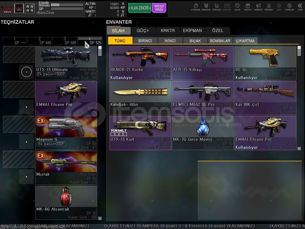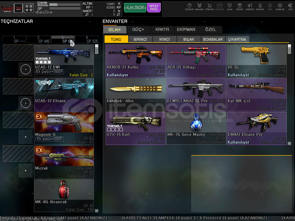 4 SİLAH 10 GÜÇ SLOTU VARDIR.MSNLİDİR.MAX 1 SAAT İÇERİSİNDE TESLİM.