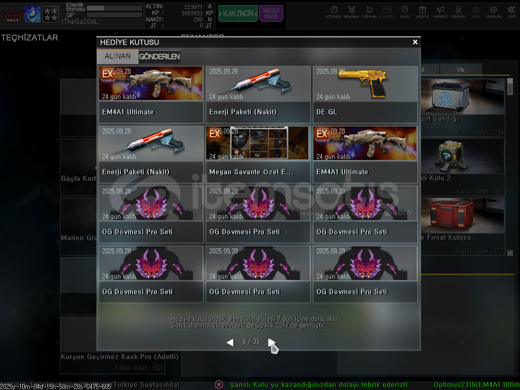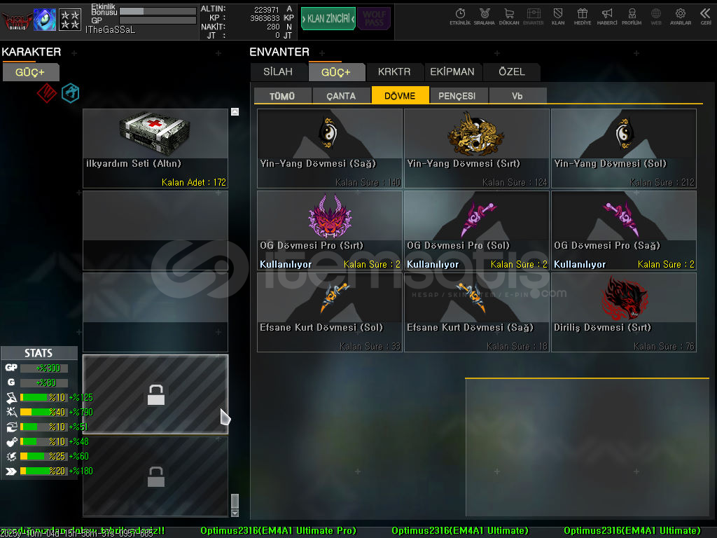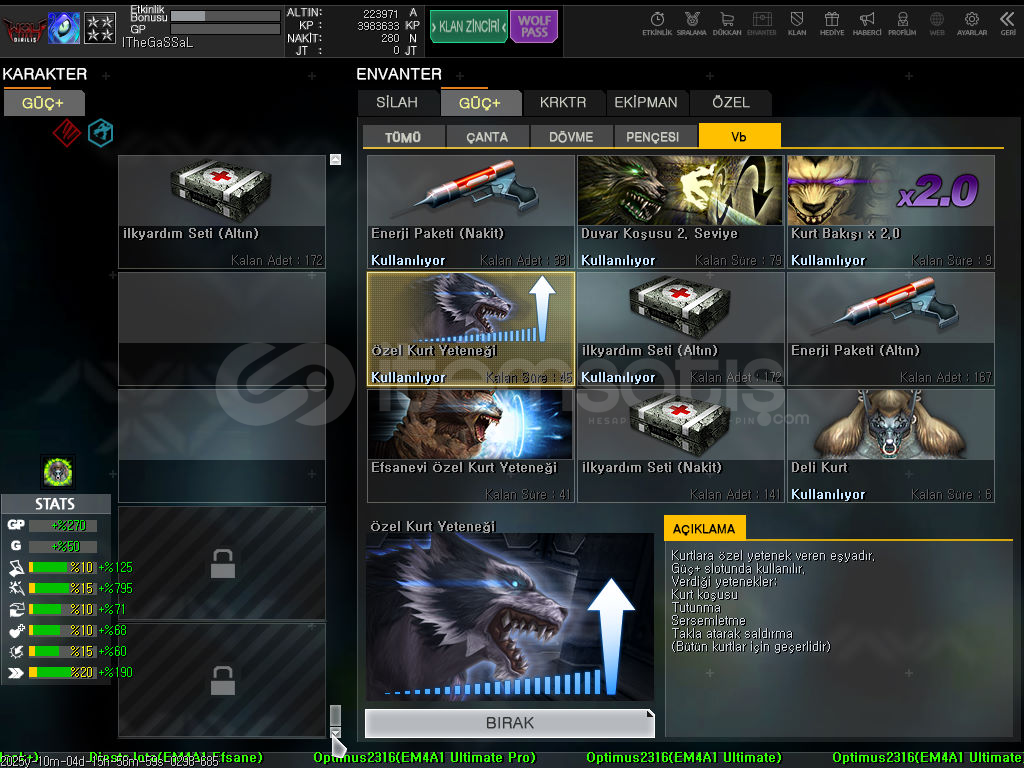 hesabın videosu : https://youtu.be/3Cvh5kkLBpwGüç Slotları 8 adet açık fullSilah slotları 4 Adet açık fullSilah Günleri 100 Üzerinerdeyse 20 güne og varhesap hotmailli üzerinize alabilirsiniz