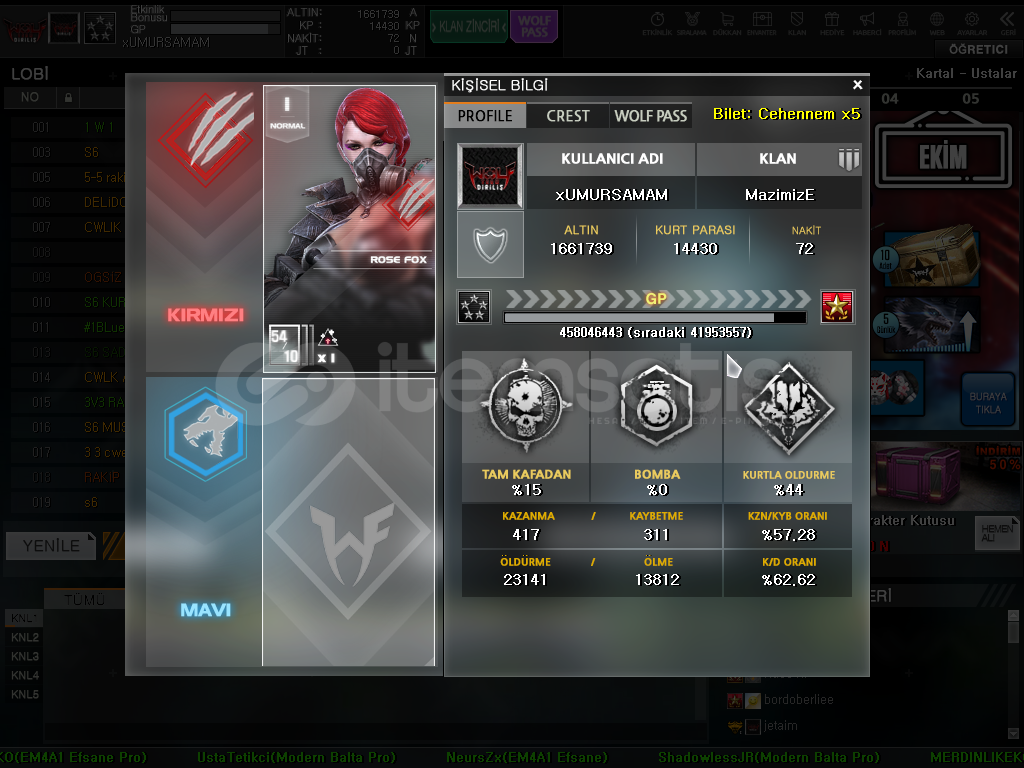 Hesap 5 Yıldız RütbesindedirSlotları Açık Oynanmadığı için içerisi boşturAz Miktarda Kutu vardır