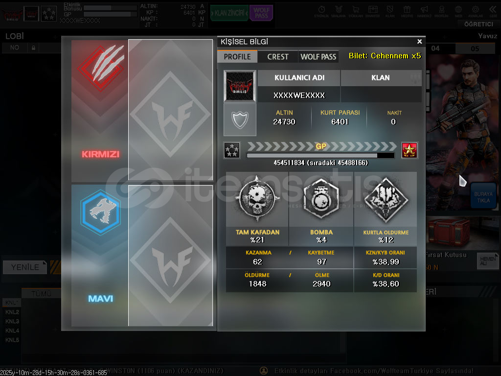 Satın al butonuna tıkladığınızda Kullanıcı Adı:ŞifreOyun İsmi, (varsa) Klan İsmi ve Rütbe olarak teslim edilmektedir.
