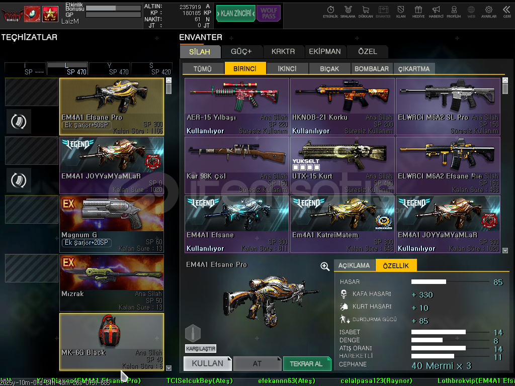 4 SILAH 4 SARJOR KART 4 MS GMAIL 1 K LEGENTLI