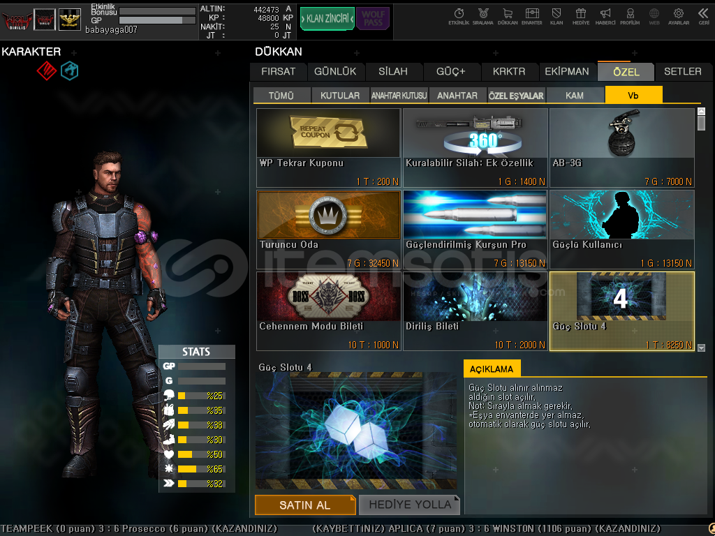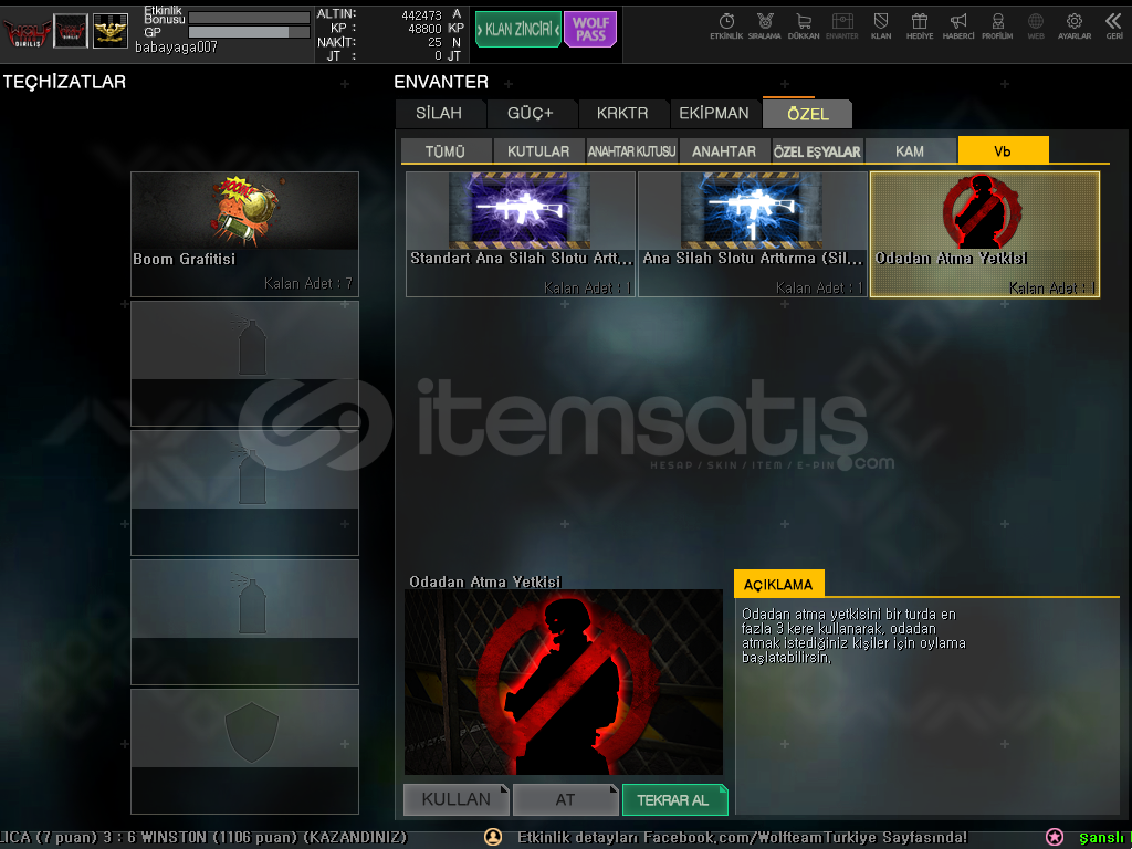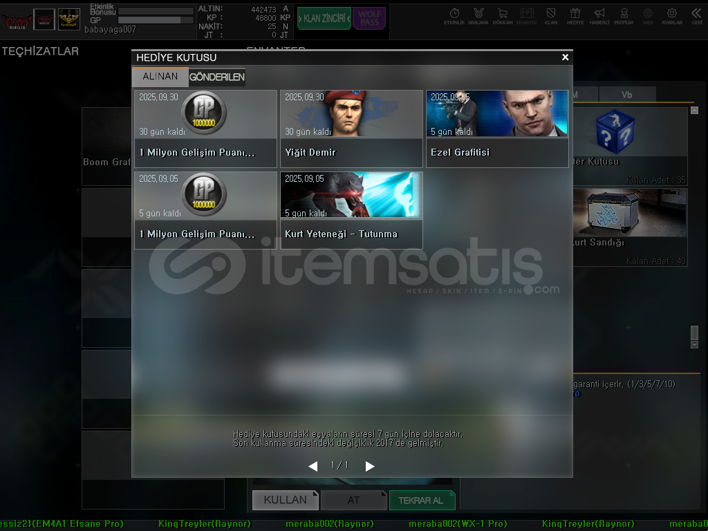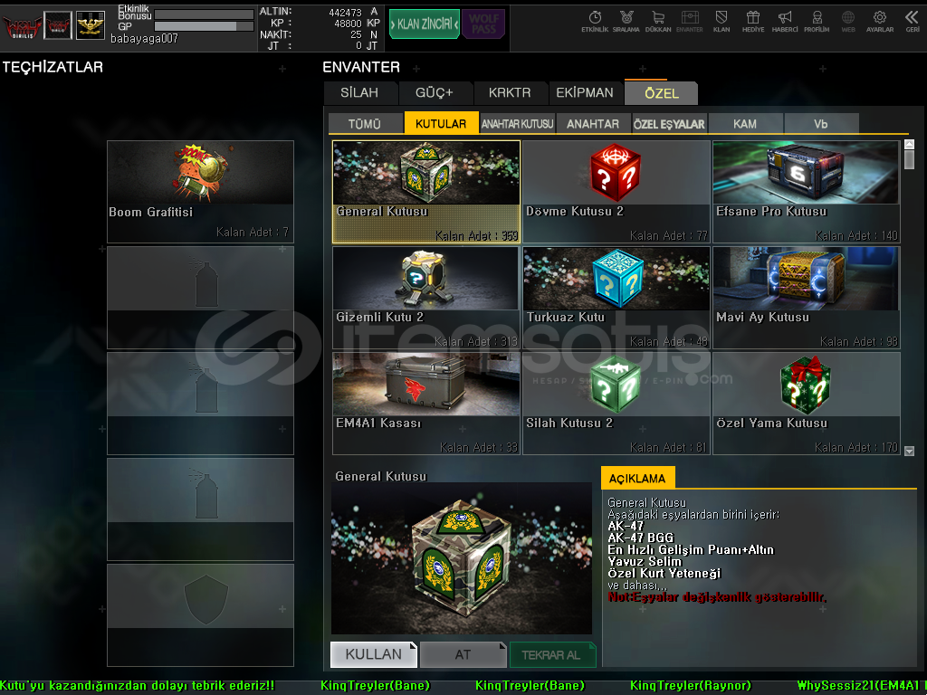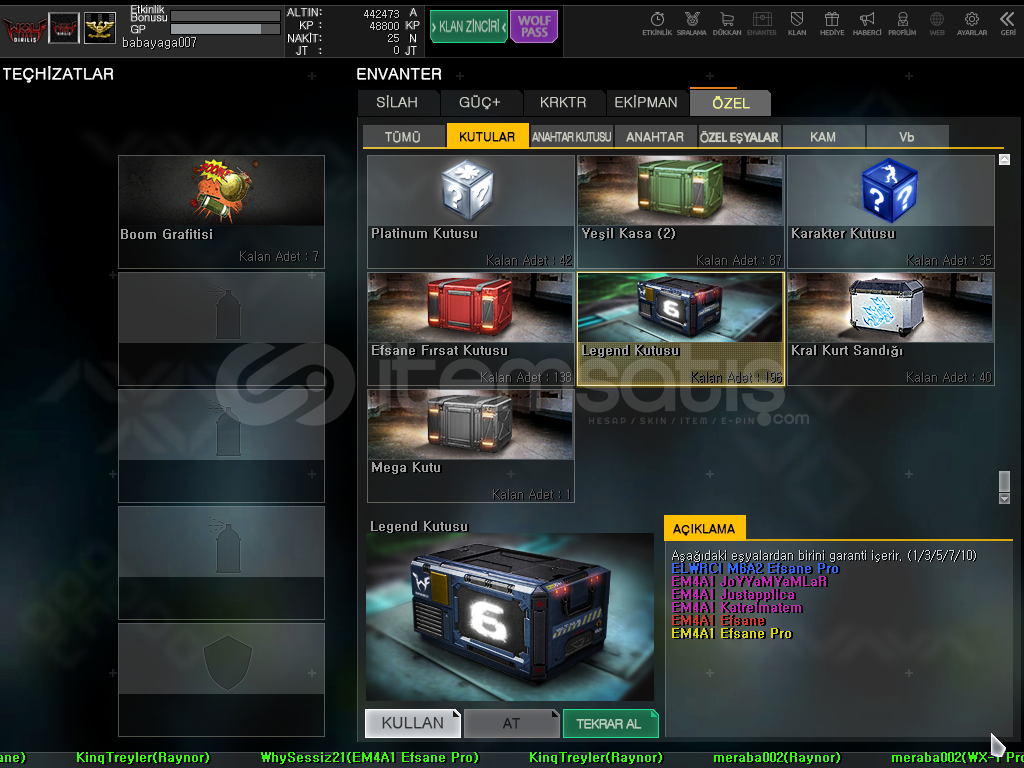 140 Efsane Pro kutusu ve 196 Legend Kutusu ile hiçbirzaman legendsiz kalmicaksınız.3 güç slotu vardır.2 silah slotu vardır.General kutusundan özel kurt yeteneği çıkarabilirsiniz.Otomatik teslimattır. Mail yoktur.İlana koyma tarihi : 30.09.2025