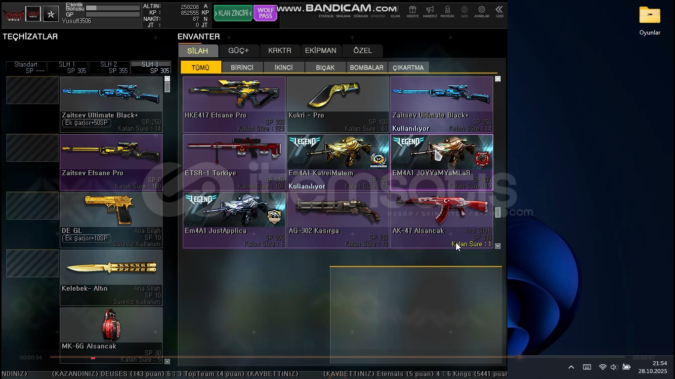 LEGEND SİLAHLARIN DA SÜRELERİ ÇOK FAZLADIR HEPSİ RESİMLERDE VARDIR.