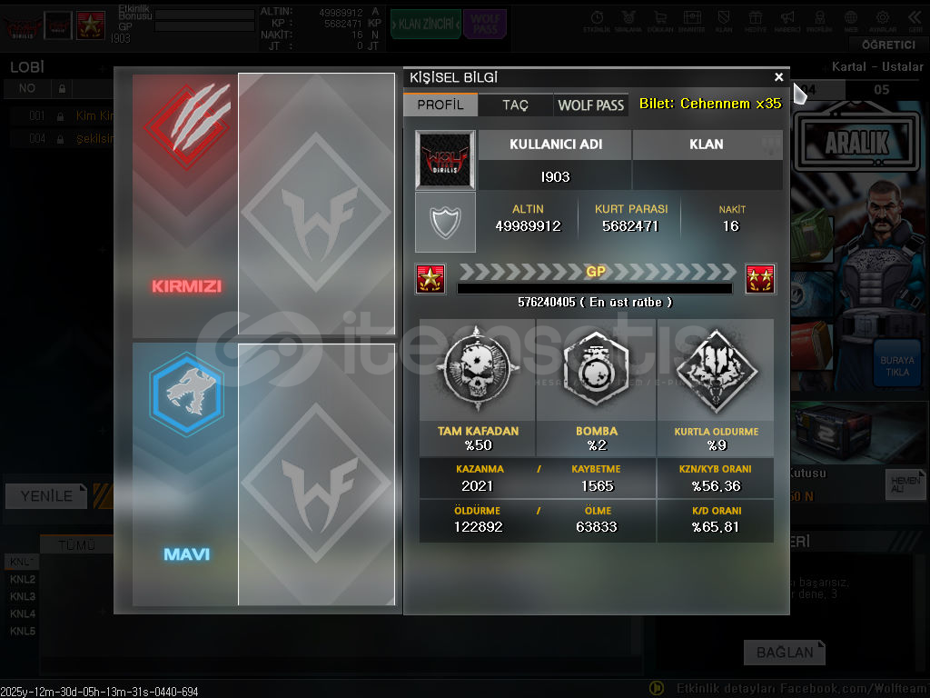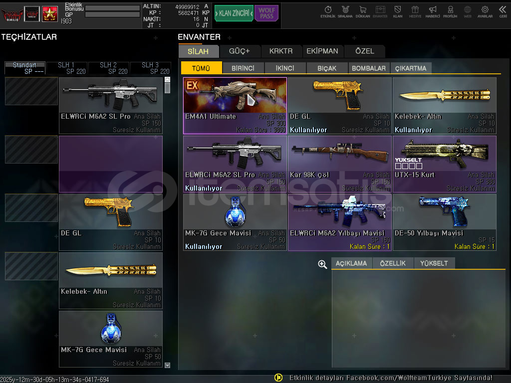 YUKSEK RUTBE SEVENLER İCİN!HESAP MAİLSİZDİR AYLARDIR AFK SORUNSUZ SEKİLDE!4 SİLAH SLOTU5 GUC SLOTUKART 4CITIR KUTULU+15HK