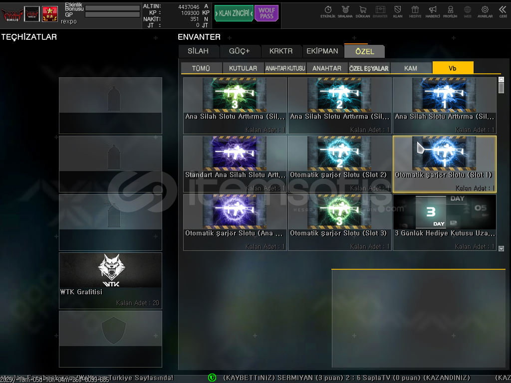 4 SARJOR SLOTLUFULL GUC SLOTLUKART SEVİYESİ 4KUTULU Son Giriş= 30.5.2024 16:29:19Rütbe= Kahraman